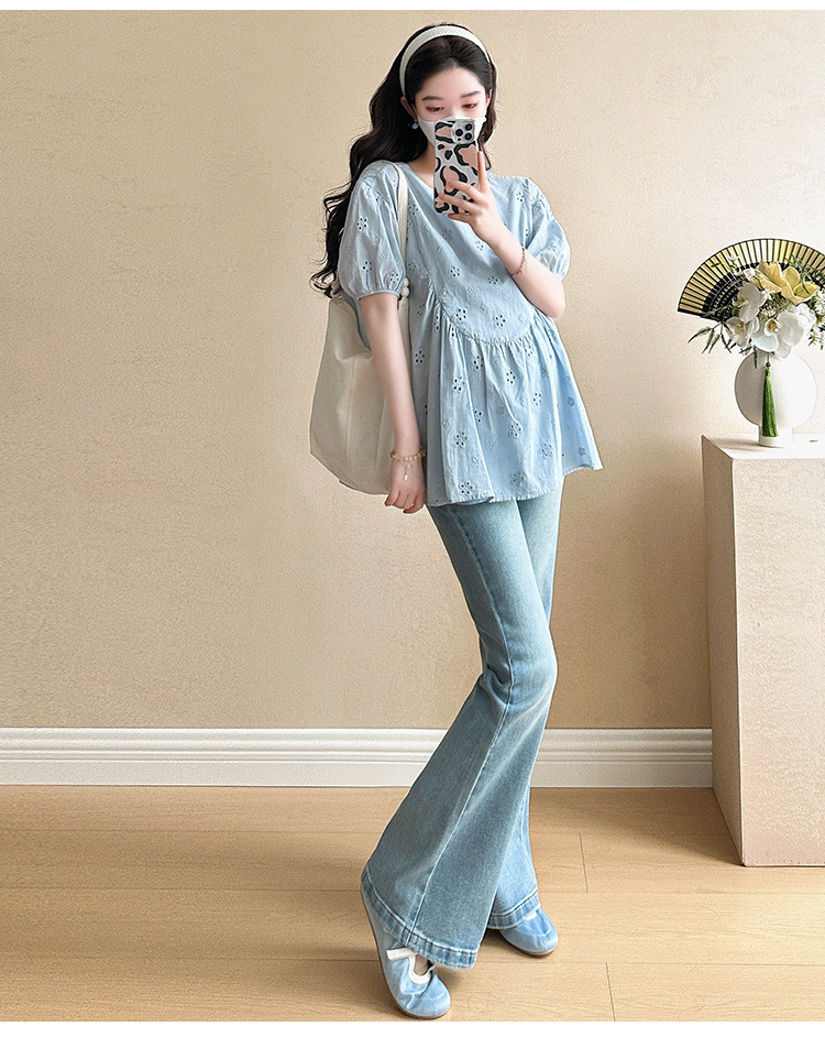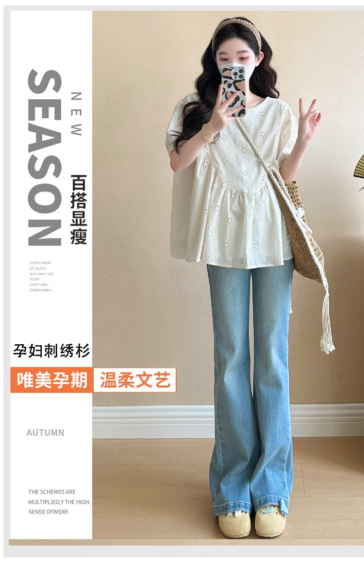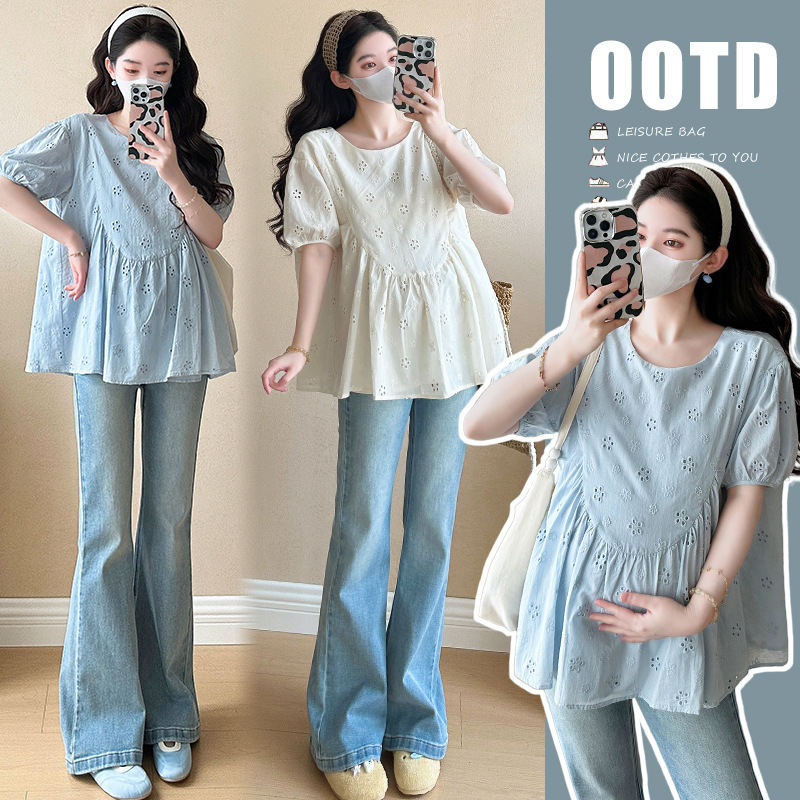 2025 летние новые свободные рубашки по беременности и родам рубашки с вышивкой по беременности и родам вершины