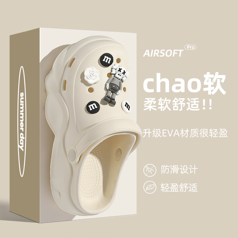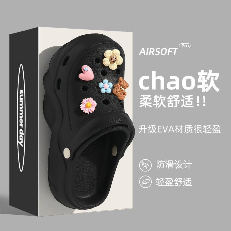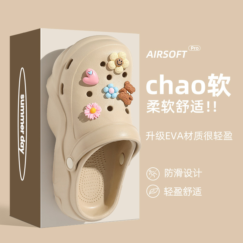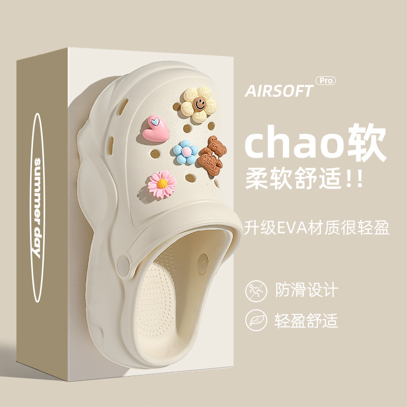 Обувь с толстой подошвной пещерной женской новой повышенной нескользящей модной сети инфракрасный носить летом ins пляжные холодные тапочки оптом
