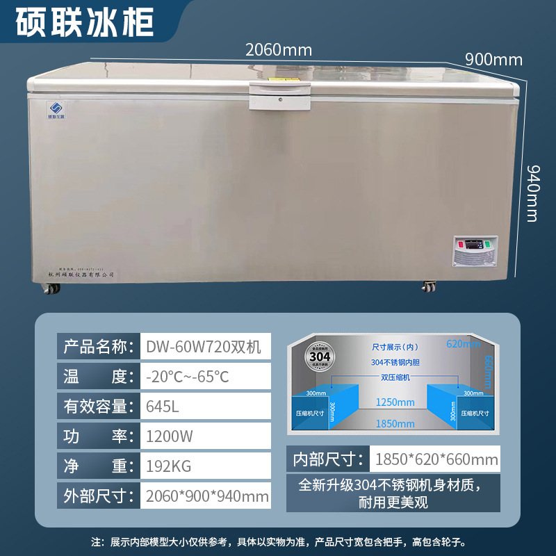 Шуолиан ультра-низкотемпературный морозильник минус 50-60-86 градусов от тунца морепродуктов Коммерческий морозильник из нержавеющей стали замороженный холодильник