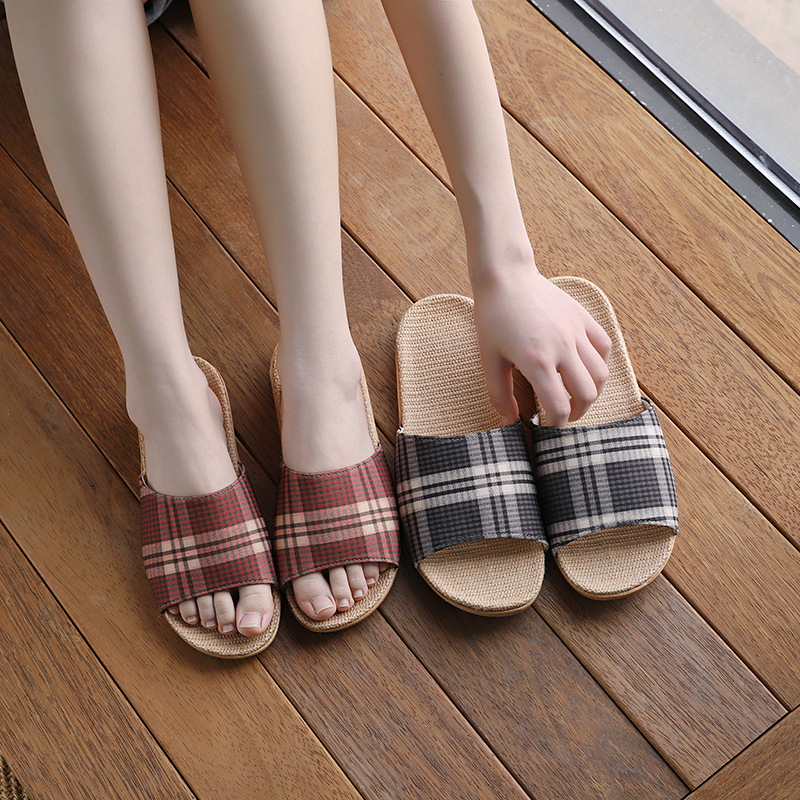 26 видов трансграничных льняных тапочек для весны и лета, подходящих для женщин, для использования в помещении и на улице, мягкие тканевые сандалии на толстой подошве для пар.