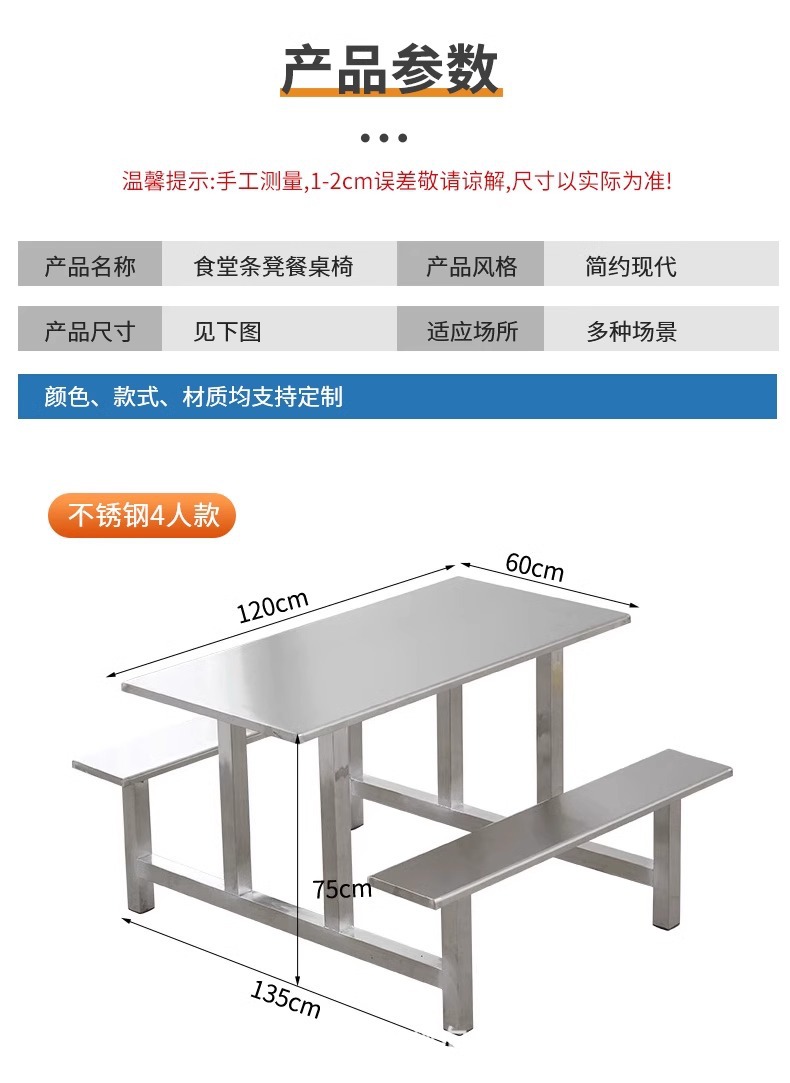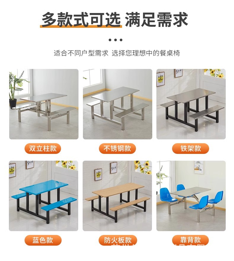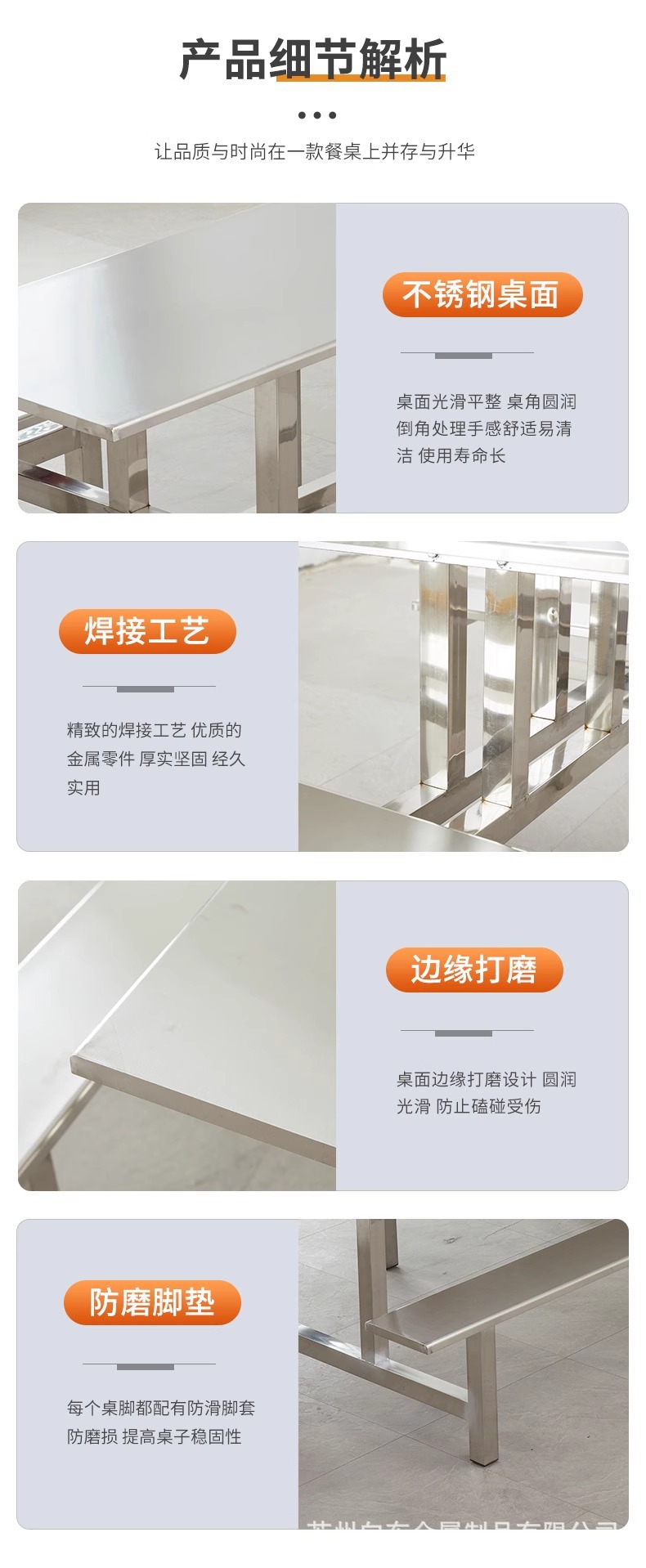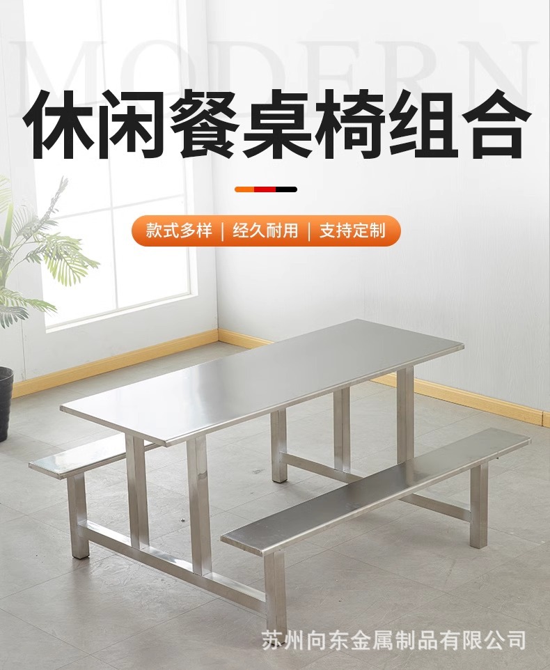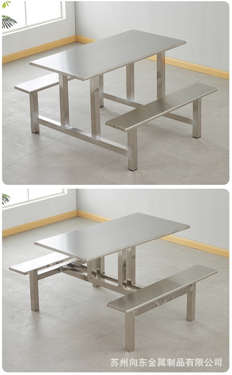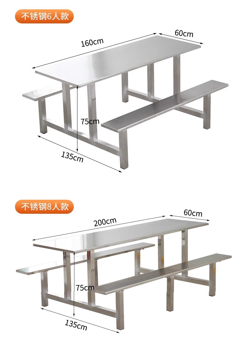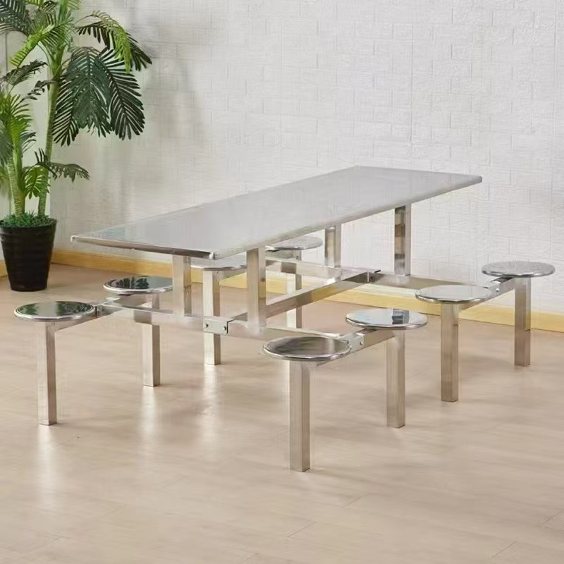 Стол и стулья из нержавеющей стали для школьной столовой, ресторана, утолщенный, для персонала, на 4-6 человек, соединяемый стол для обеденного зала