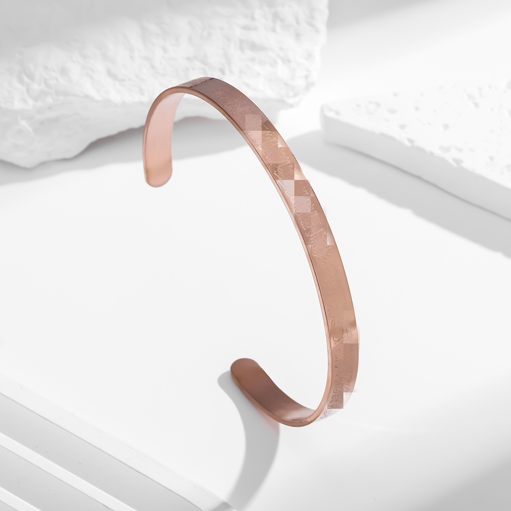 Браслет-кольцо из нержавеющей стали с арабской руной Аят аль-Курси, вакуумное золотое покрытие, C-образный, открытый, для мужчин и женщин
