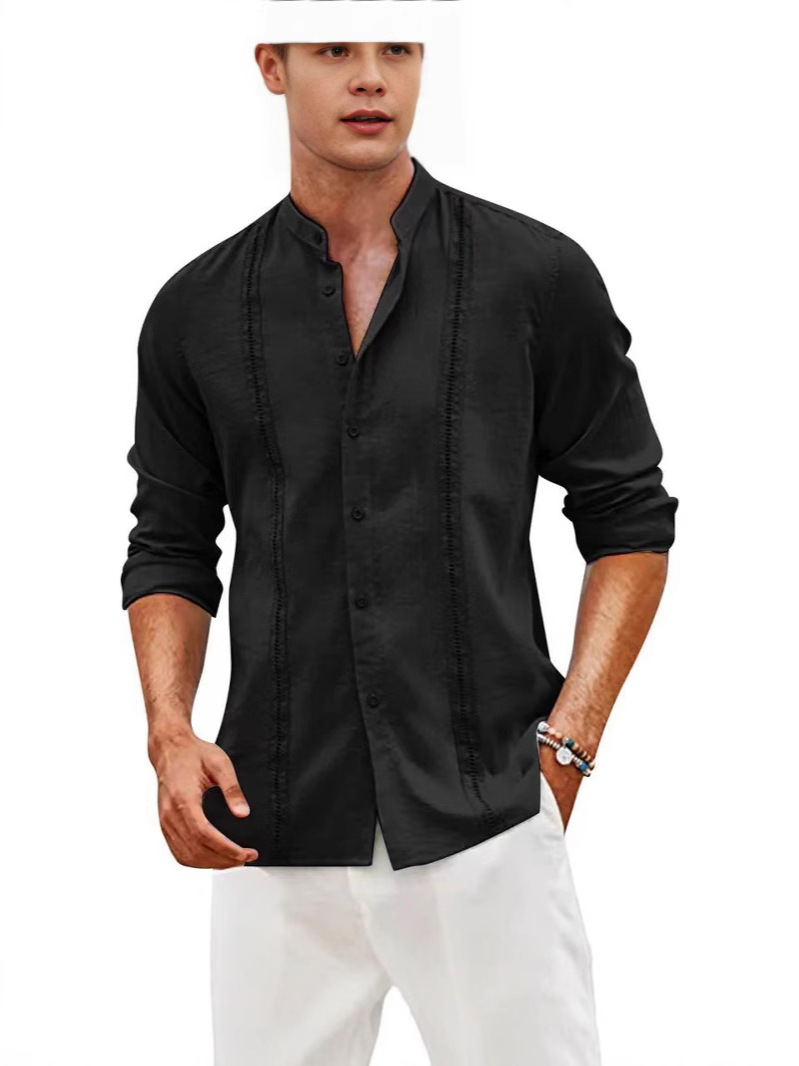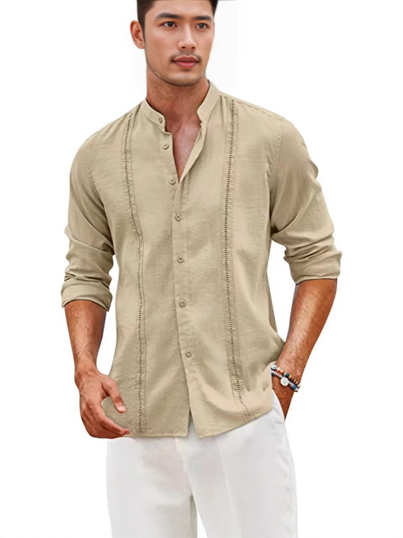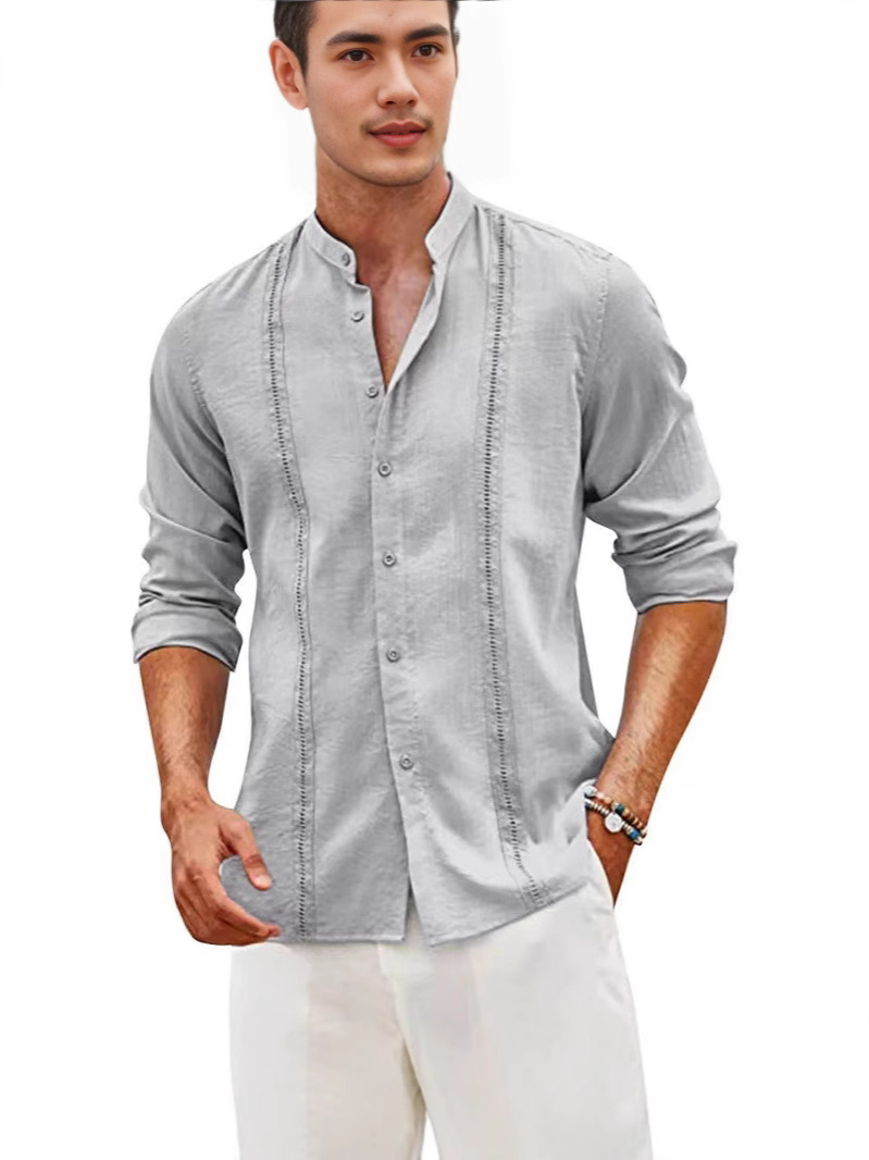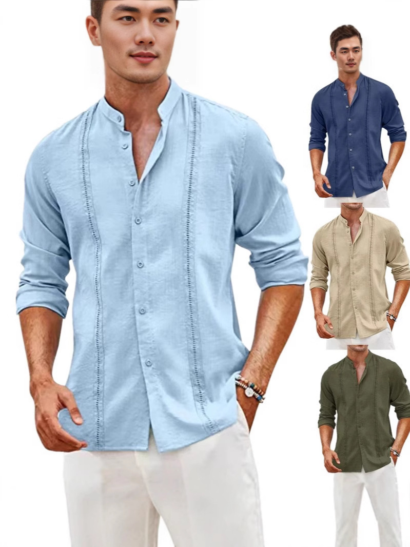 2024 AliExpress трансграничный новый мужской молодежный кардиган с пуговицами сплошной цвет повседневный воротник с длинными рукавами рубашка