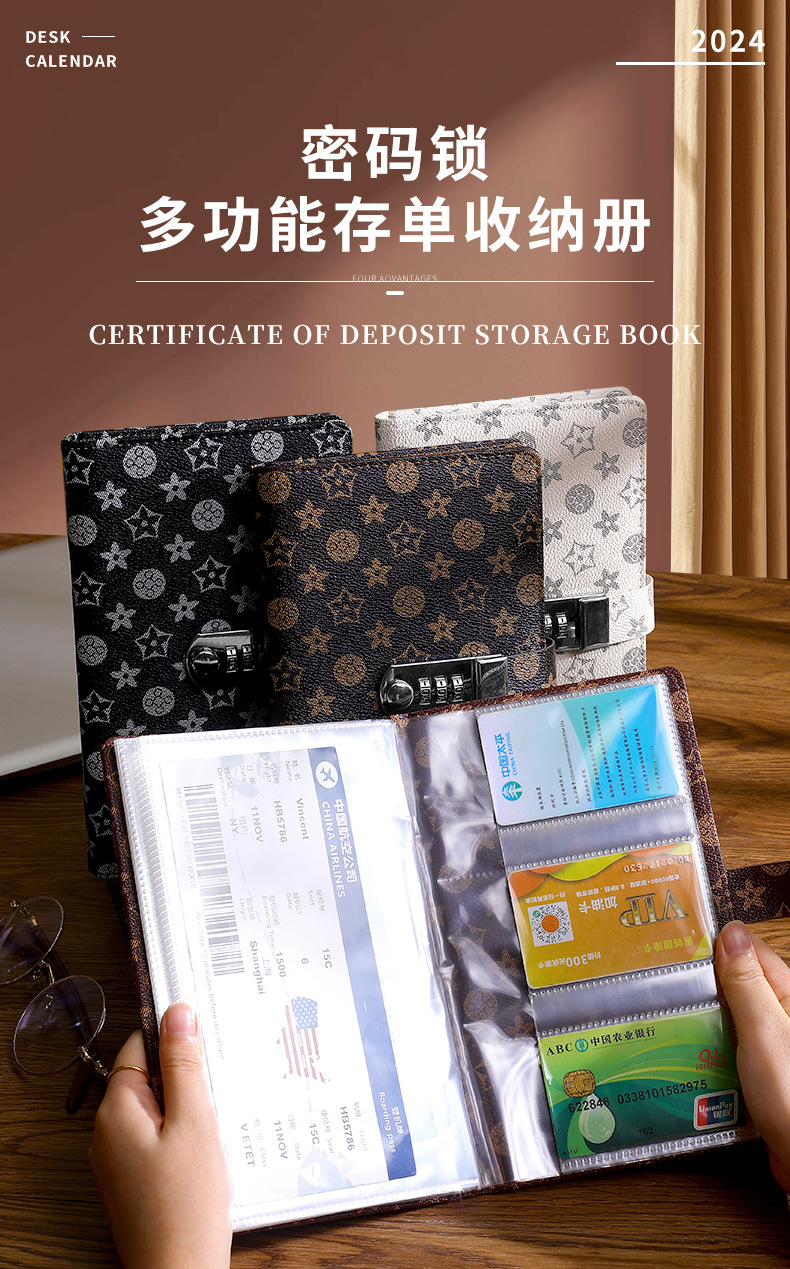 Держатель депозитного сертификата Codebook — классический черный [48 депозитных сертификатов + 24 слота для карт]; Держатель депозитного сертификата Codebook — коричнево-красный [48 депозитных сертификатов + 24 слота для карт]; Держатель депозитного сертификата Codebook — кремовый [48 депозитных сертификатов + 24 слота для карт]; Держатель депозитного сертификата Codebook — темно-коричневый [48 депозитных сертификатов + 24 слота для карт]
