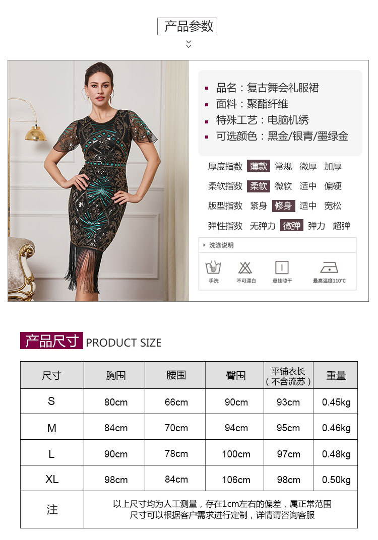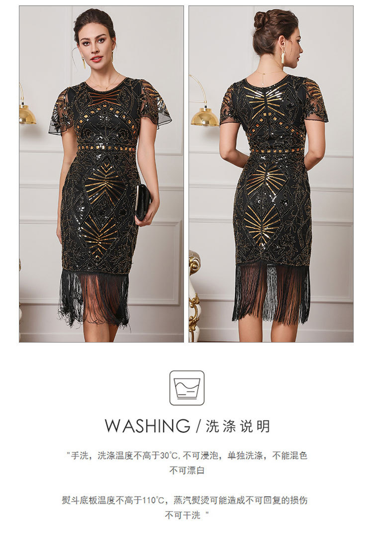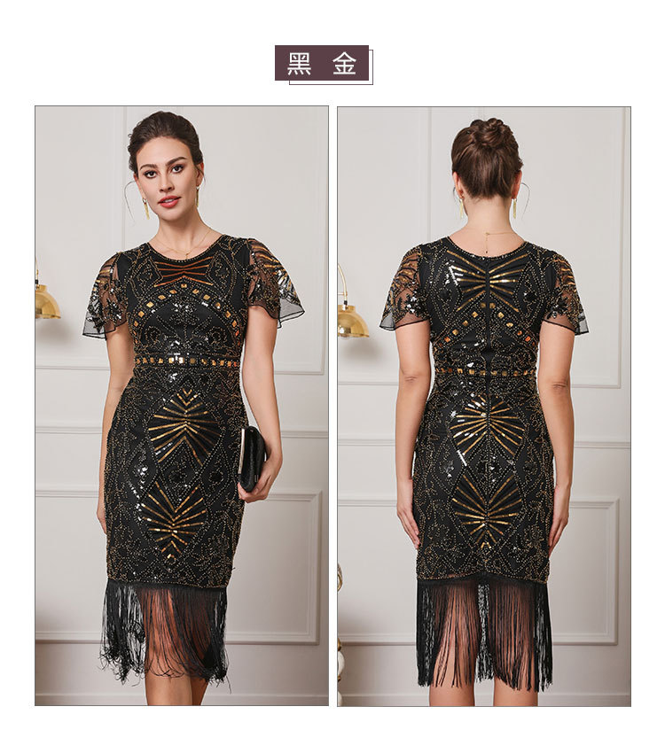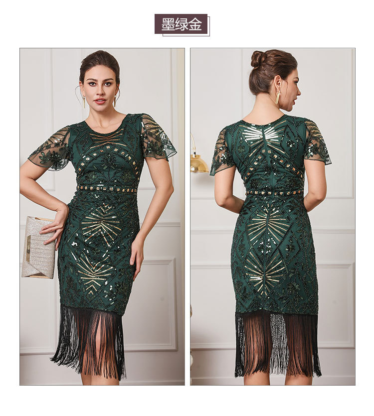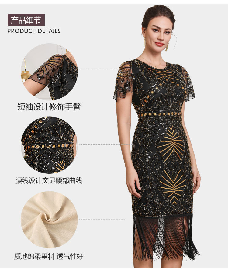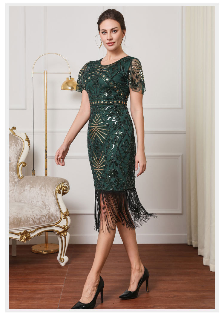 Гэтсби ретро-танец с короткими рукавами с бахроной юбкой Коктейльная вечеринка с вышивкой блестками