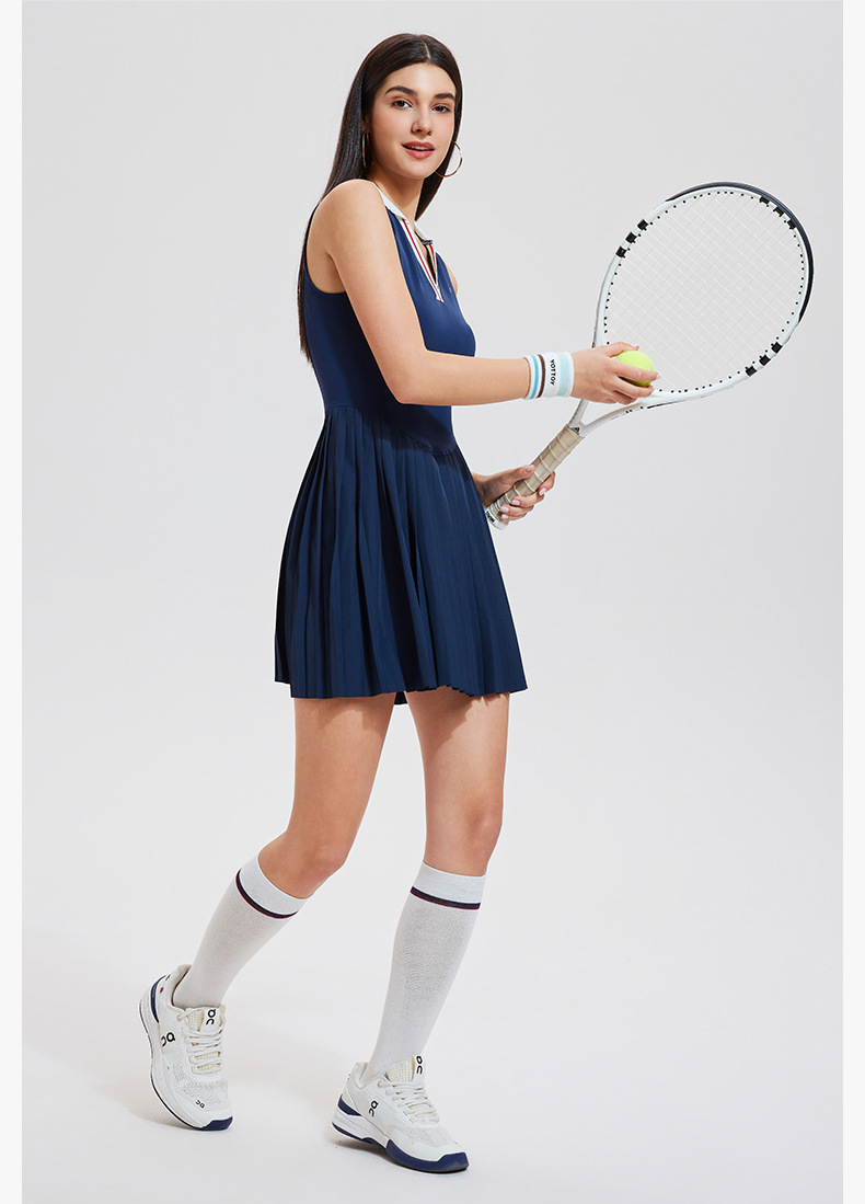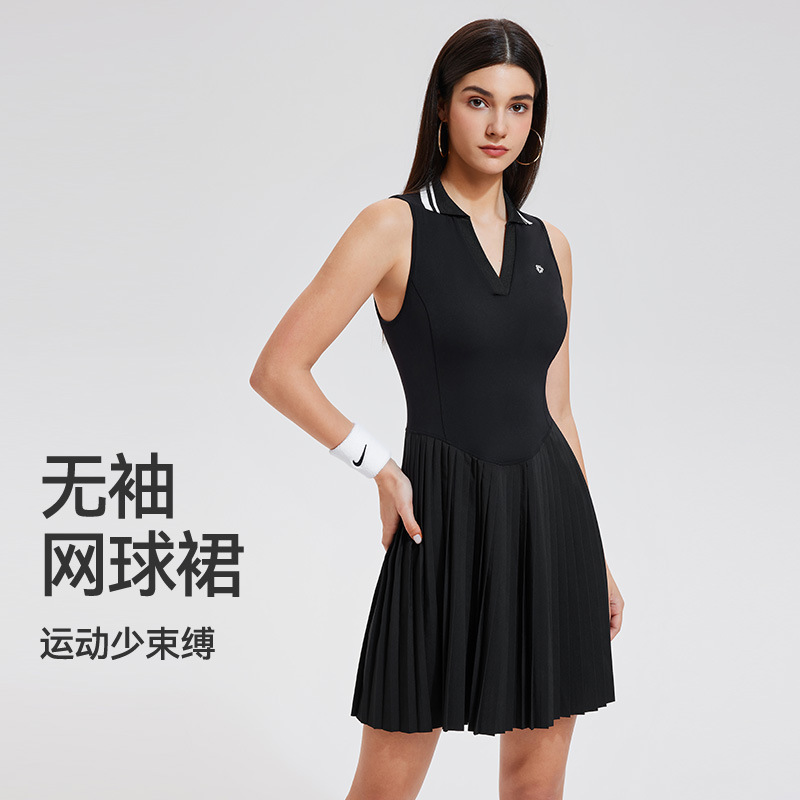 Теннисное платье для женщин, летнее, маленькое, с V-образным вырезом, утягивающее талию, плиссированное, для бадминтона, быстросохнущее спортивное платье