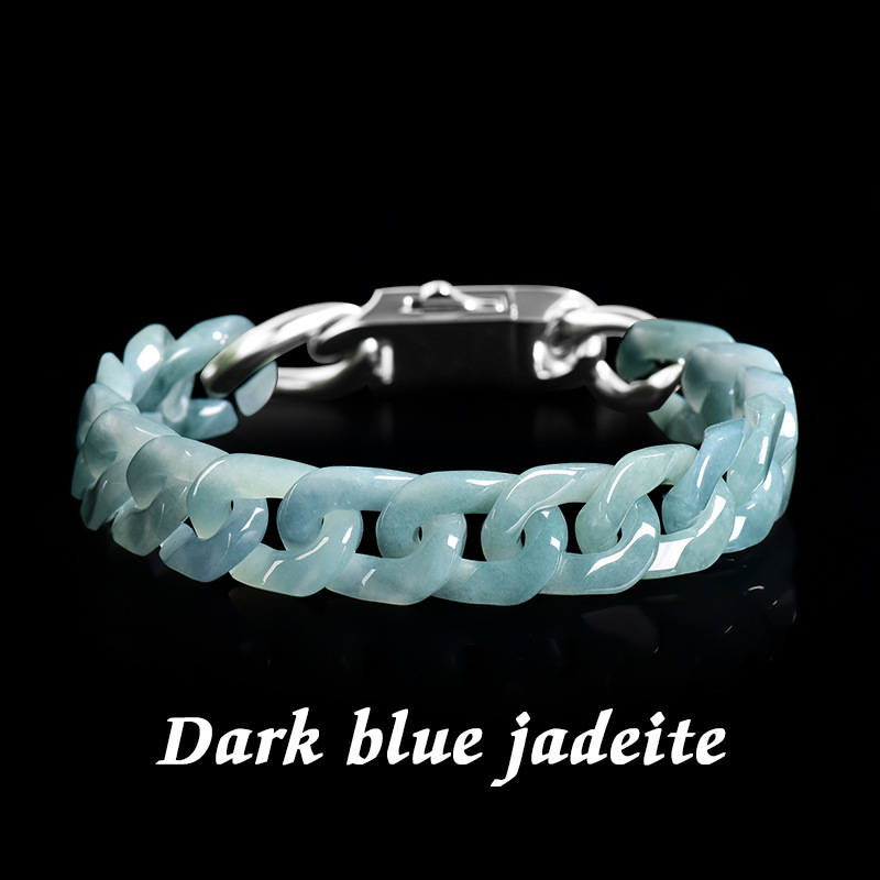 Натуральный продукт Изумрудная фасоль зеленый кубинский браслет нефритовый титановый стальной стиль хип-хопа личность мужчины и женщины трендовые украшения