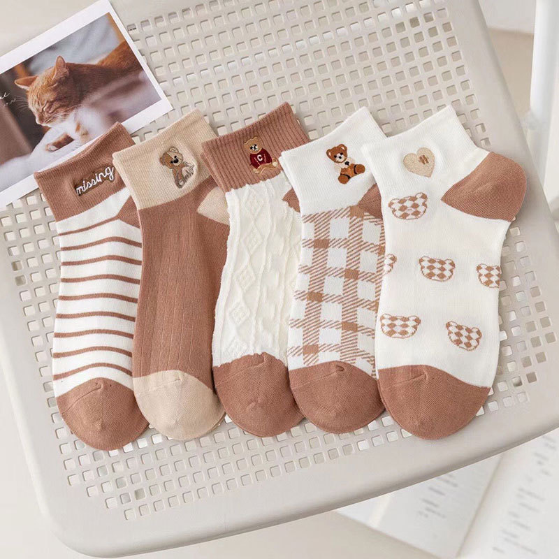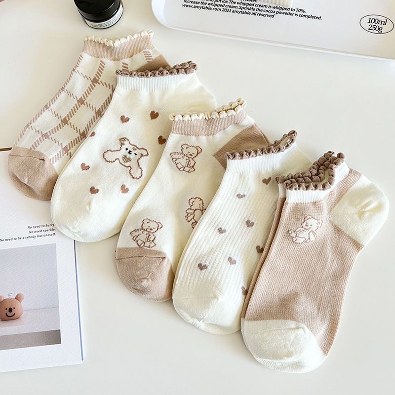 [Производитель оптовая торговля] Носки женские приливы короткие носки светлые медвежонок милые японские короткие трубочки тонкие дышащие носки