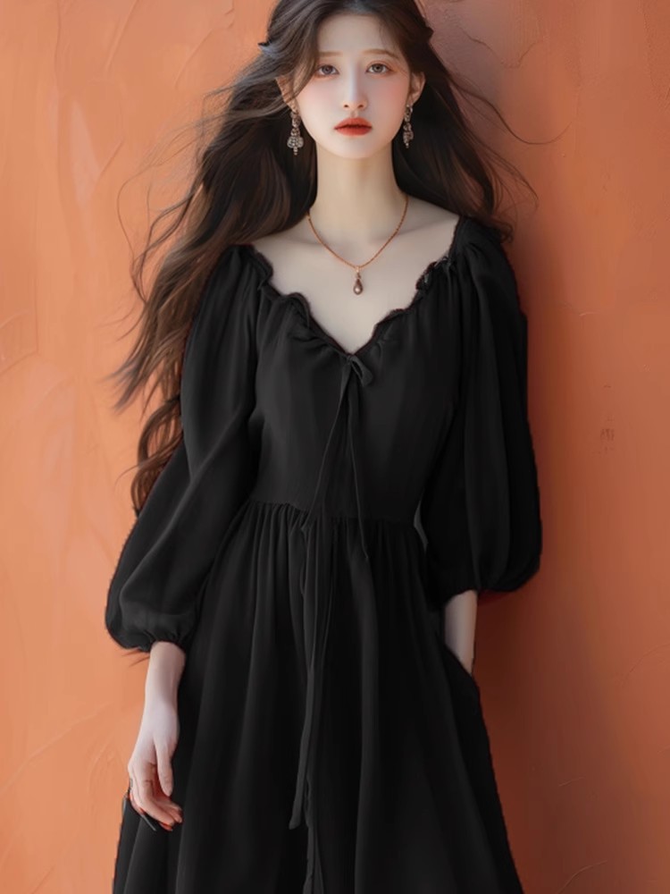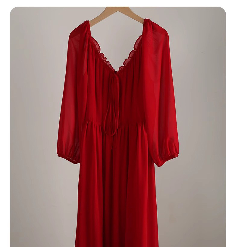 [Готовый запас] 2512, новый стиль, слегка толстые мм, большого размера, приморское французское красное платье с v-образным вырезом, женская юбка-трапеция