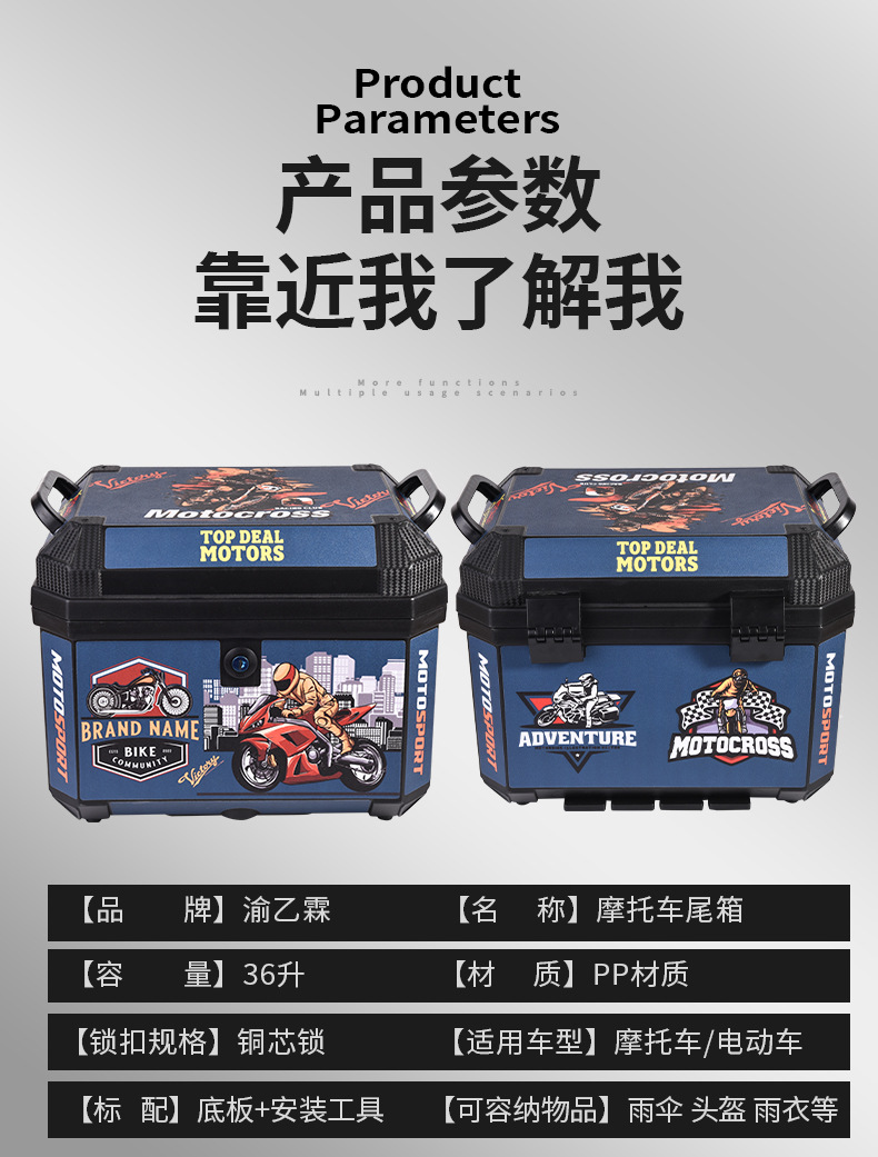 Толстая хвостовая коробка электромобиля Большая емкость, багажник электромобиля, съемная хвостовая коробка мотоцикла, универсальный аккумуляторный автомобиль