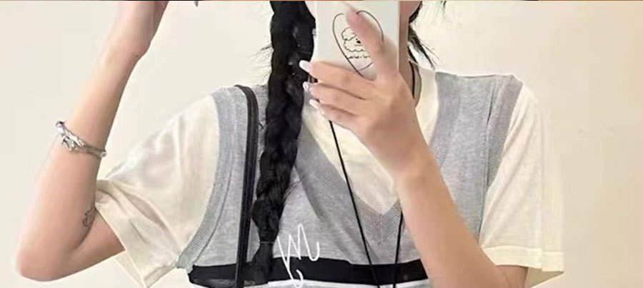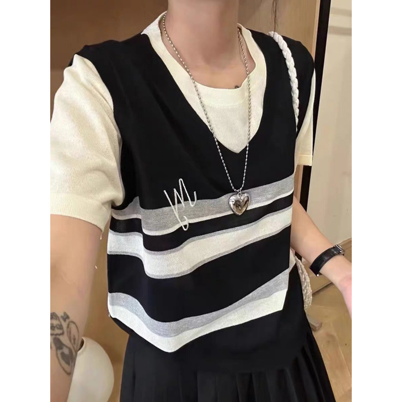 Кормящая одежда поддельные два свитера с короткими рукавами из ледяной шелк Лето 2025 новый уменьшенный возраст рыхлый кормушка