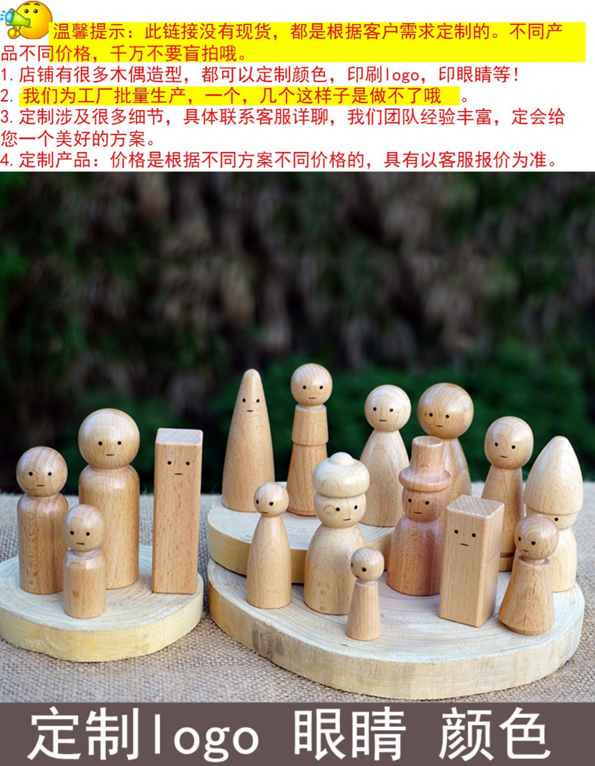 Пользовательский семейный орнамент кукольный психологический кукольный цвет из массива дерева печать логотипа цвет печати глаз