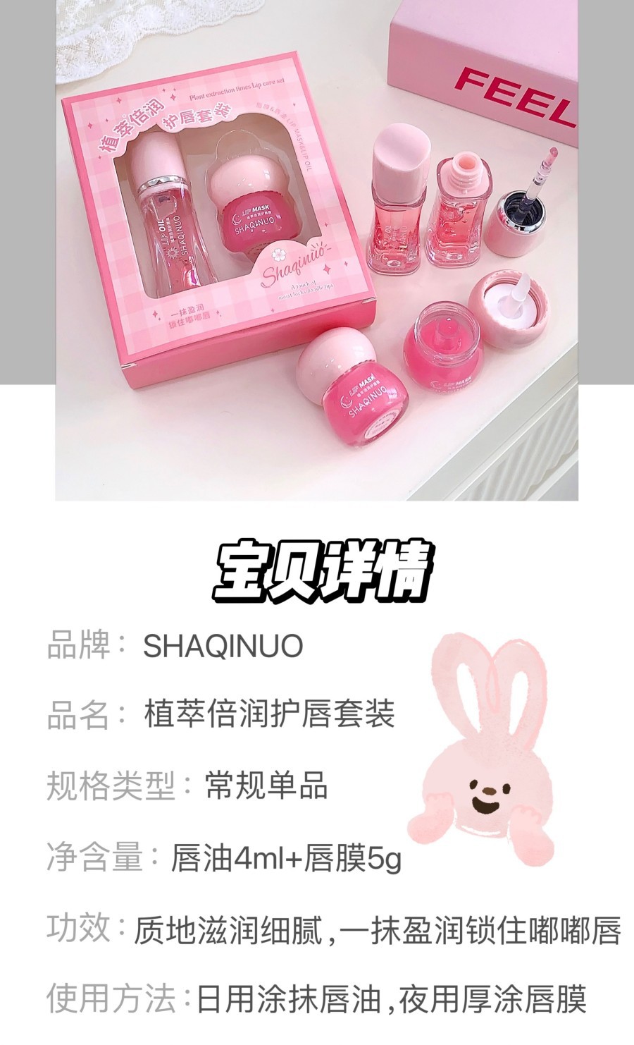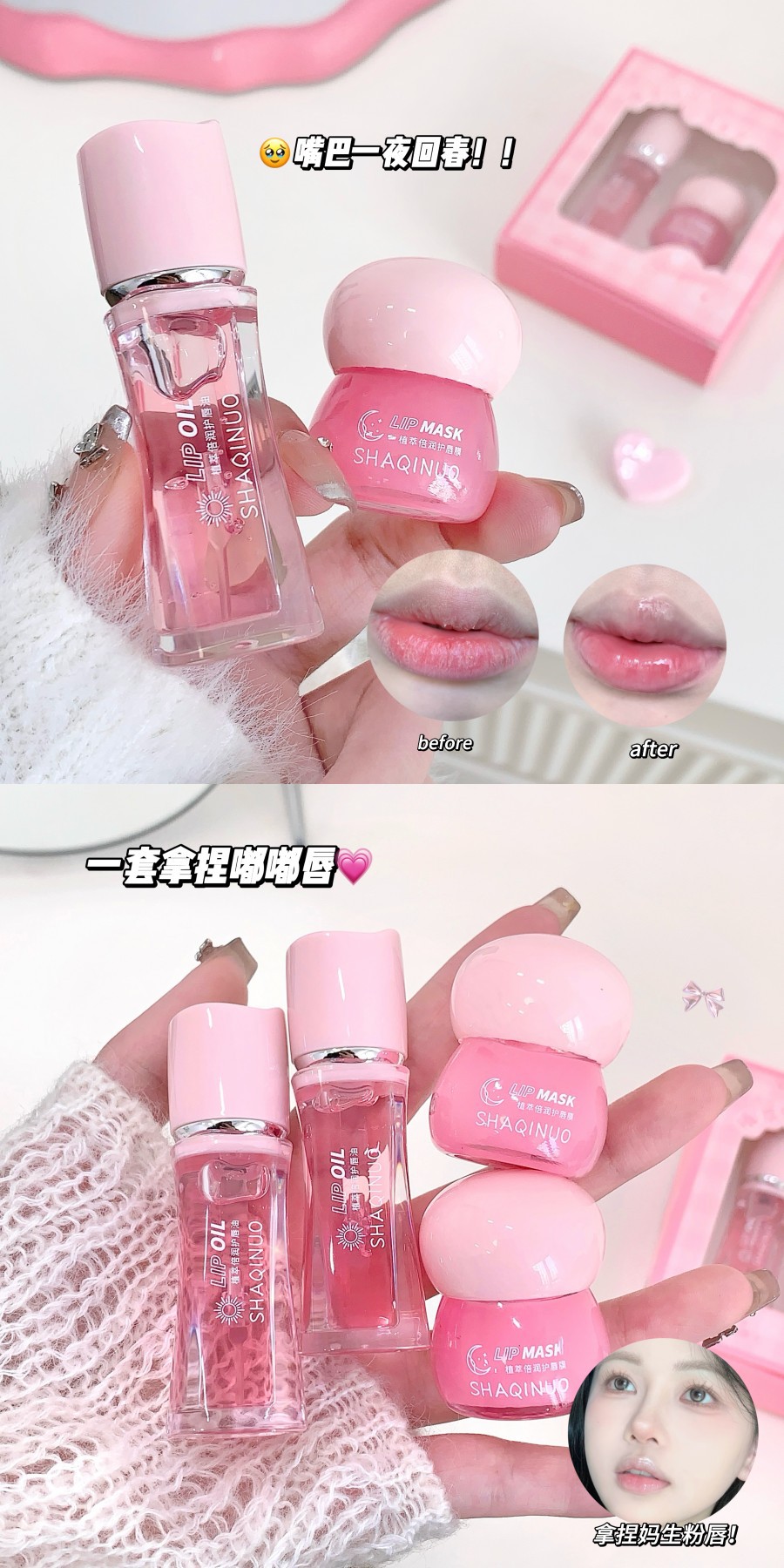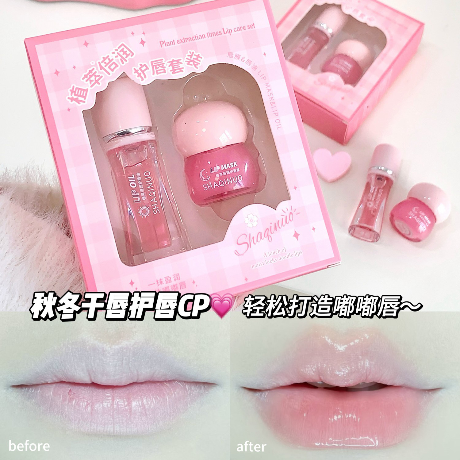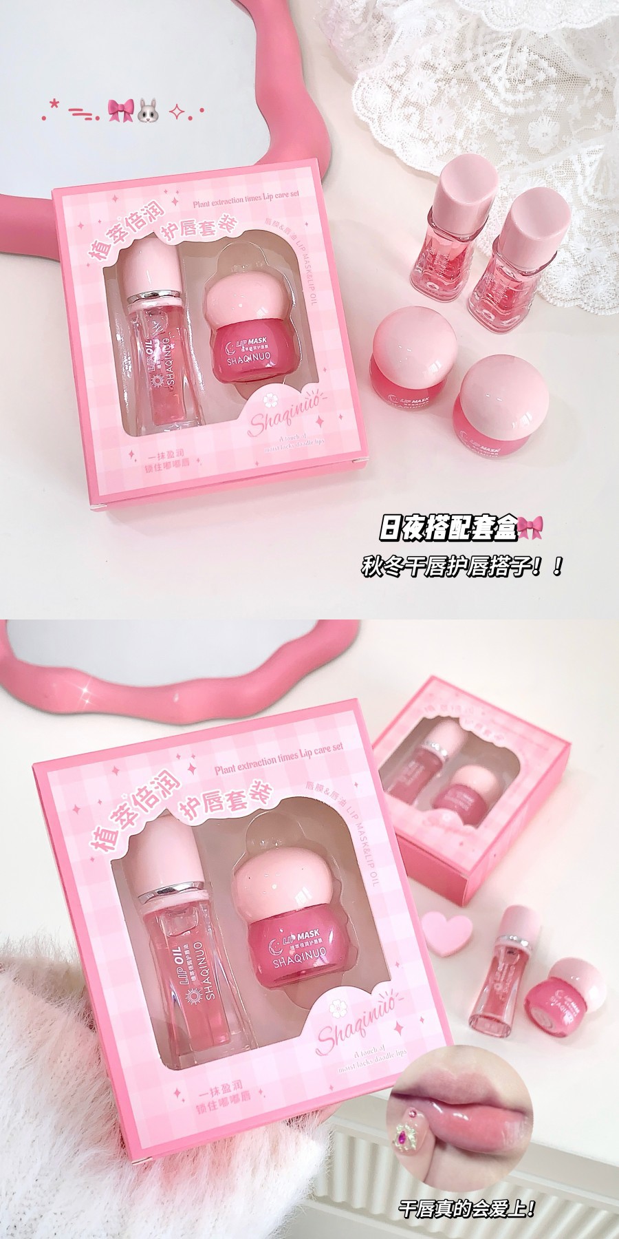 Трансграничный набор для ухода за губами SHAQINUO Увлажняющий увлажняющий увлажняющий и противопотрескающийся комбинированный бальзам для губ днем и ночью
