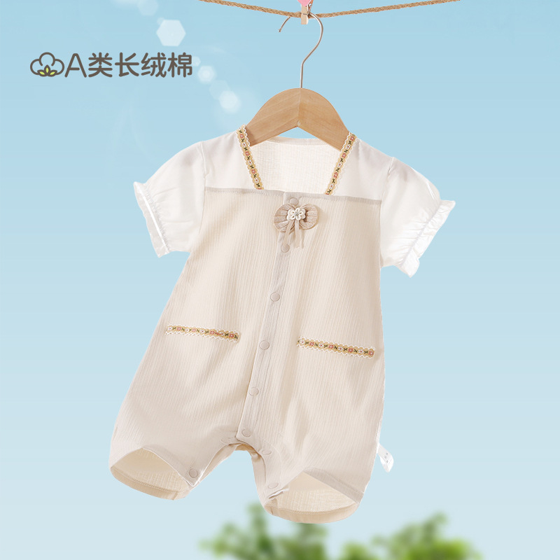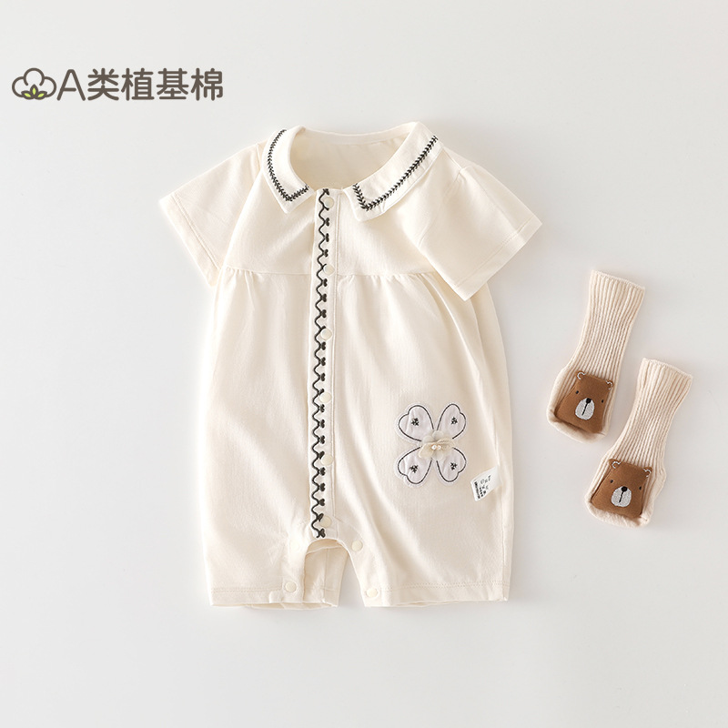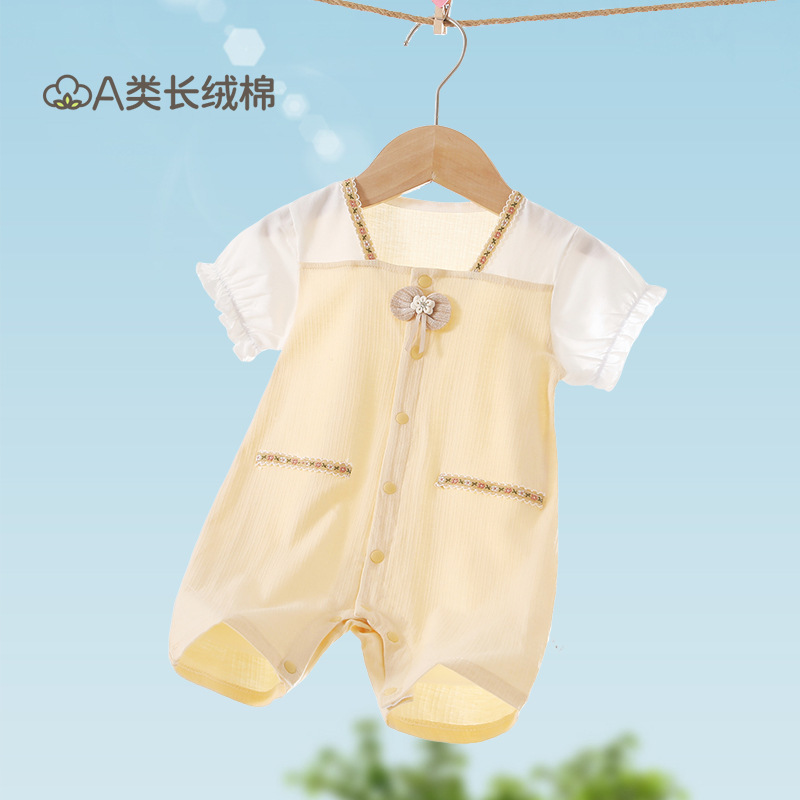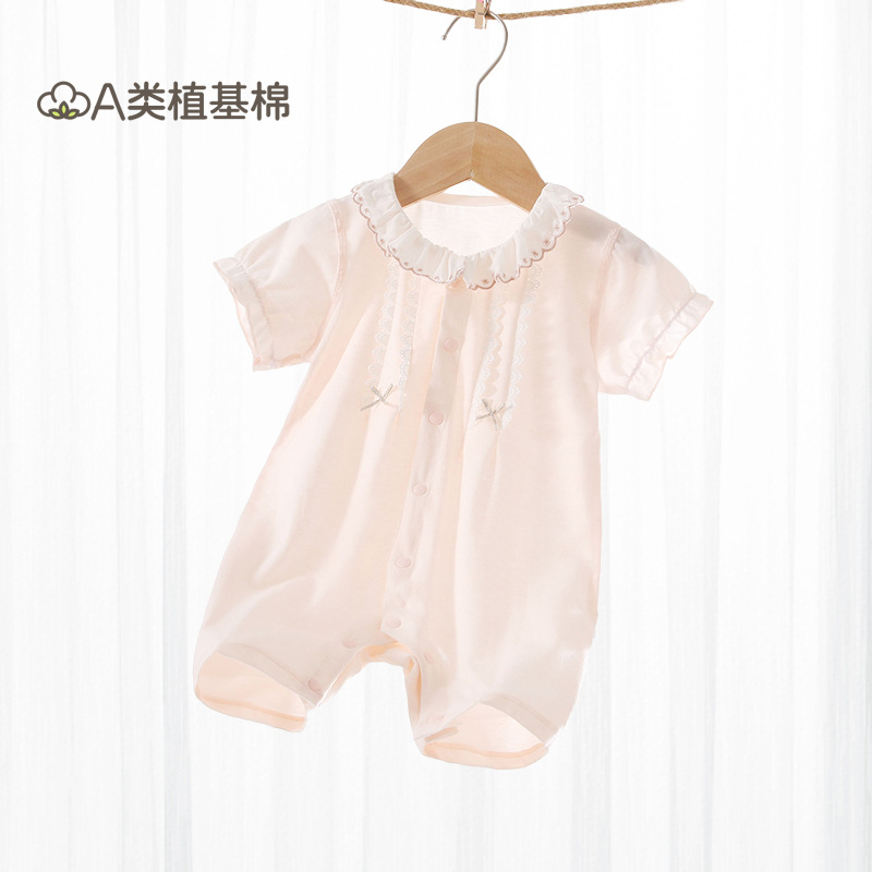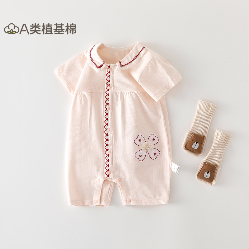 Новые летние новинки: детская одежда Youkesi, тонкий комбинезон с короткими рукавами для новорожденных, вышитый комбинезон с застежкой спереди.