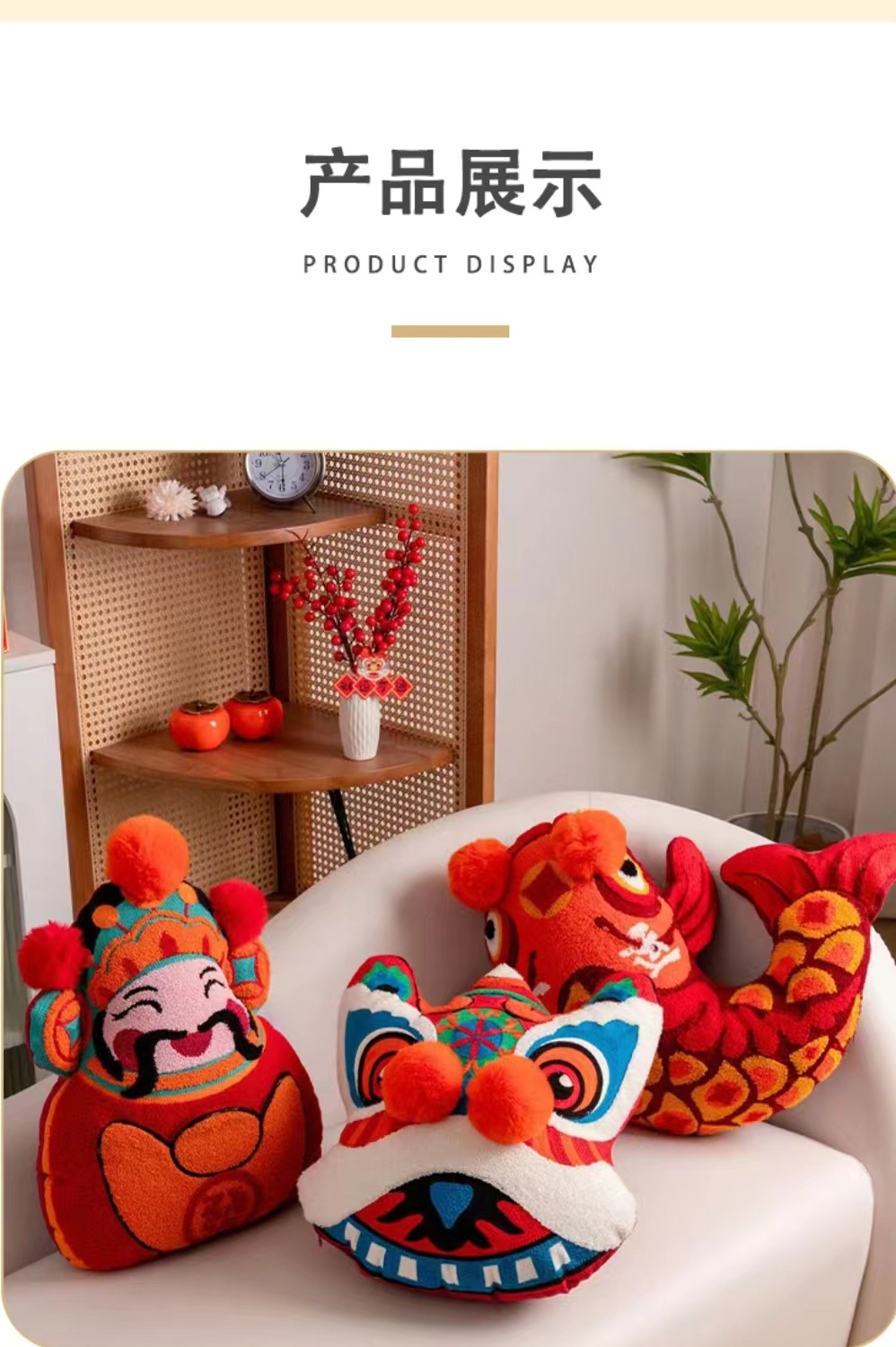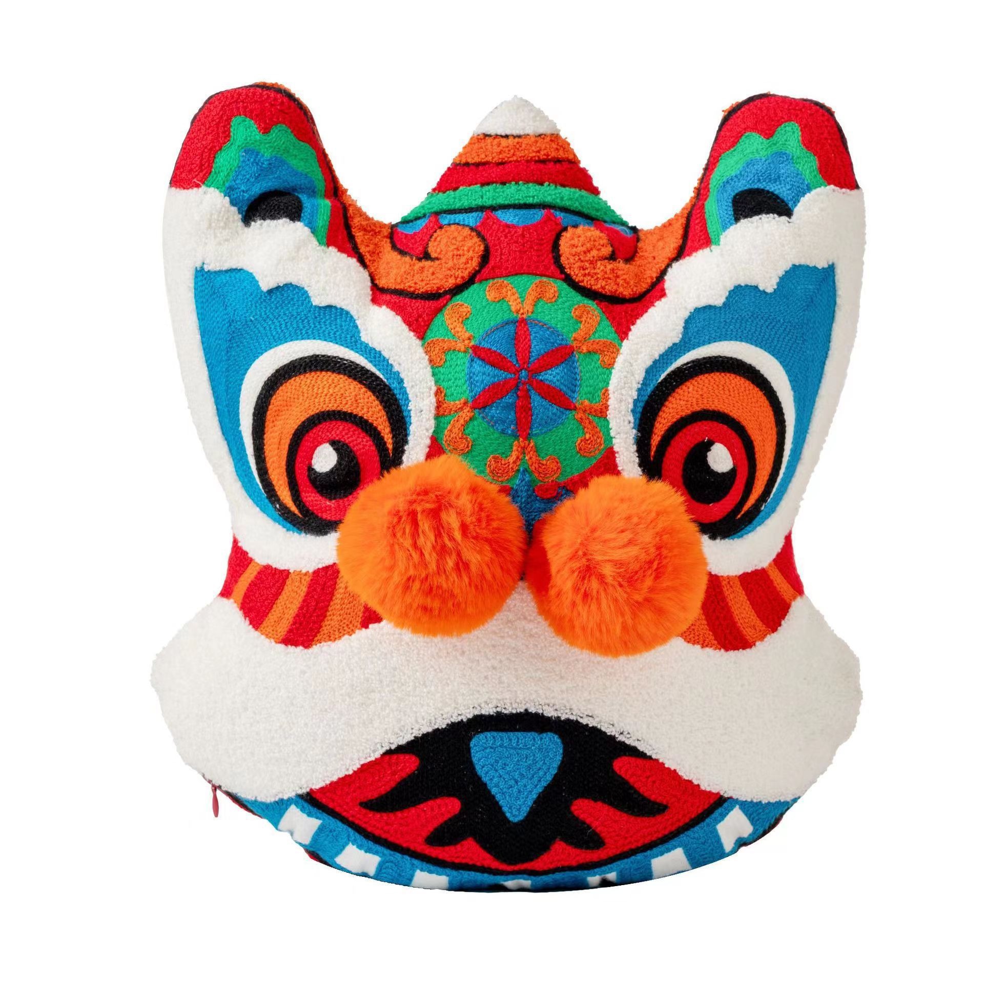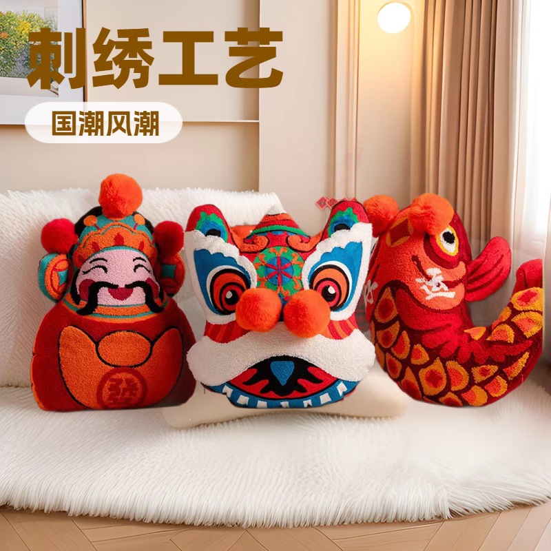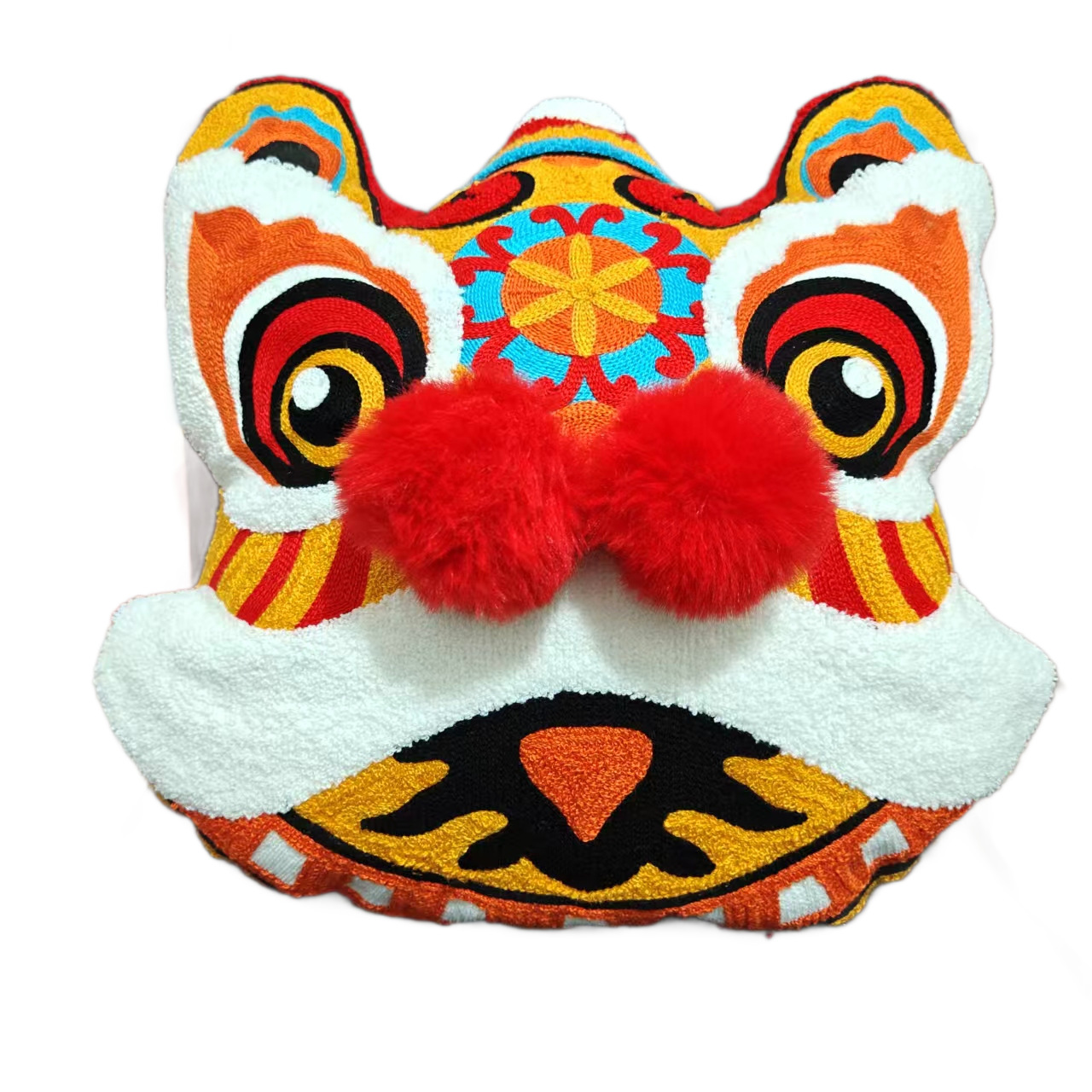 【Хорошие вещи приходят в дом】Подушка в китайском стиле с 3D-изображением танца льва, праздничная подушка необычной формы, креативная вышитая подушка для свадеб.