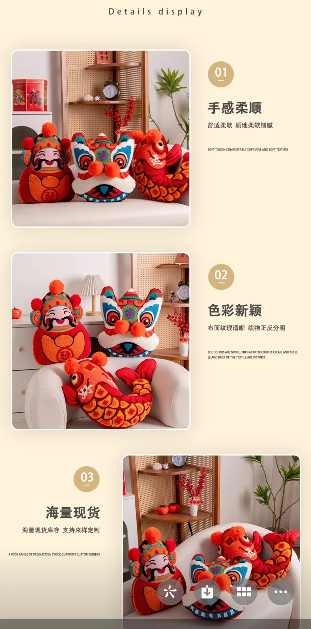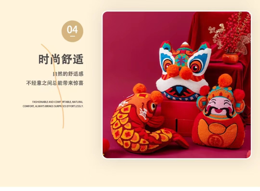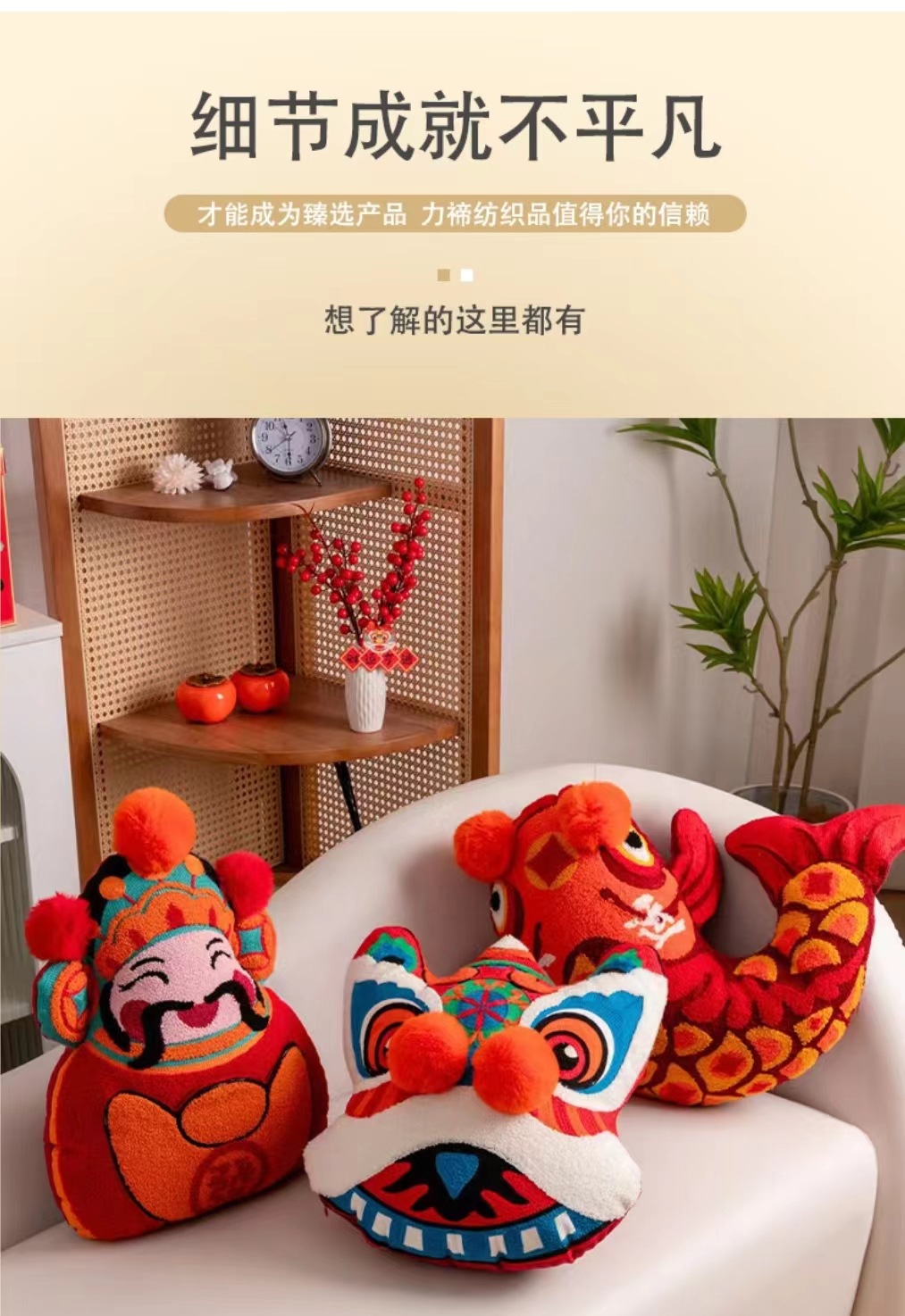 【Хорошие вещи приходят в дом】Подушка в китайском стиле с 3D-изображением танца льва, праздничная подушка необычной формы, креативная вышитая подушка для свадеб.