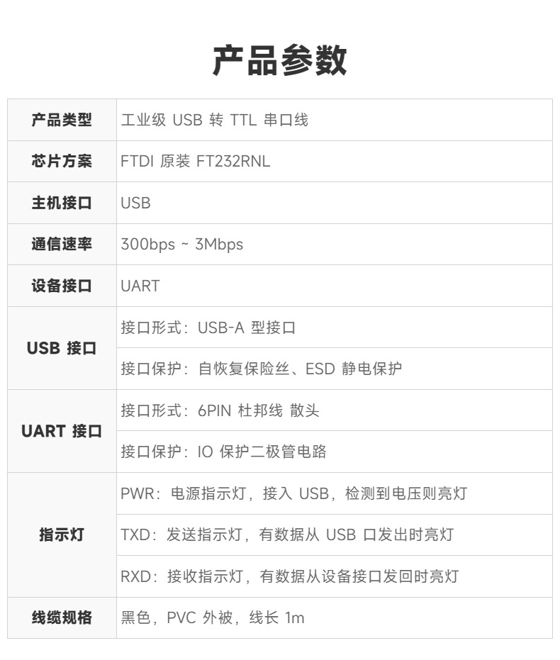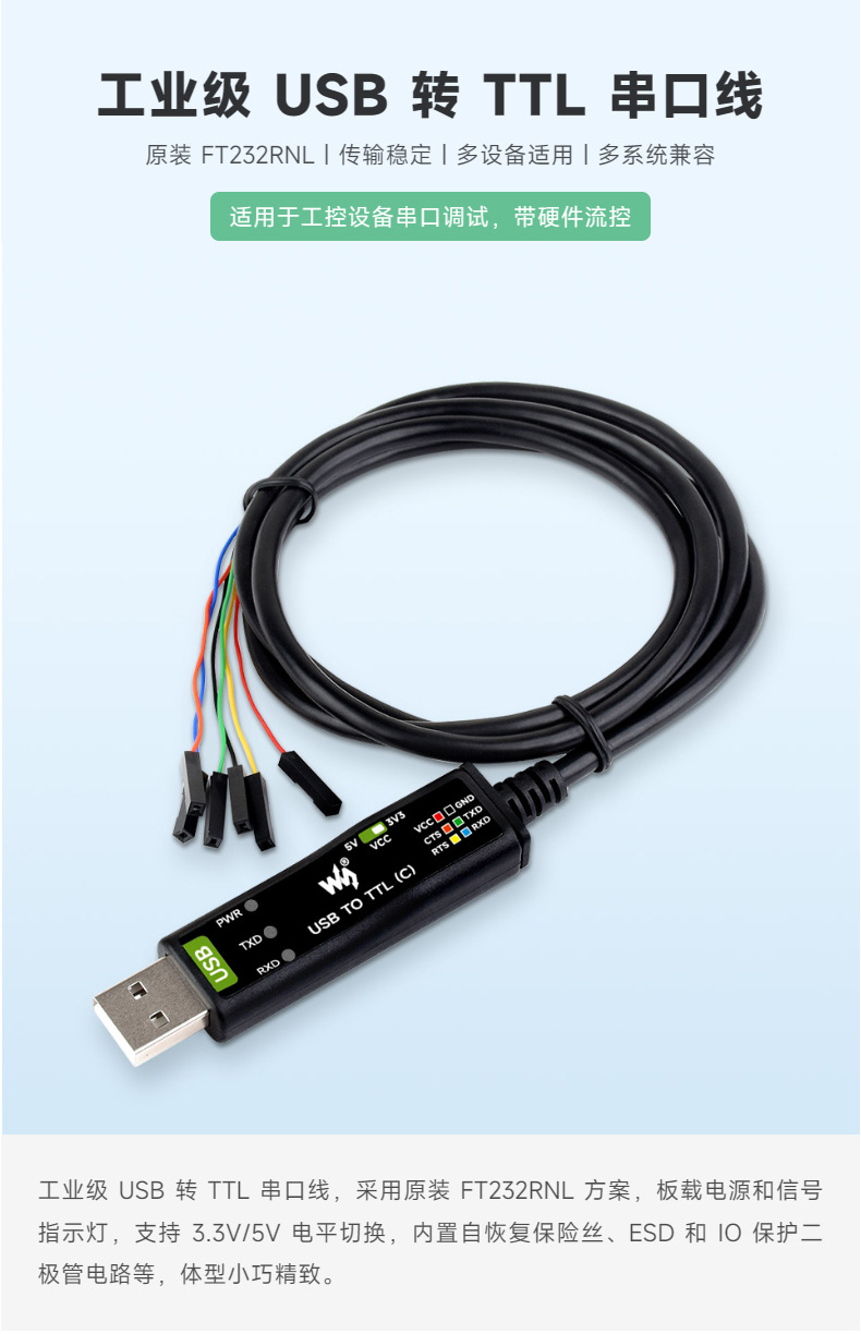 Промышленный класс USB-TTL последовательный кабель FT232RNL Аппаратное потоковое управление последовательным переходом UART