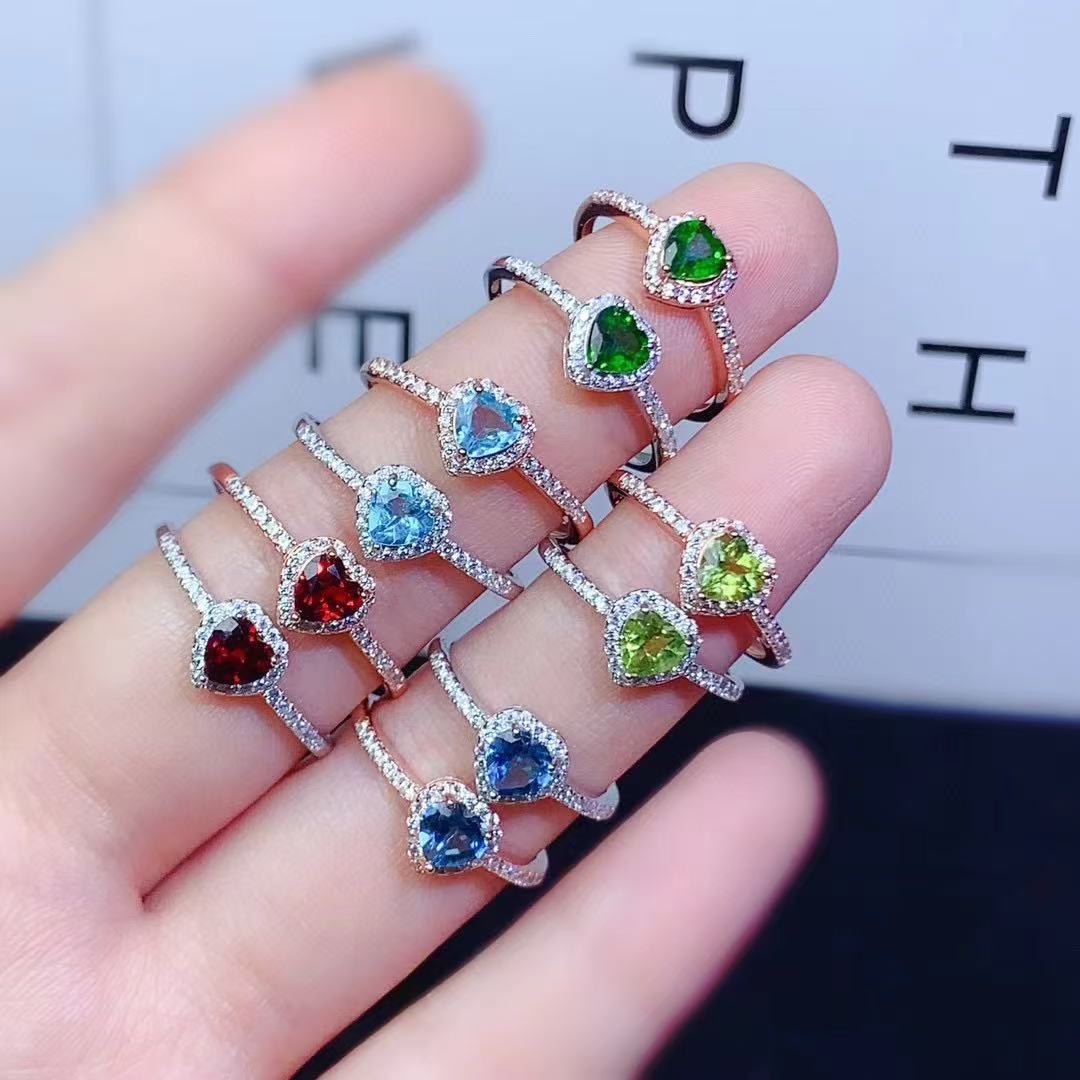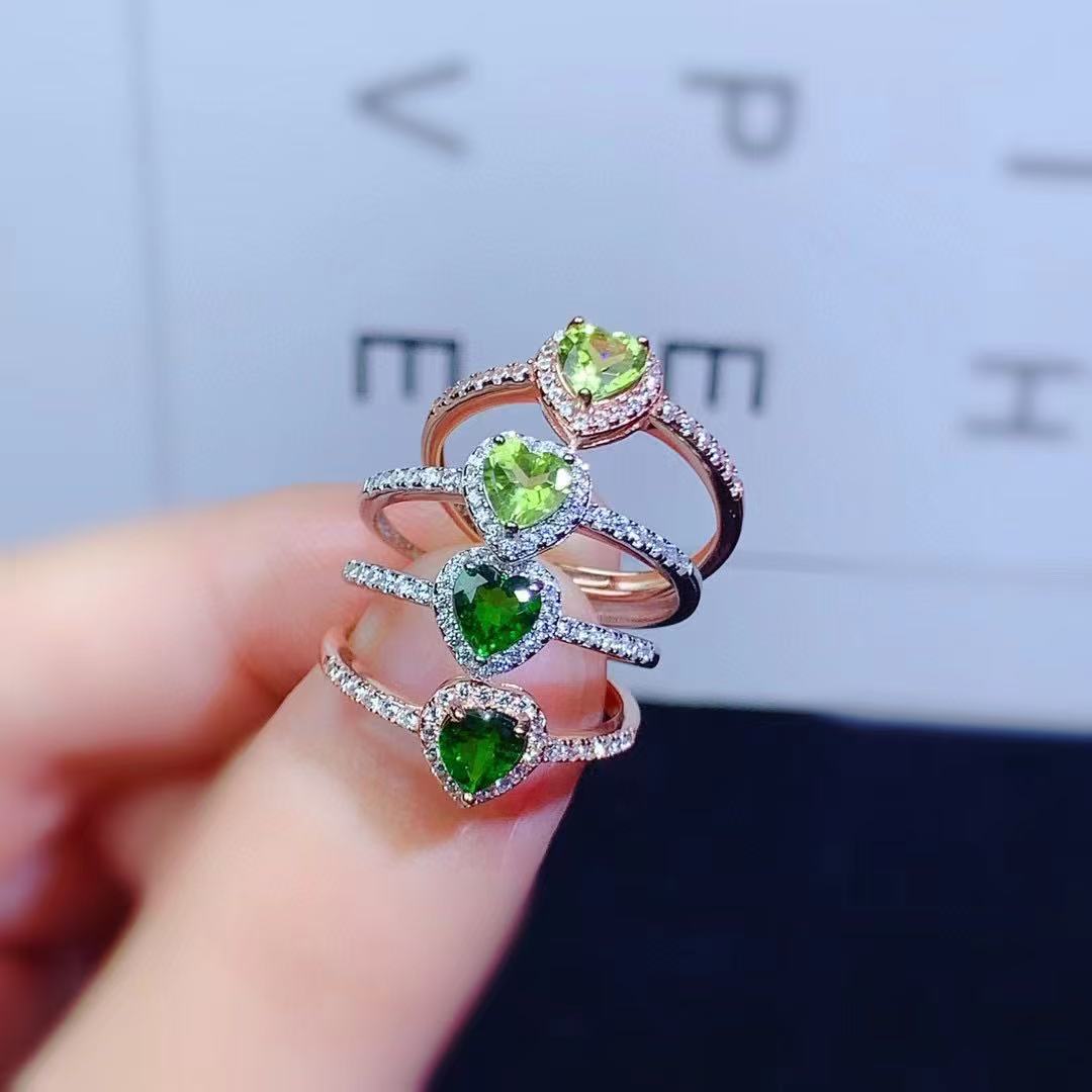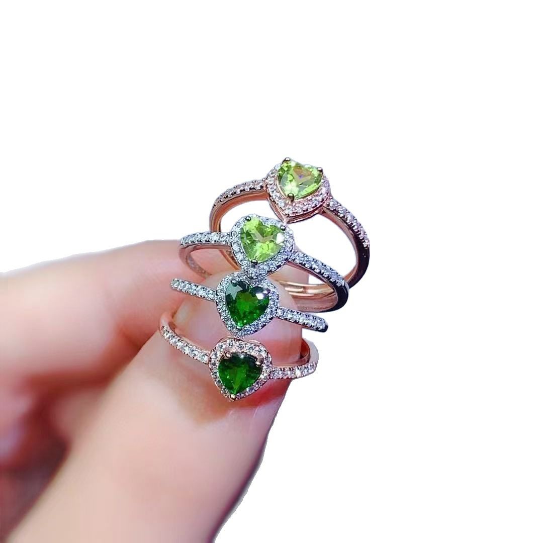 925 серебряный инкрустированный апатит транспироксен лондонский оливин гранат кольцо пригородной дикой простой моды сердце