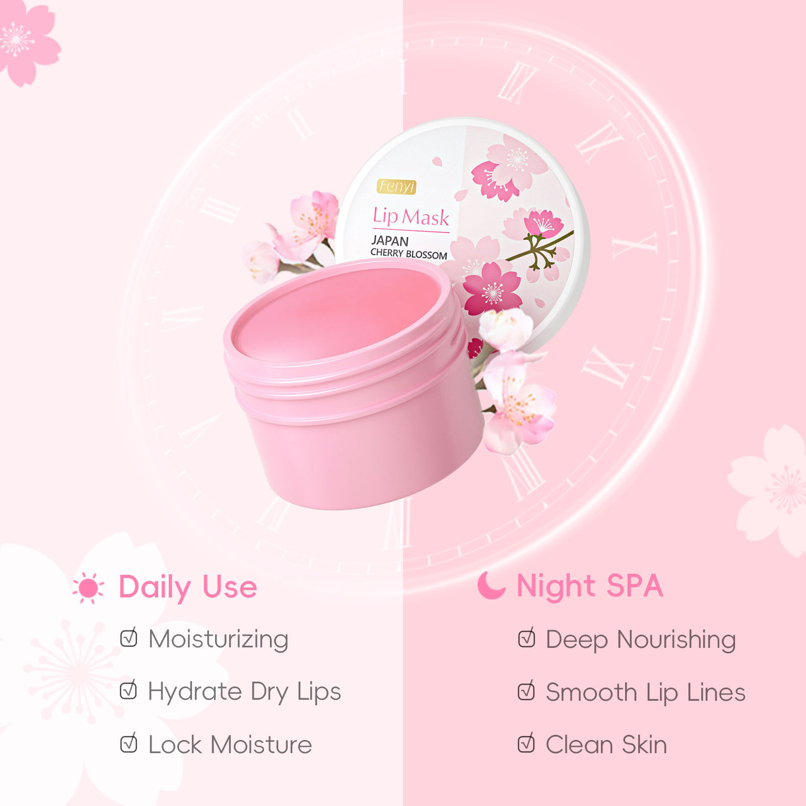 Маска для губ Fenyi Japanese Sakura 15г, увлажняющая и питательная, средство для ухода за губами.