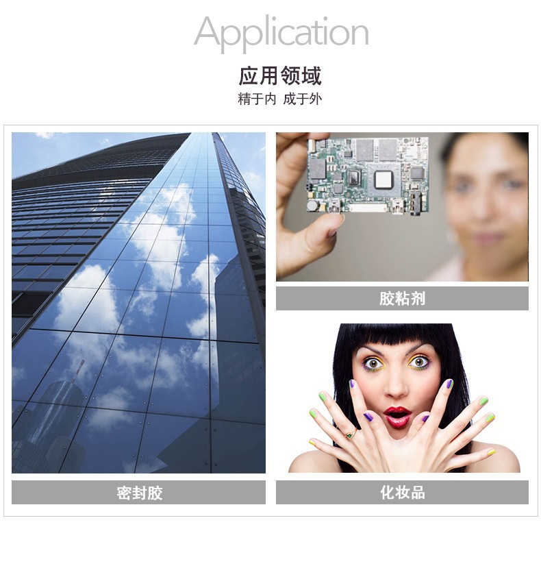 Силиконовая резина, герметики, органические эластомеры, краски, чернила, покрытия, клеи, жидкие порошки/упаковки.