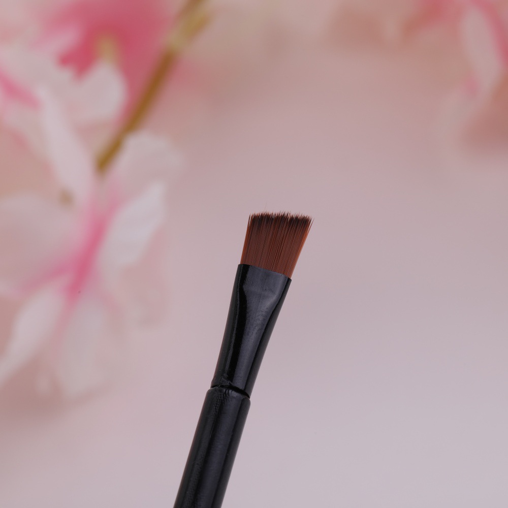 Черная алюминиевая трубка диаметром 5 см с черным стержнем, одним концом щипцов для завивки ресниц и одним концом косой щетки.; 5 см черная алюминиевая трубка, черный стержень, скошенная головка на одном конце и плоская головка-щетка на другом конце.