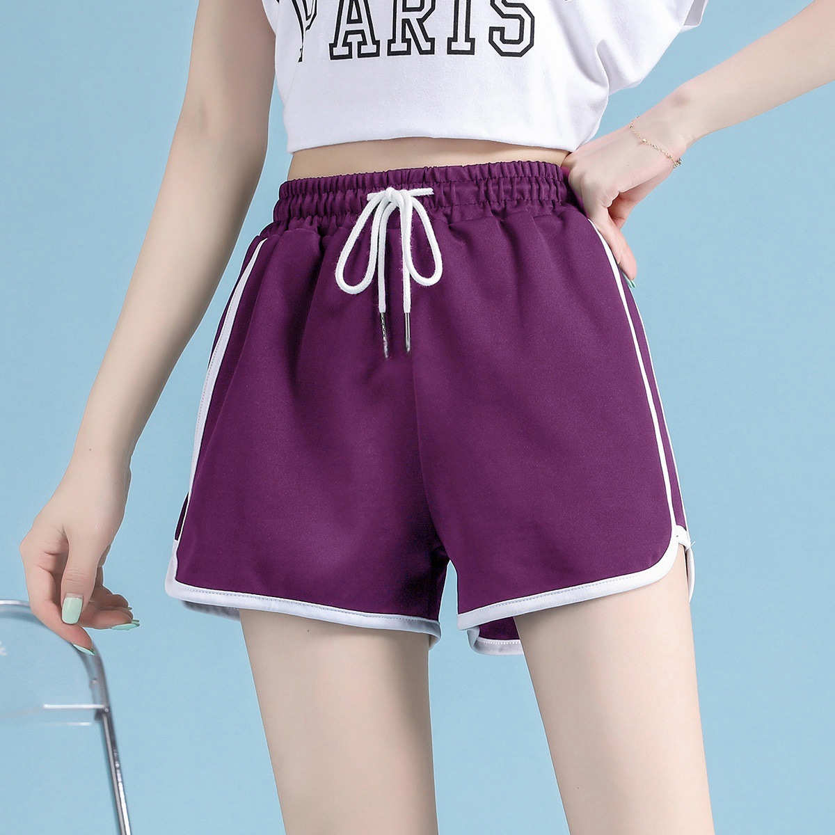 Спортивные шорты женские трансграничные летние повседневные свободные прямые брюки носить с высокой талией и тонкими тремя точками йоги шорты