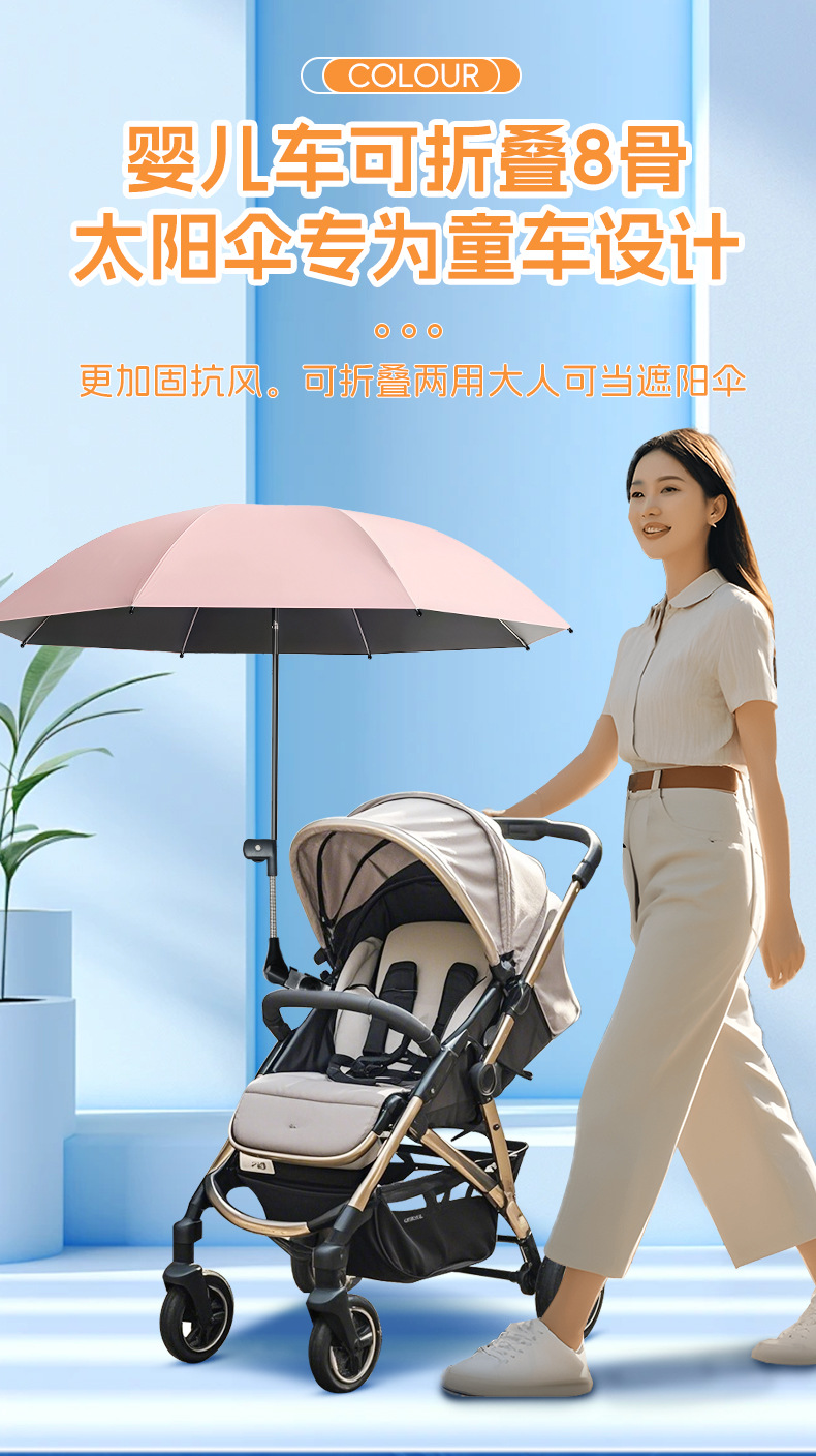 Тройной зонт для коляски с 8 косточками - Ши Яохэй; Тройной зонт-коляска на 8 косточек-глубоководный синий; Тройной зонт-коляска на 8 косточек-Сакура розовый; Тройной зонт-коляска 8 косточек-Yuzi желтый; Тройной зонт-коляска 8 косточек-небесно-голубой; Тройной зонт для коляски на 8 косточек-мятно-зеленый; Тройной зонт для коляски с 8 косточками - рис Вутонг