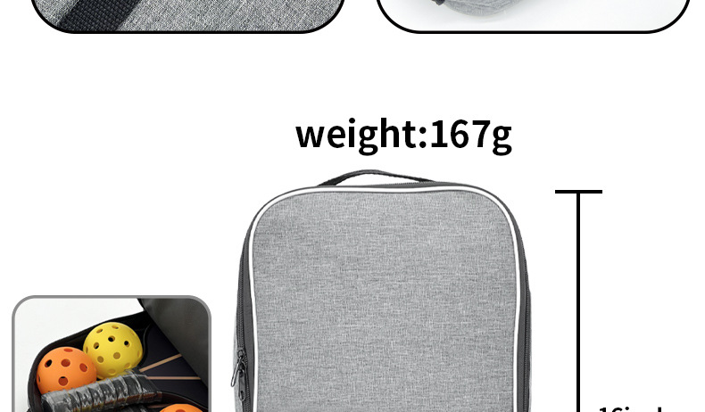 2拍4球的包重量是167g 尺寸是41*22*5cm