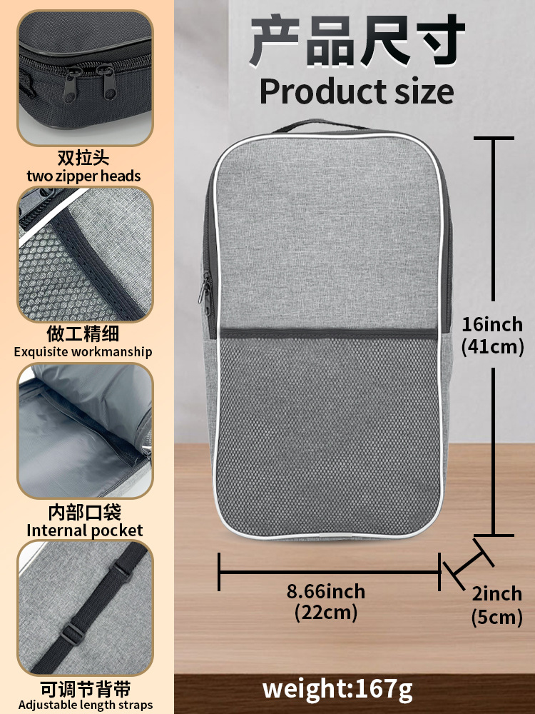The weight of the small bag is 167g, and the size is 16*8.66*2 inch