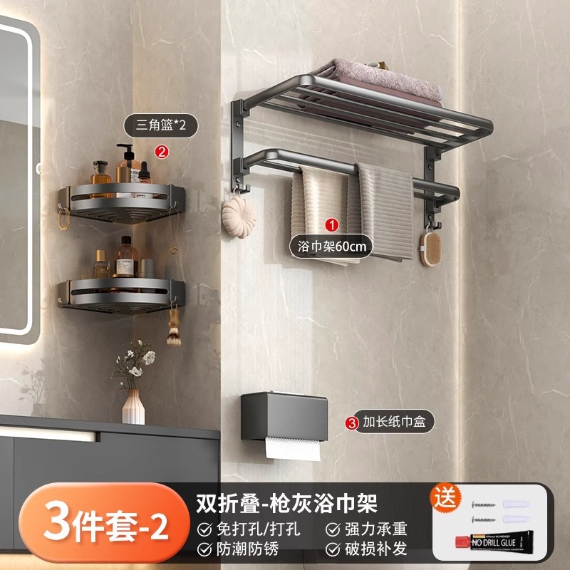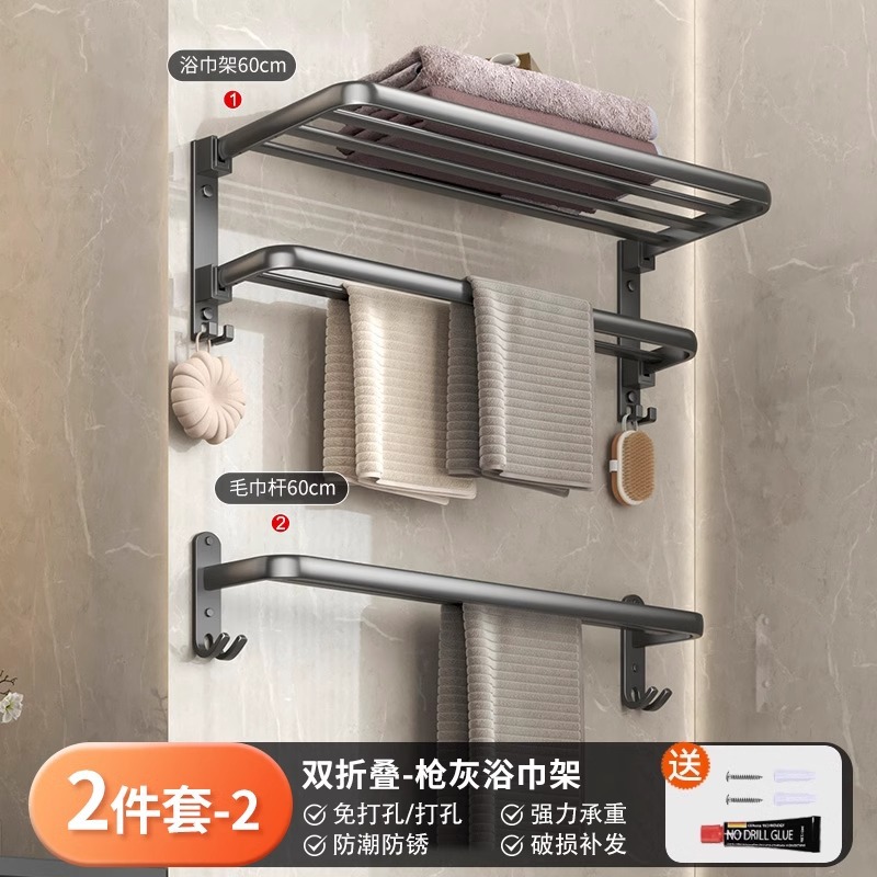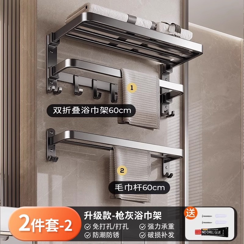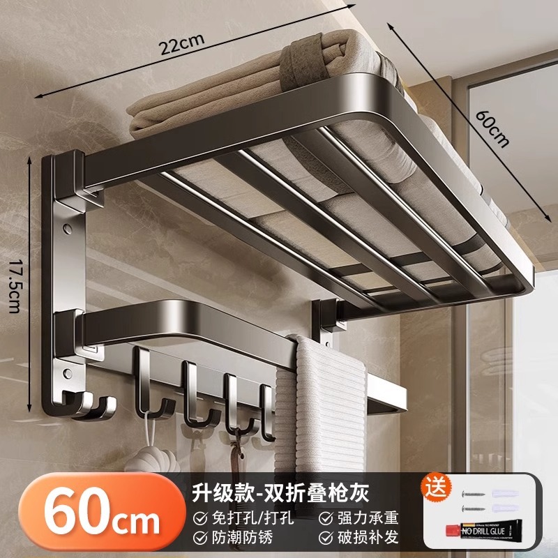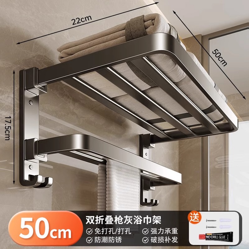 Полотенцедержатель из космического алюминия цвета пистолетной ржавчины, без перфорации, для ванной комнаты, двухъярусный, для хранения полотенец