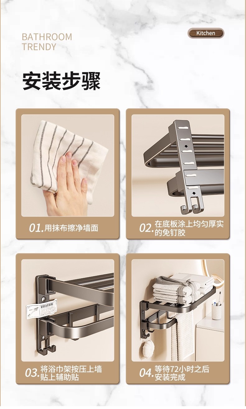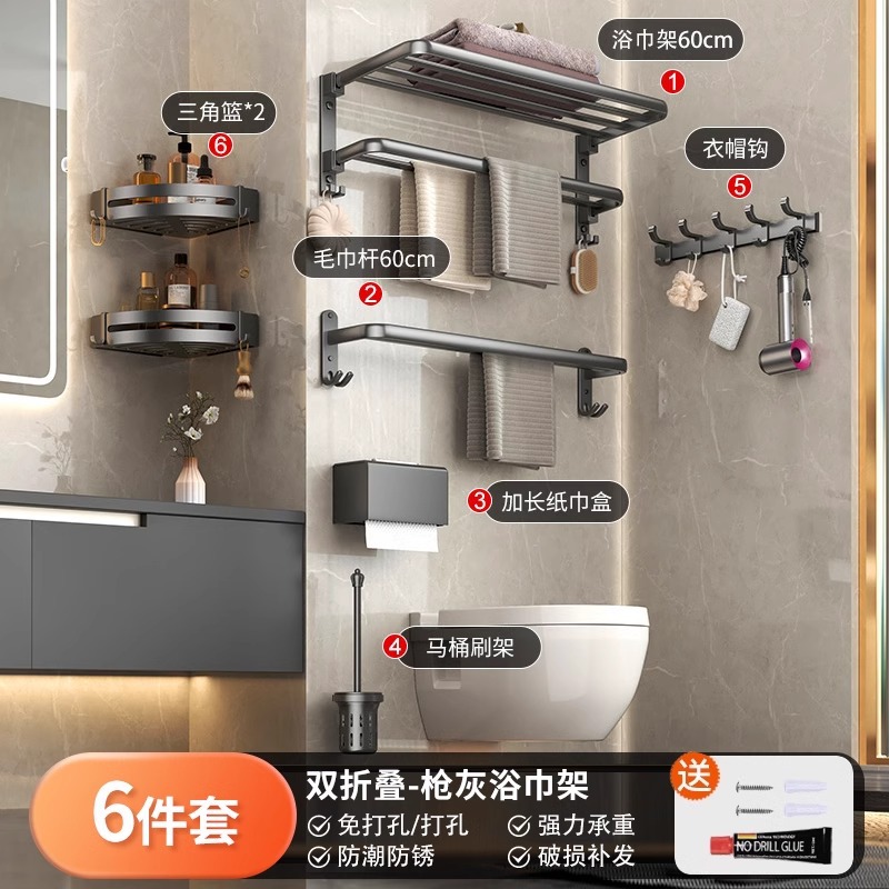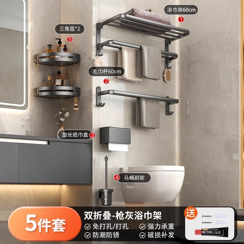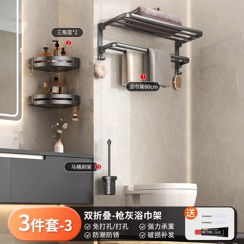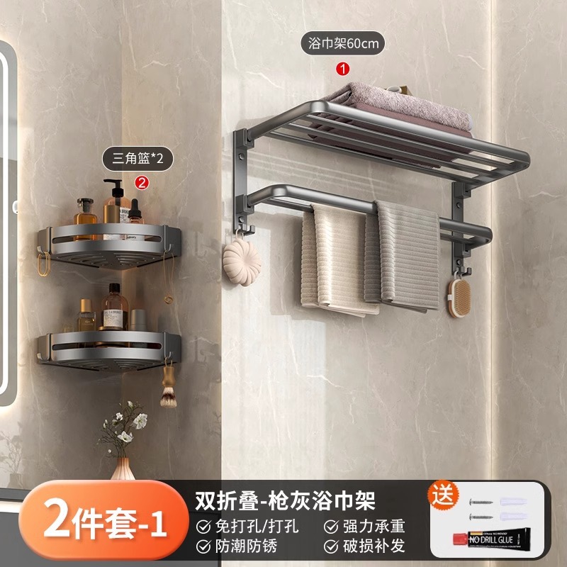 Полотенцедержатель из космического алюминия цвета пистолетной ржавчины, без перфорации, для ванной комнаты, двухъярусный, для хранения полотенец