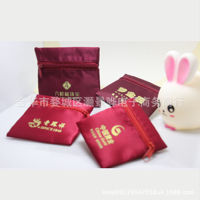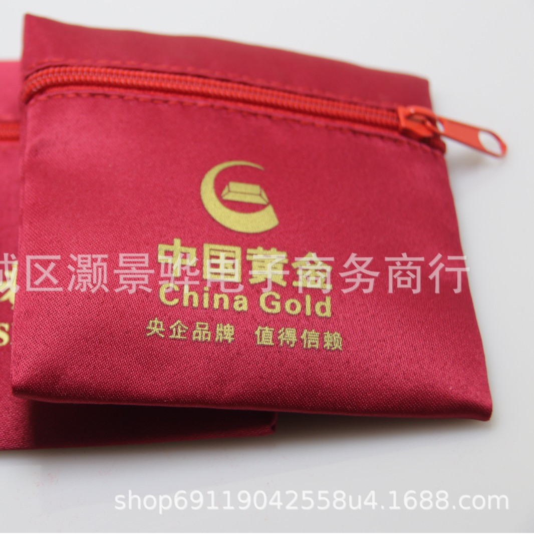 Элитные мешочки для ювелирных изделий на молнии, китайские золотисто-бордовые мешочки для хранения украшений, двухслойные бархатные сатиновые мешочки оптом