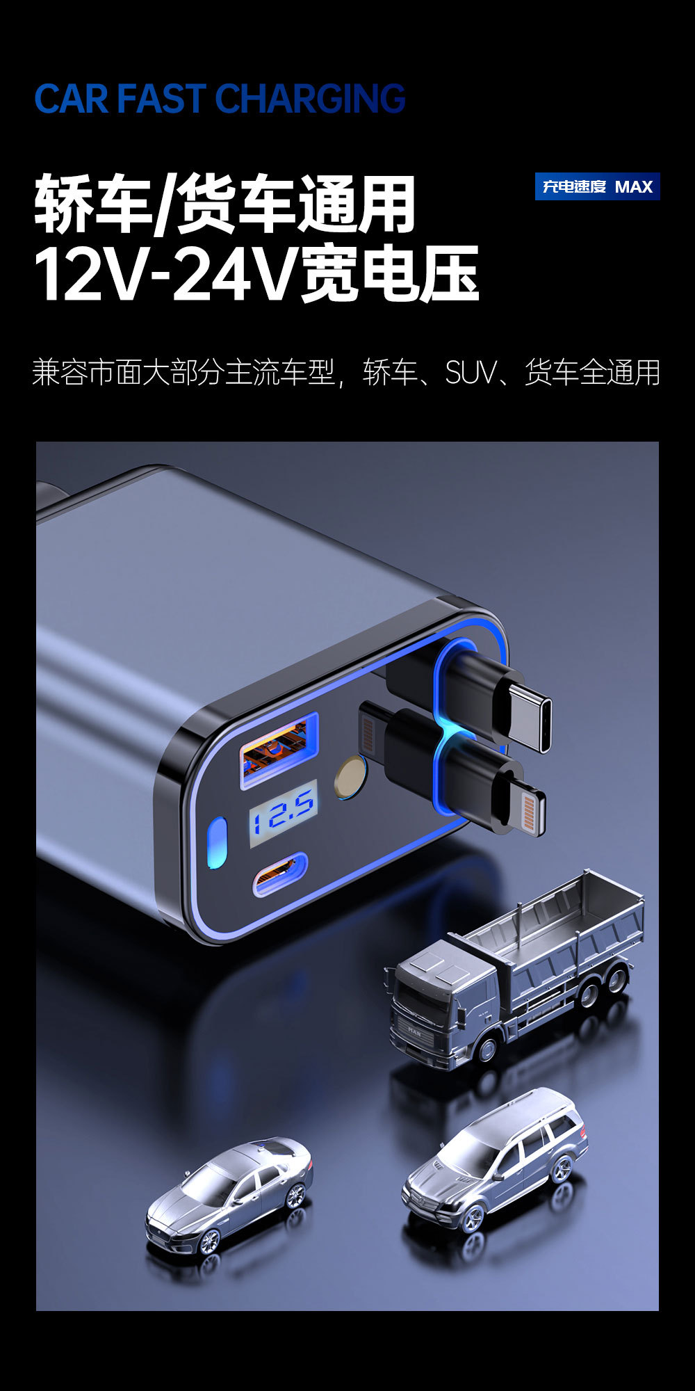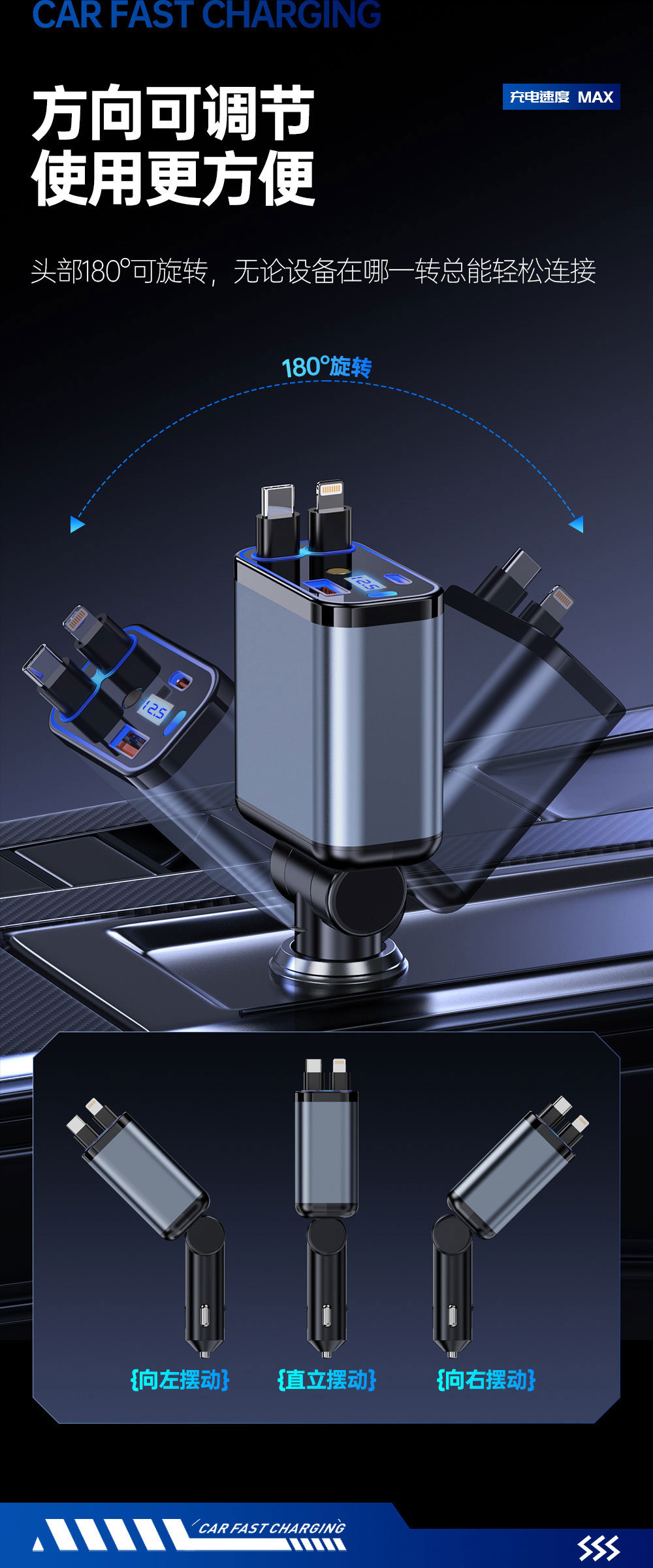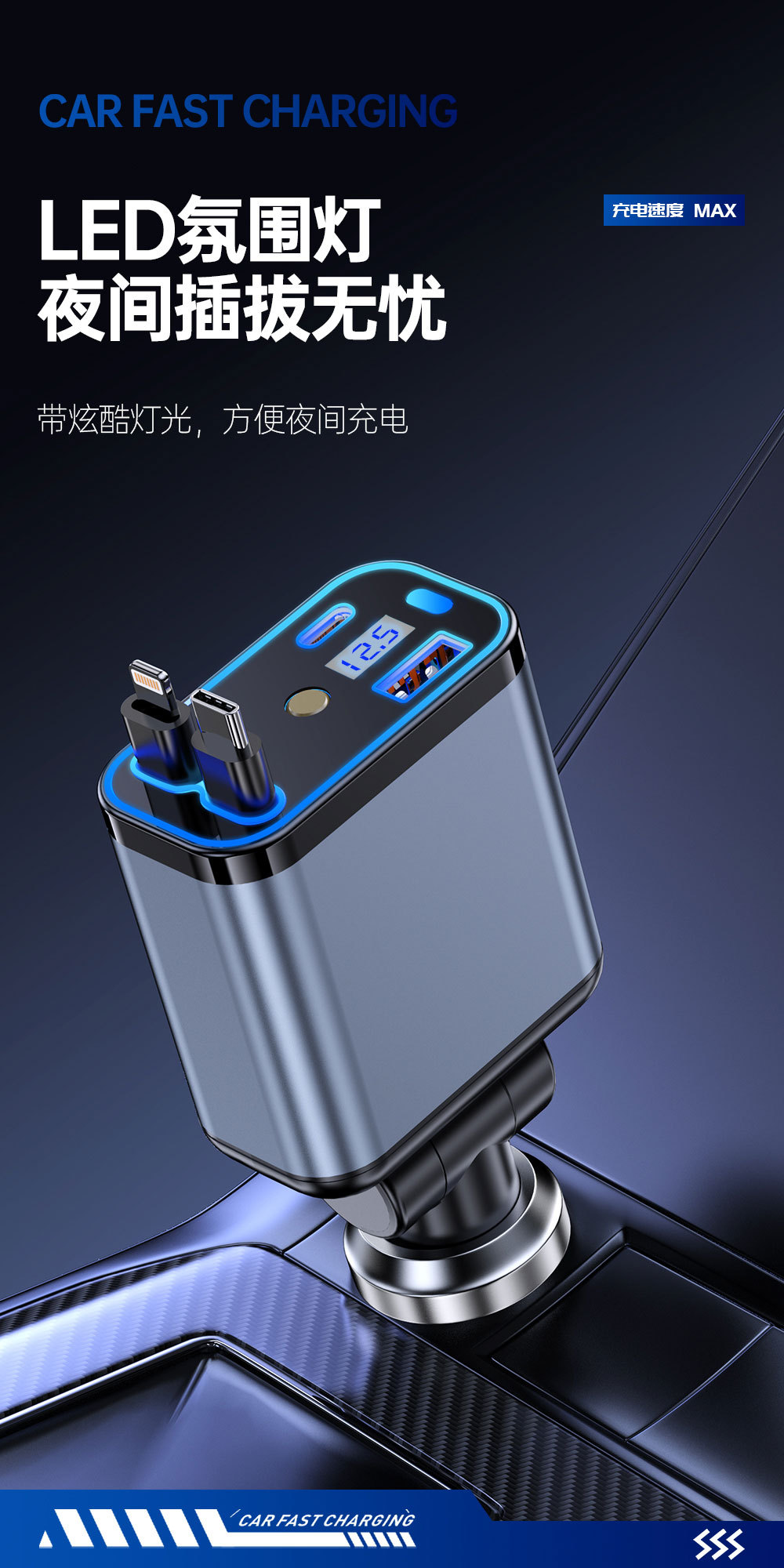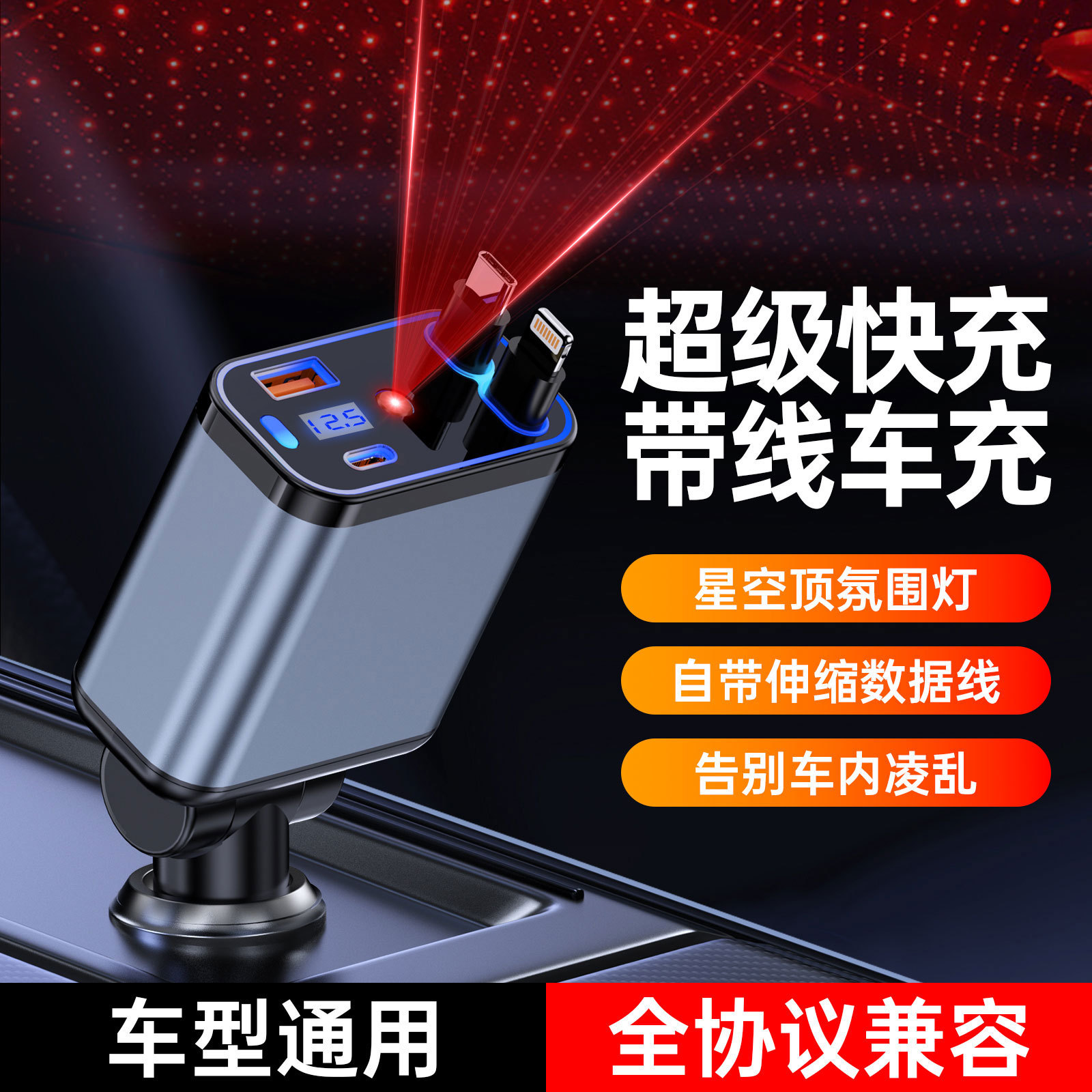 Трансграничное металлическое автомобильное зарядное устройство супер быстрая зарядка четыре в одном телескопическая линия PD быстрая зарядка прикуривателя автомобиля оптом