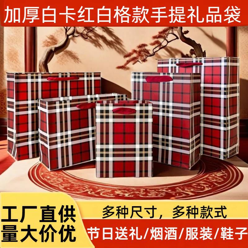 Белая карта, утолщенная подарочная упаковка, сумка в клетку, сумка для одежды, сумка для покупок, красная праздничная подарочная сумка, элитная
