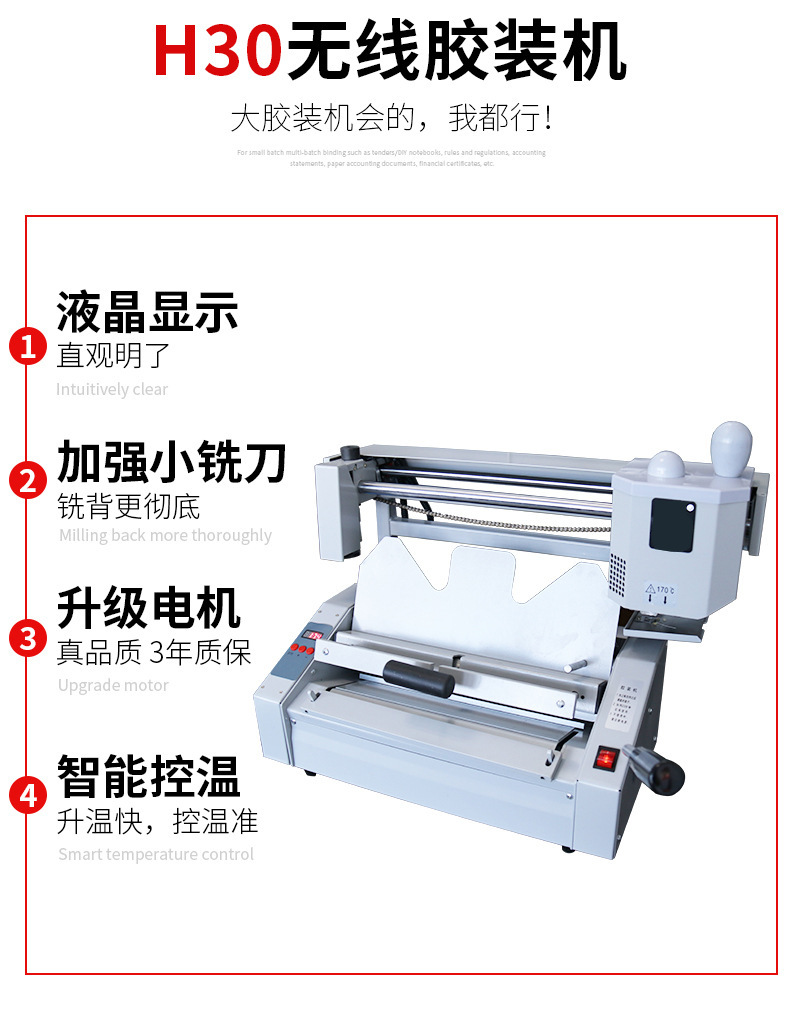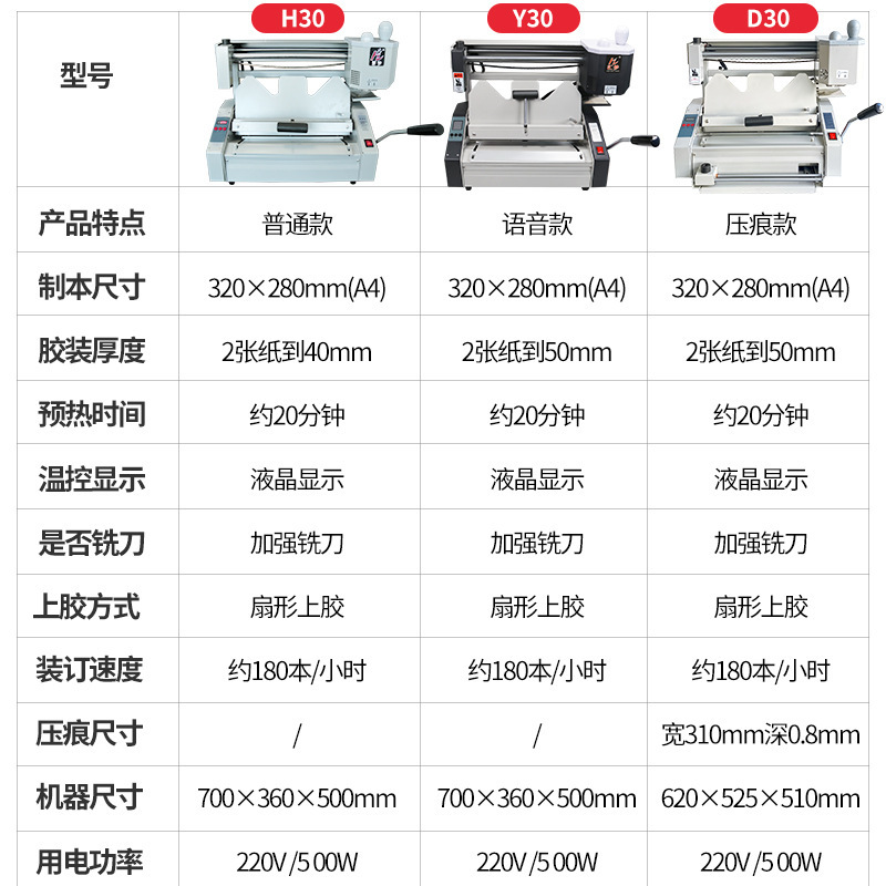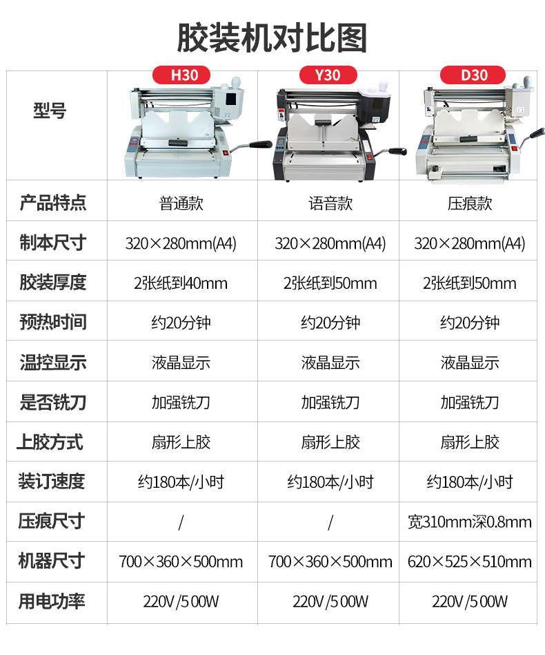 (H30 classic) Одна автономная переплетная машина; (H30 classic) машина для переплета клея + (858A4 белый толстый слой classic) ручной резак для бумаги; (H30 Classic) + (858A4 White Thick Layer Classic) + (C350 Classic) Импрессор; (Голос Y30) Одна автономная машина для переплета клея, модернизированная с голосовой моделью; (Голос Y30) Модернизированная машина для привязки голоса + (классический белый толстый слой 858A4) ручной резак для бумаги; (Голос Y30) + (858A4 белый толстый слой классический) + (C350 классический) машина для вдавливания; (Зазор D30) Одна автономная машина для переплета клеем с усовершенствованным зазором; (Зазор D30) Одна автономная машина для переплета клеем, модернизированная с зазором + (классический толстый слой белого цвета 858A4)