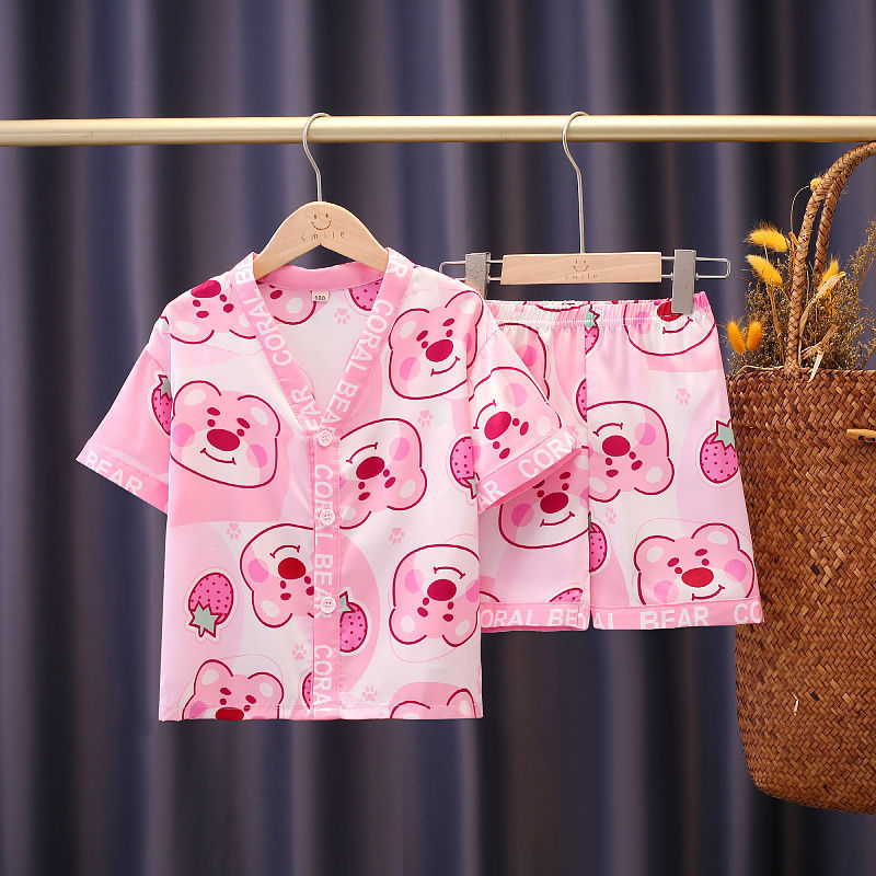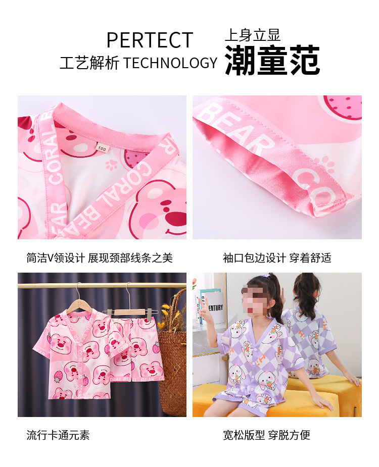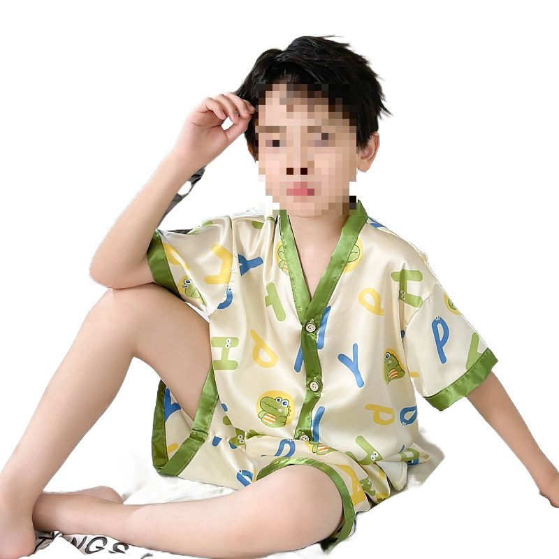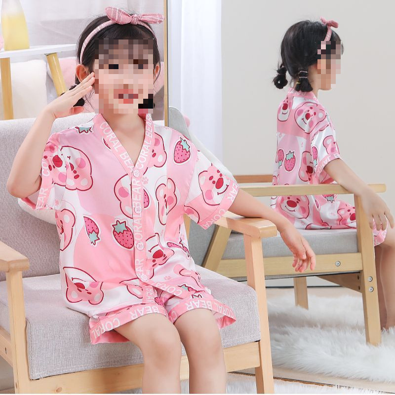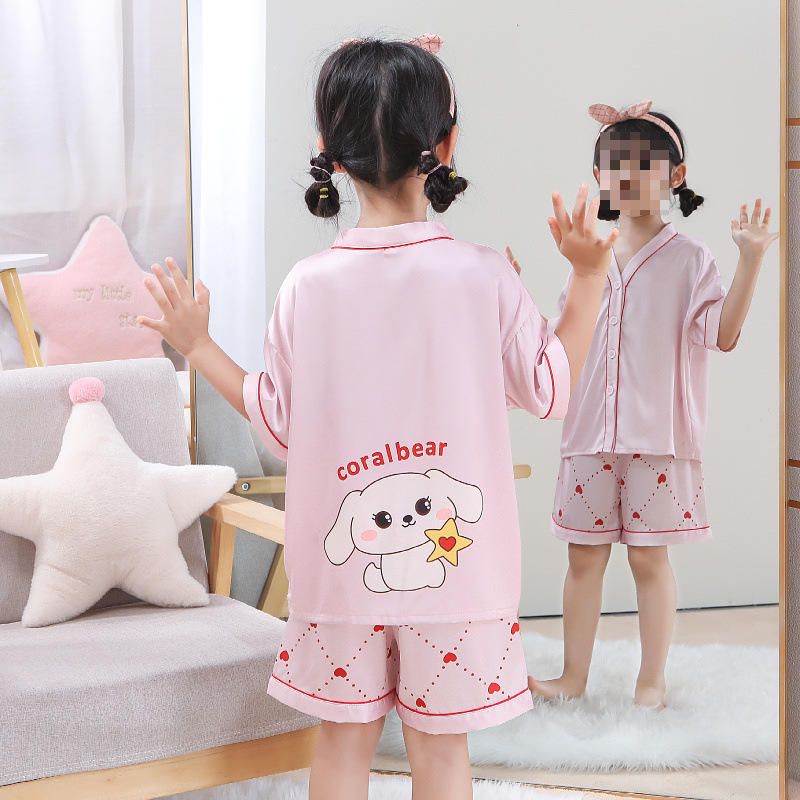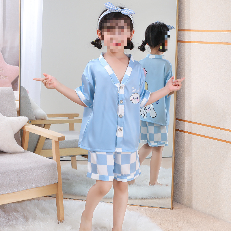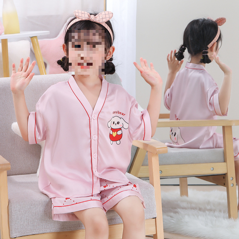 Летние дети с короткими рукавами пижамы с ледяным шелком для мальчиков милые маленькие девочки тонкий мультяшный кондиционер набор домашней одежды