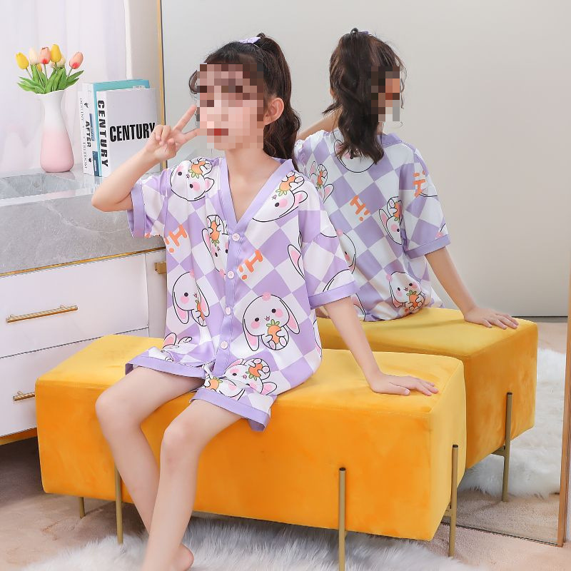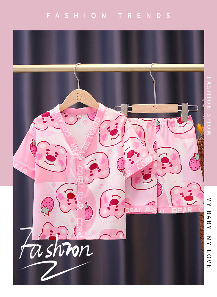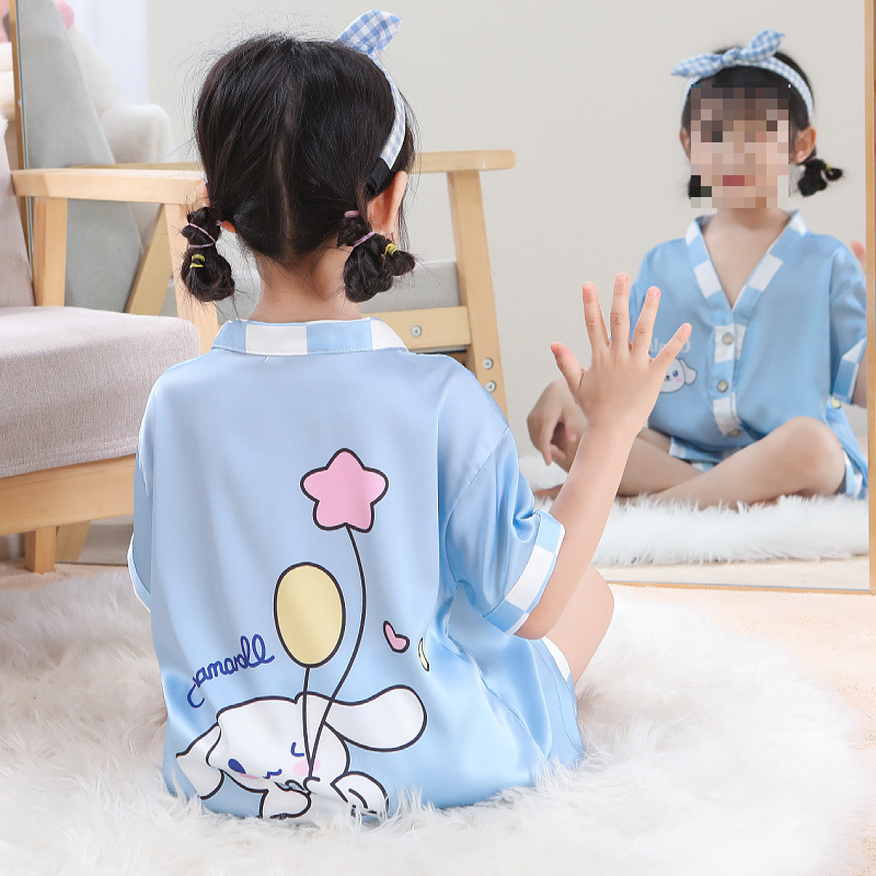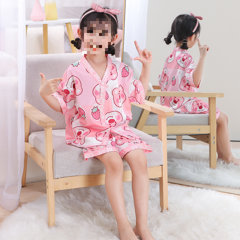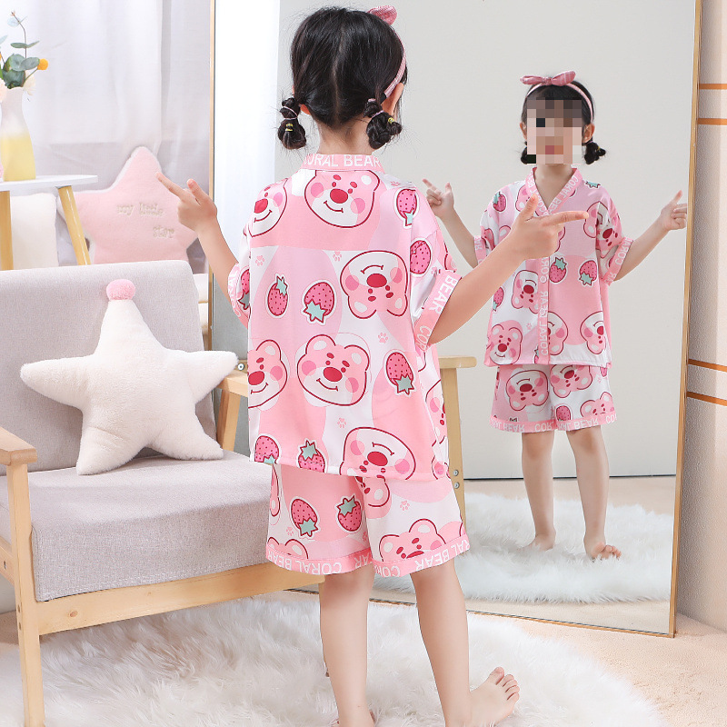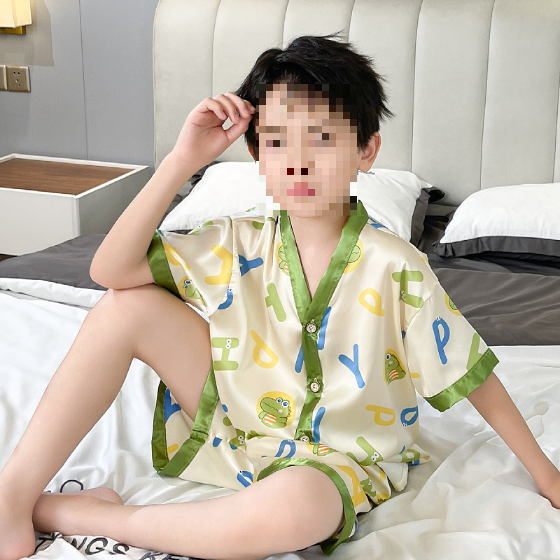 Летние дети с короткими рукавами пижамы с ледяным шелком для мальчиков милые маленькие девочки тонкий мультяшный кондиционер набор домашней одежды