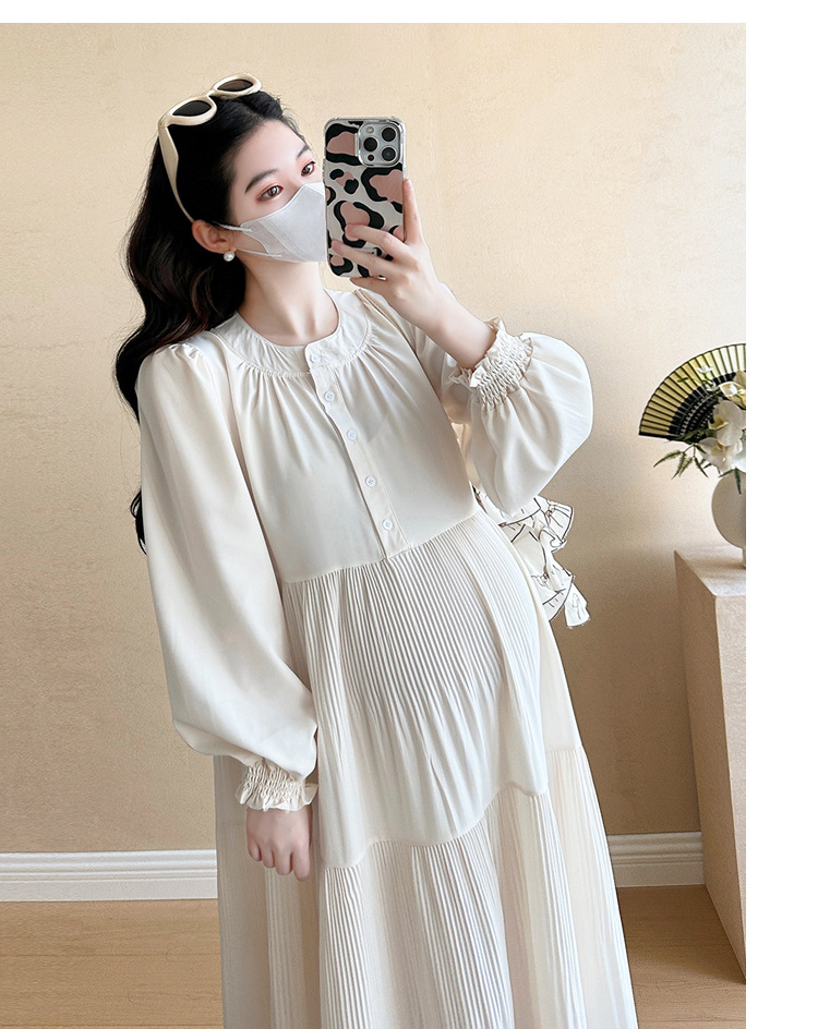 2025 новый свободный тонкий плиссированный круглый воротник простой ленивый стиль повседневное платье для беременных