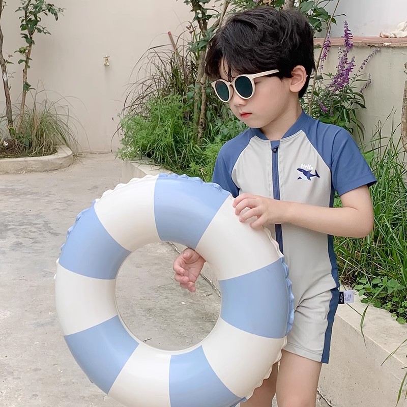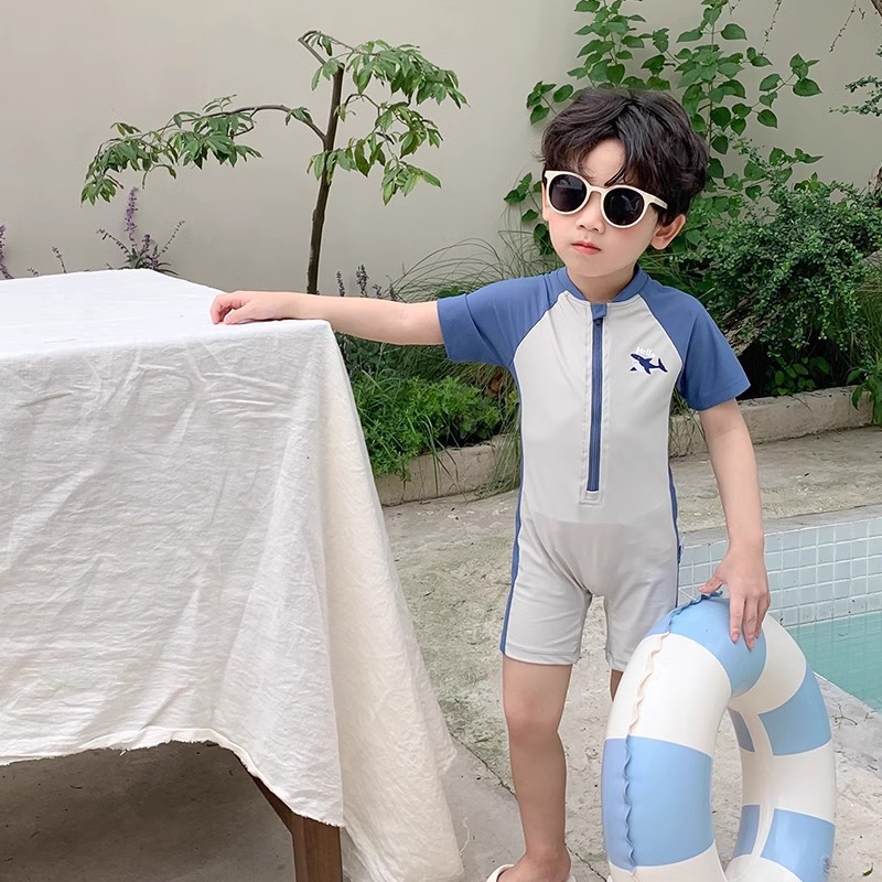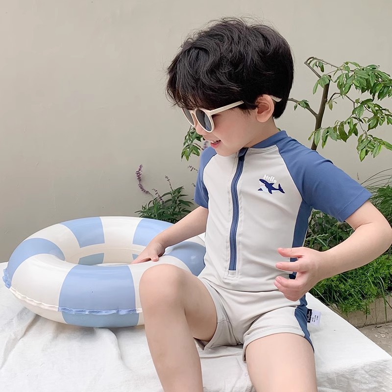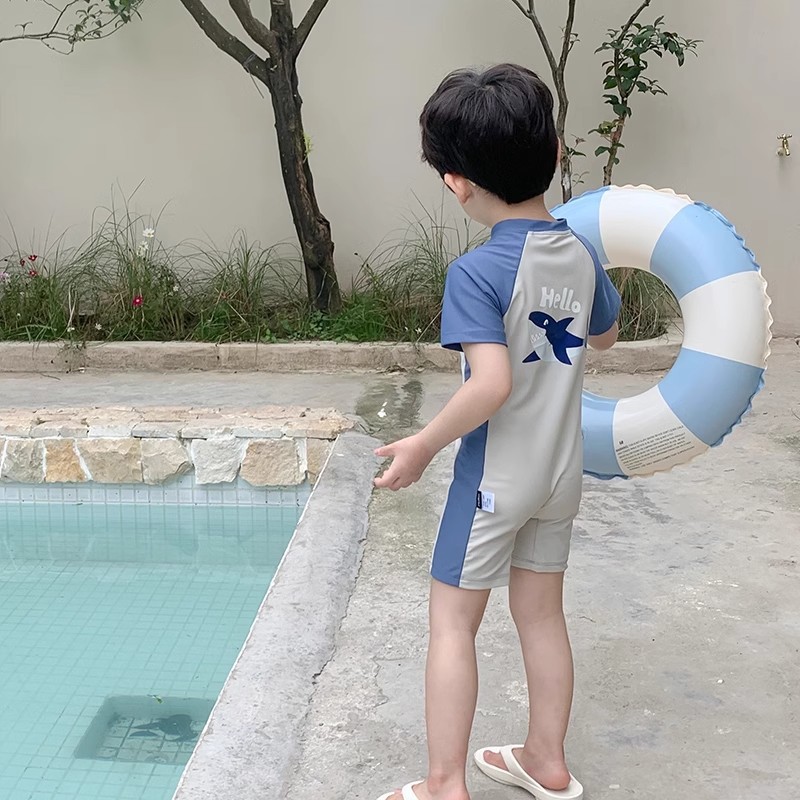 Детский купальник мальчик милый сияй акула ребенок ребенок с короткими рукавами солнцезащитный крем быстродушащие плавки