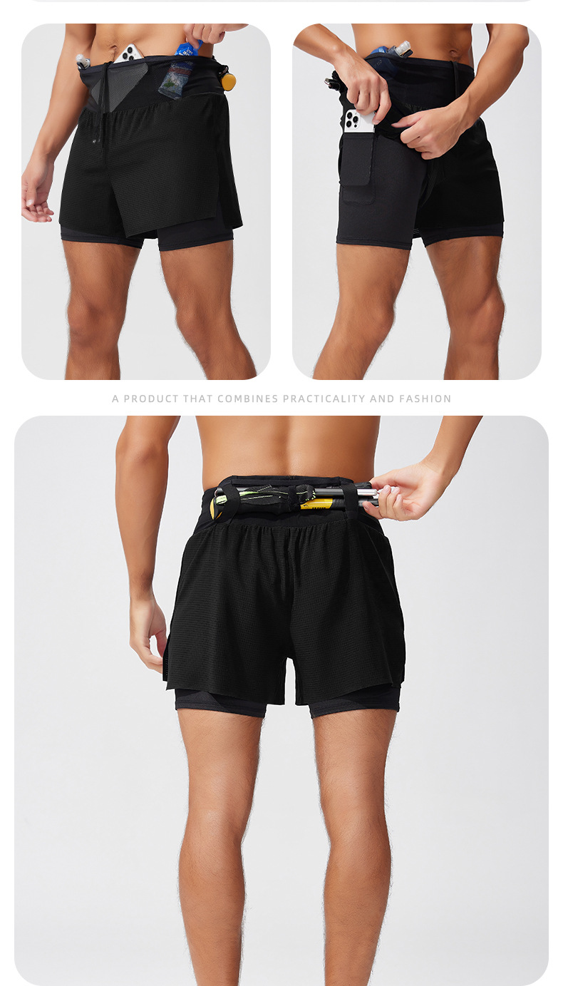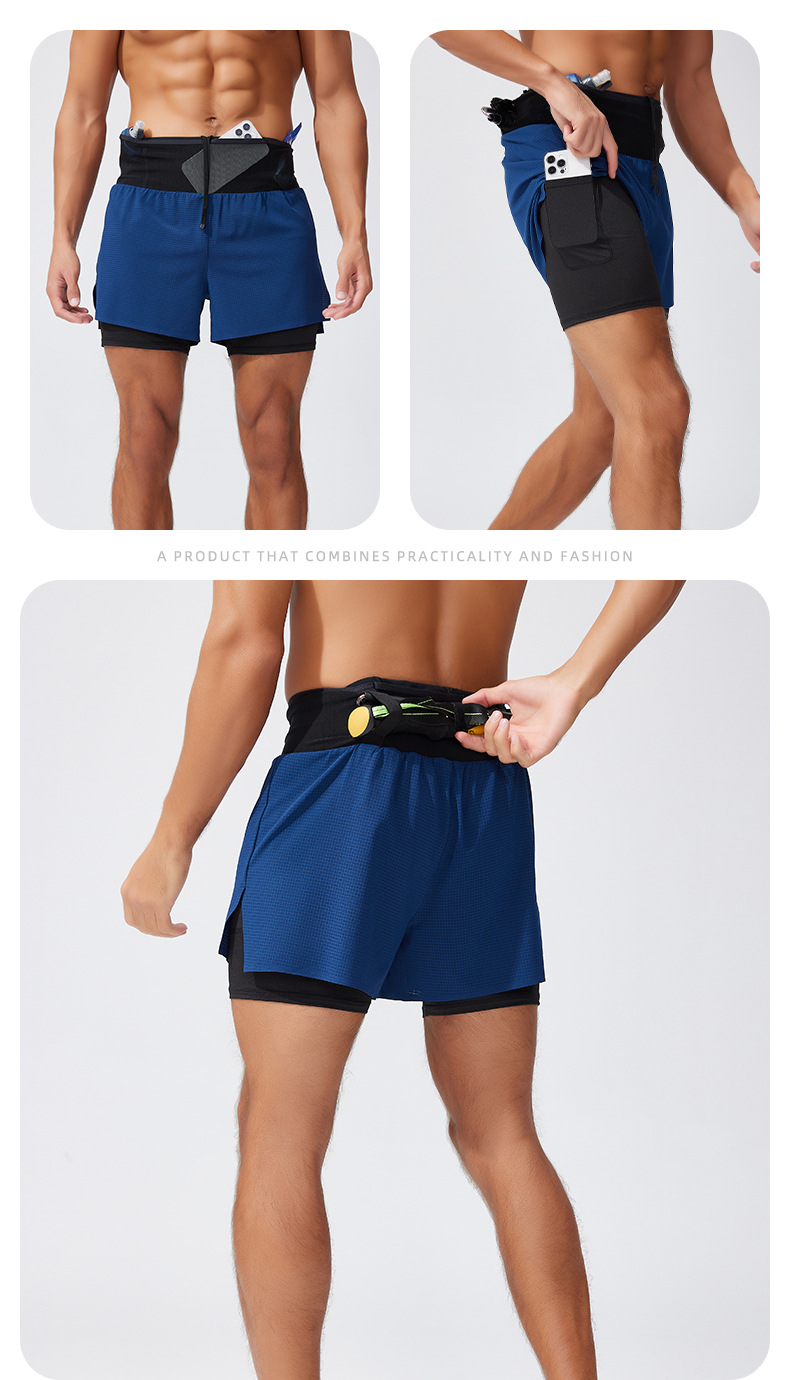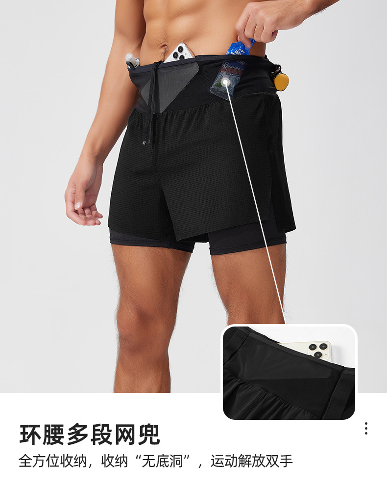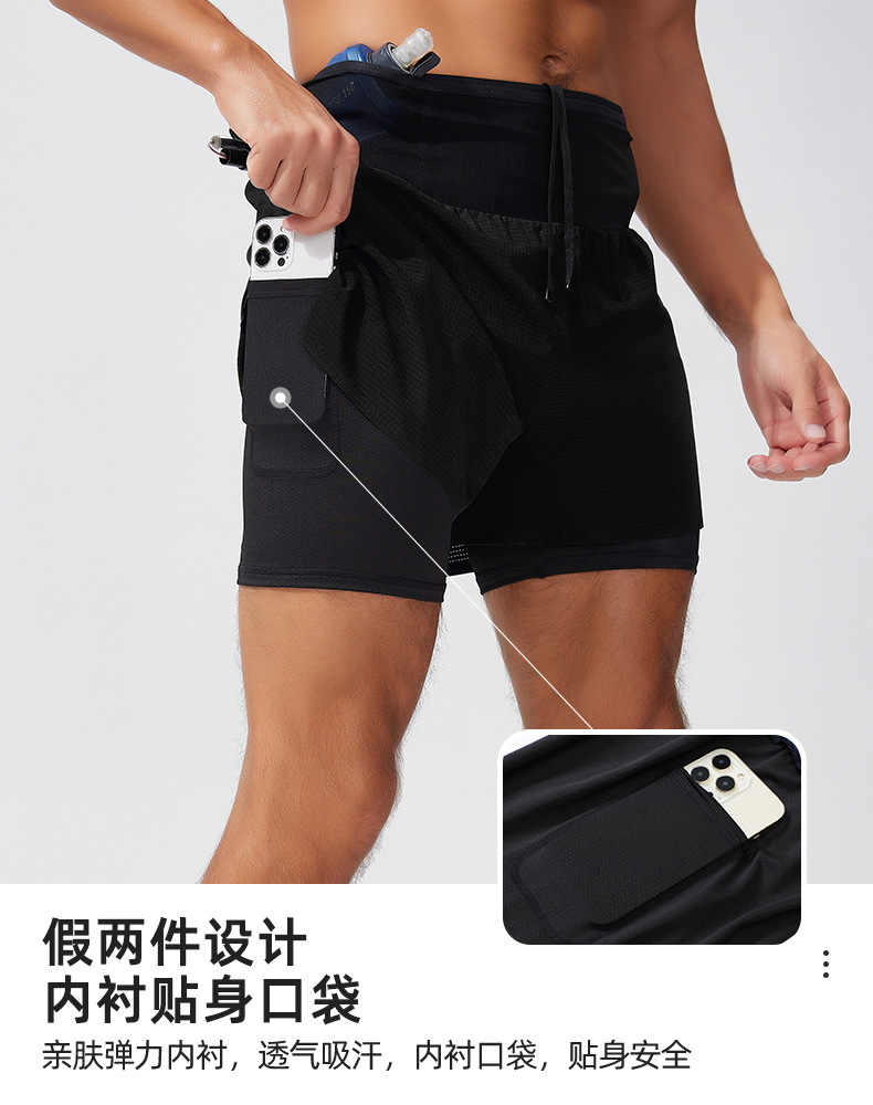 Летний новый марафон фитнес-баскетбольные брюки двойные поддельные две части открытый альпинистские шорты бега по пересеченной местности спортивные шорты