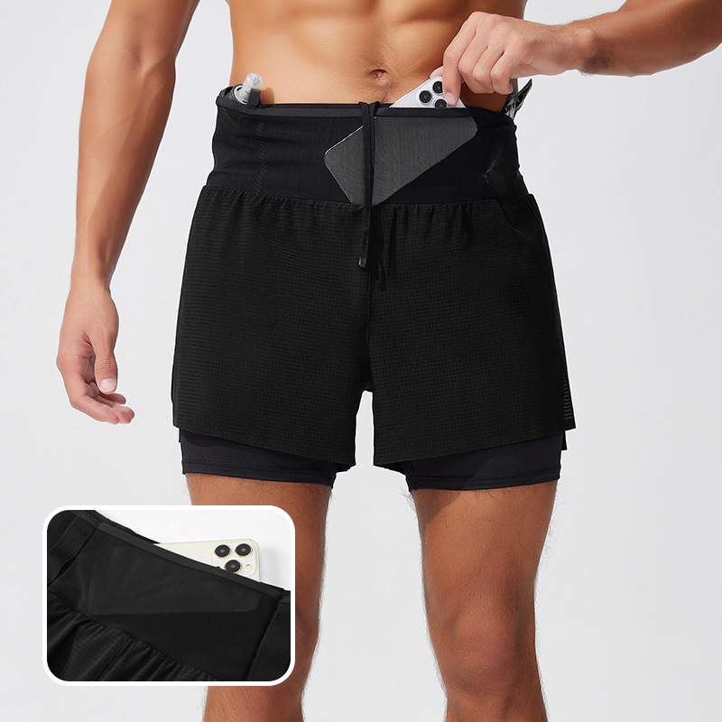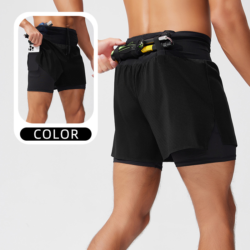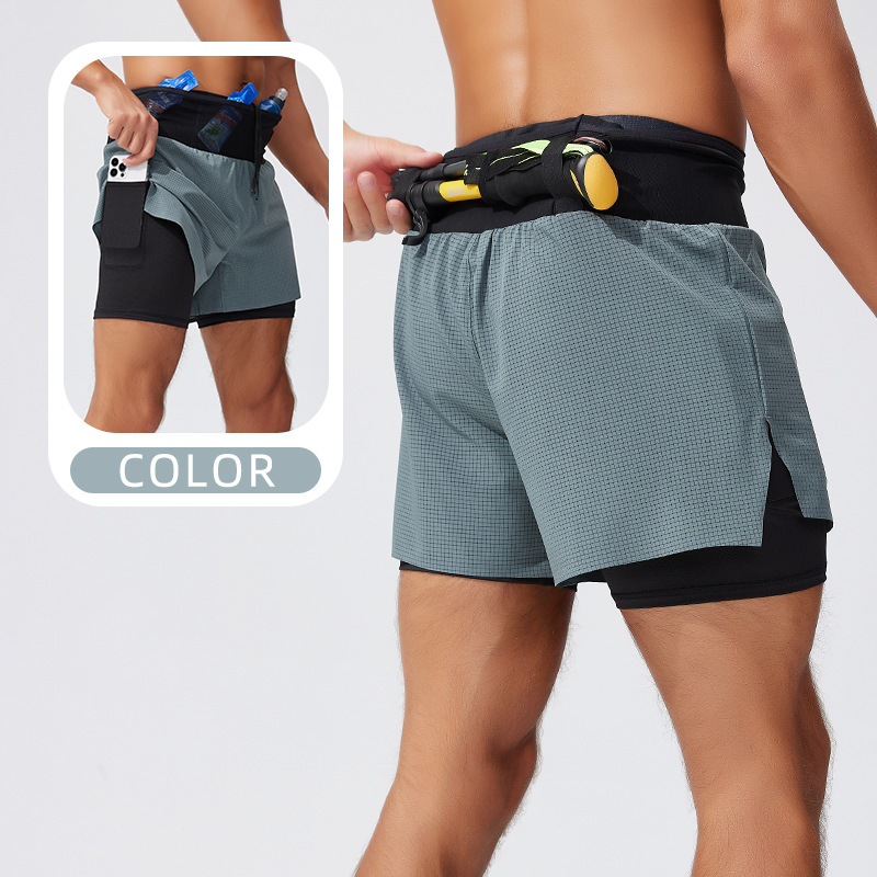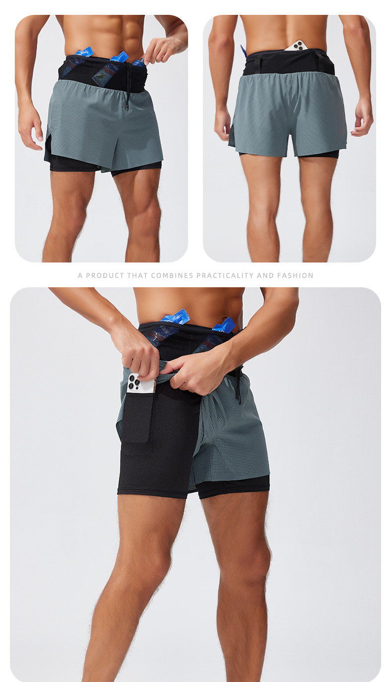 Летний новый марафон фитнес-баскетбольные брюки двойные поддельные две части открытый альпинистские шорты бега по пересеченной местности спортивные шорты
