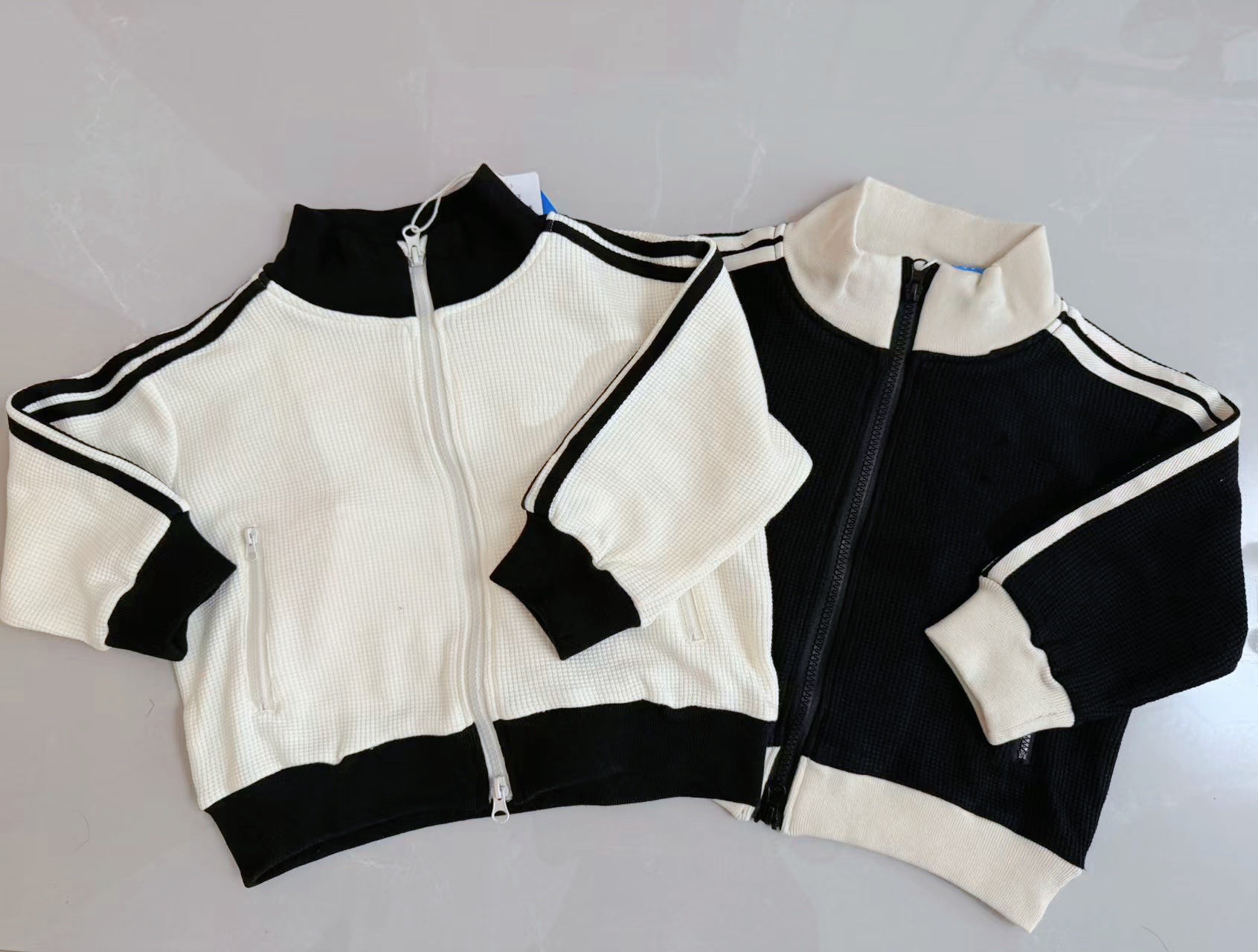 черная вафельная куртка; Бежевый вафельный жакет