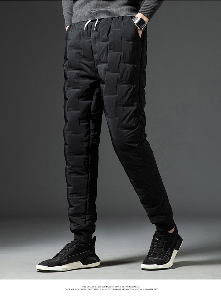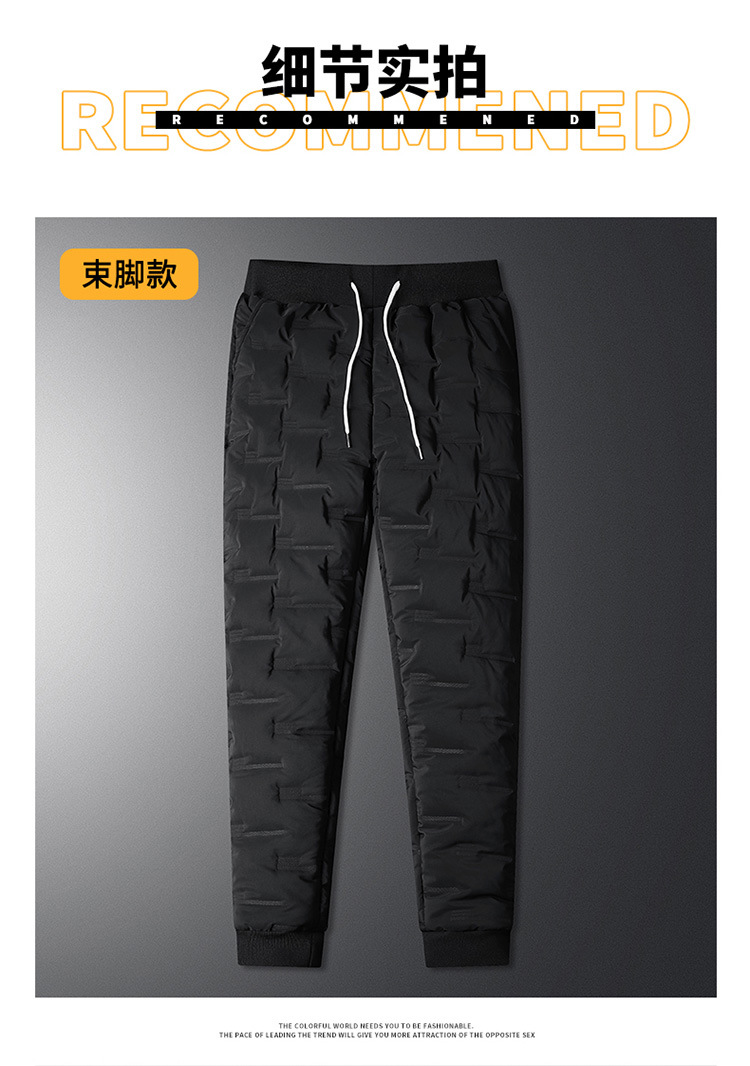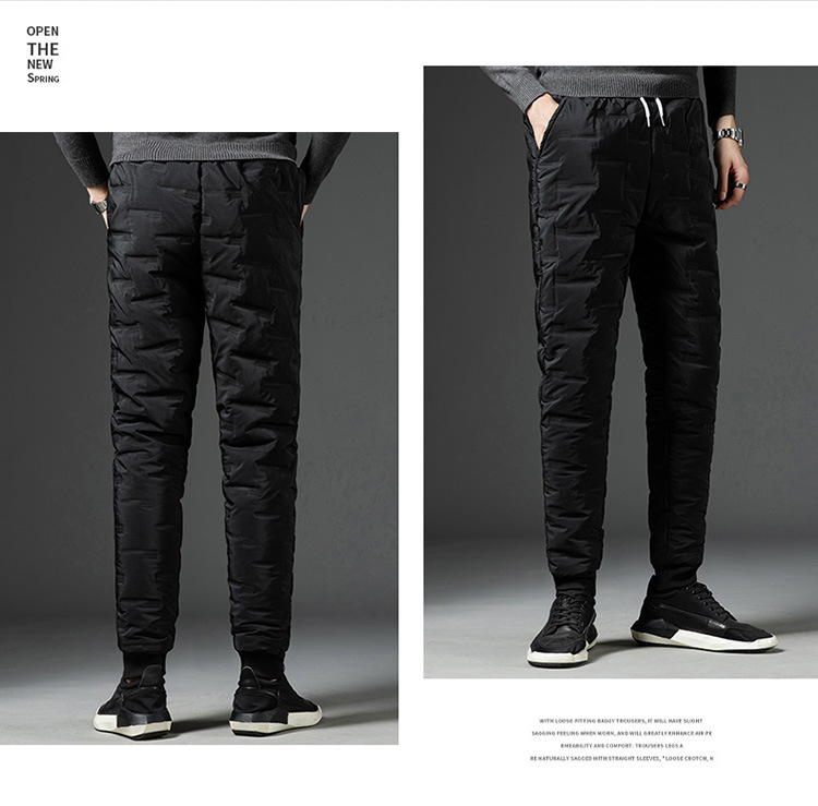 Теплые брюки Мужские зимние приливы пуховые хлопковые брюки Мужские толстые ветрозащитные зимние сплошные прямые повседневные зарядные брюки