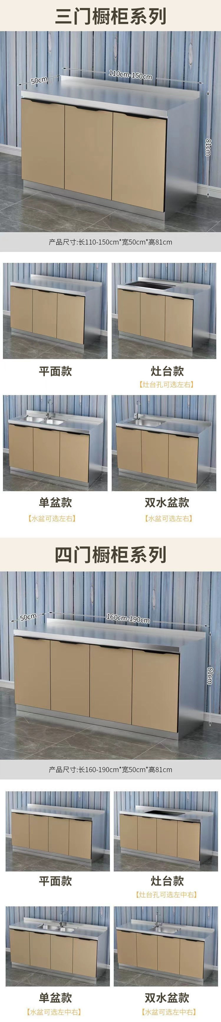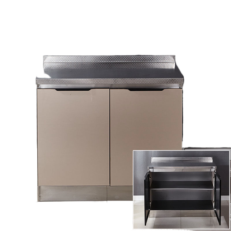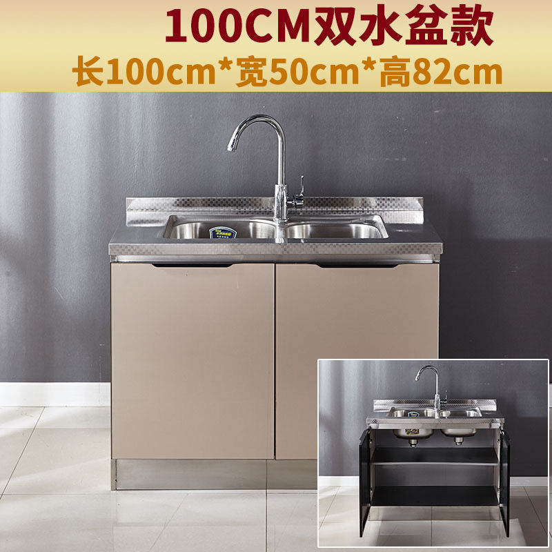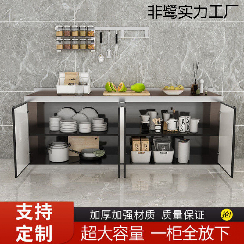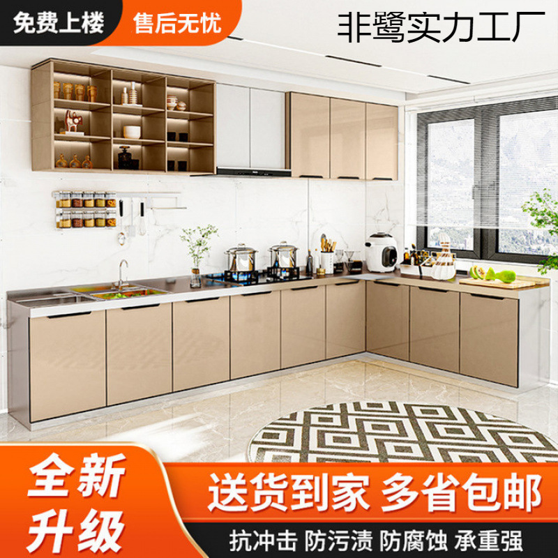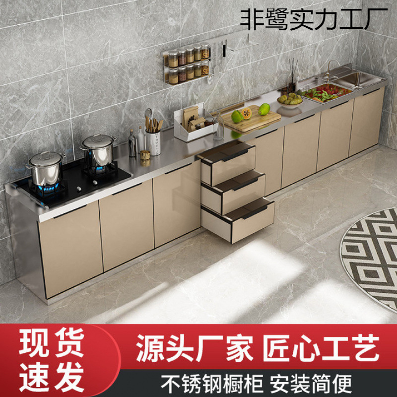 Кухонные шкафы из нержавеющей стали Простая плита настольная шкаф шкаф все в одном аренде дома Сборка экономичная общая кухня
