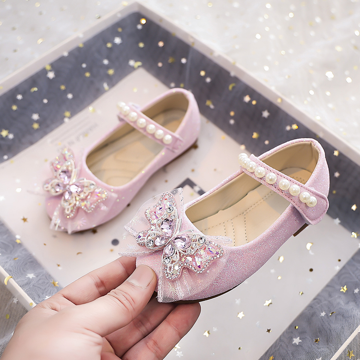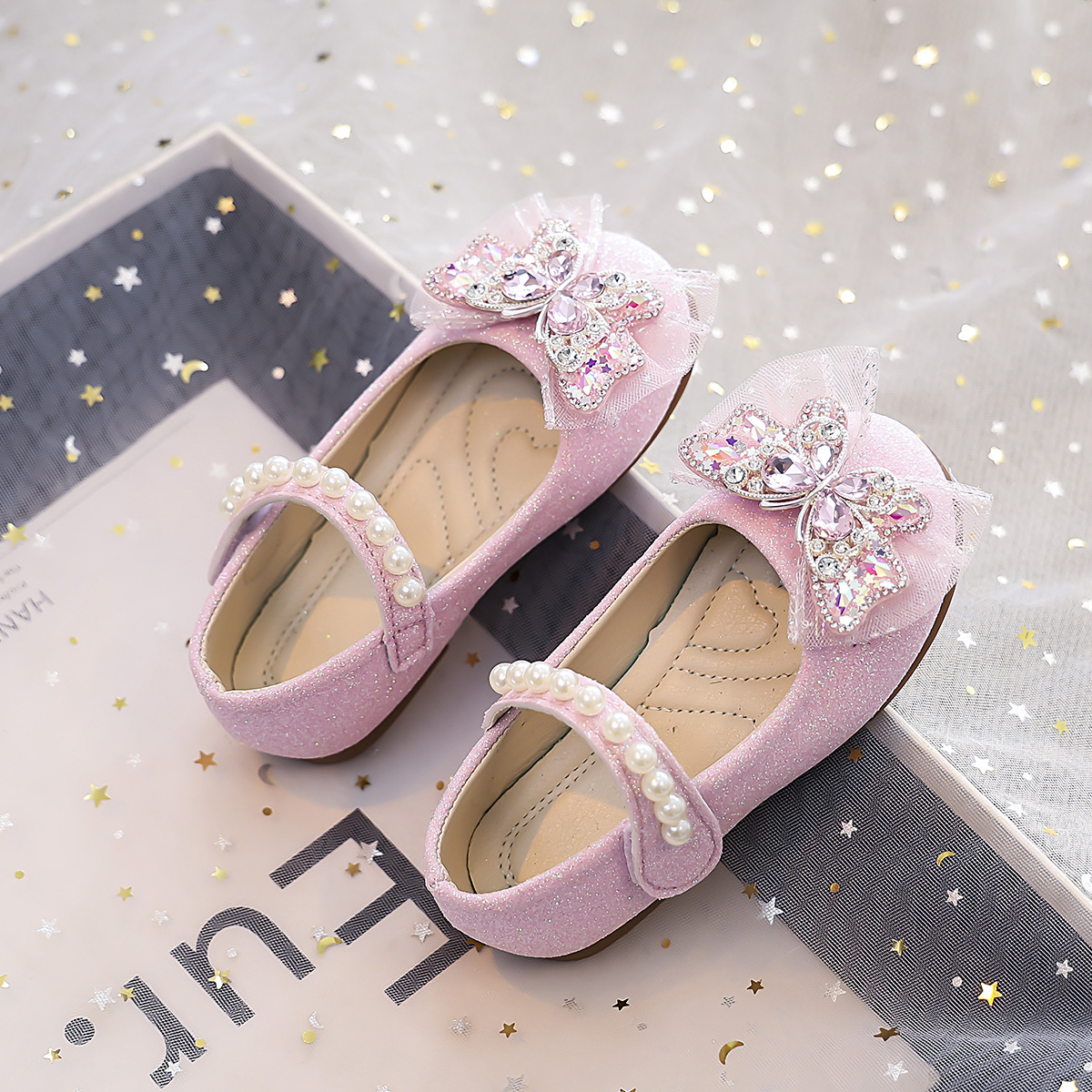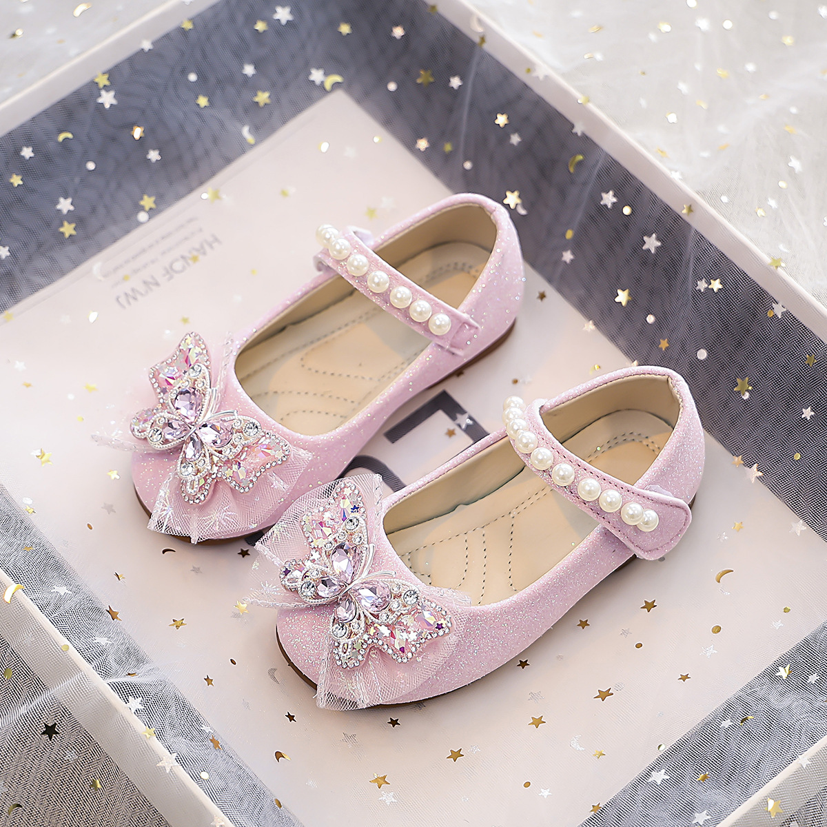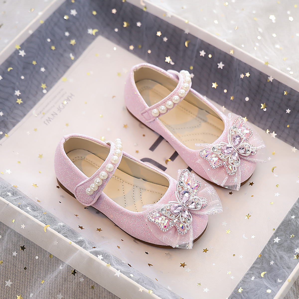 Детские туфли для девочек, кожаные туфли-принцессы, весна-осень 2025, детские кристальные балетки для девочек 3-6 лет, трансграничный стиль