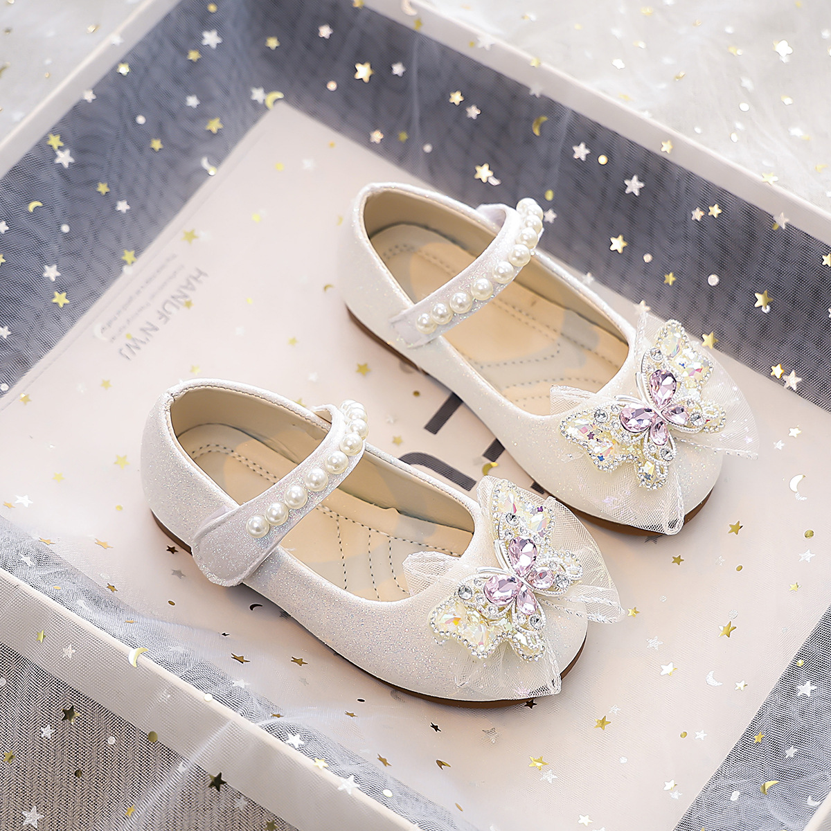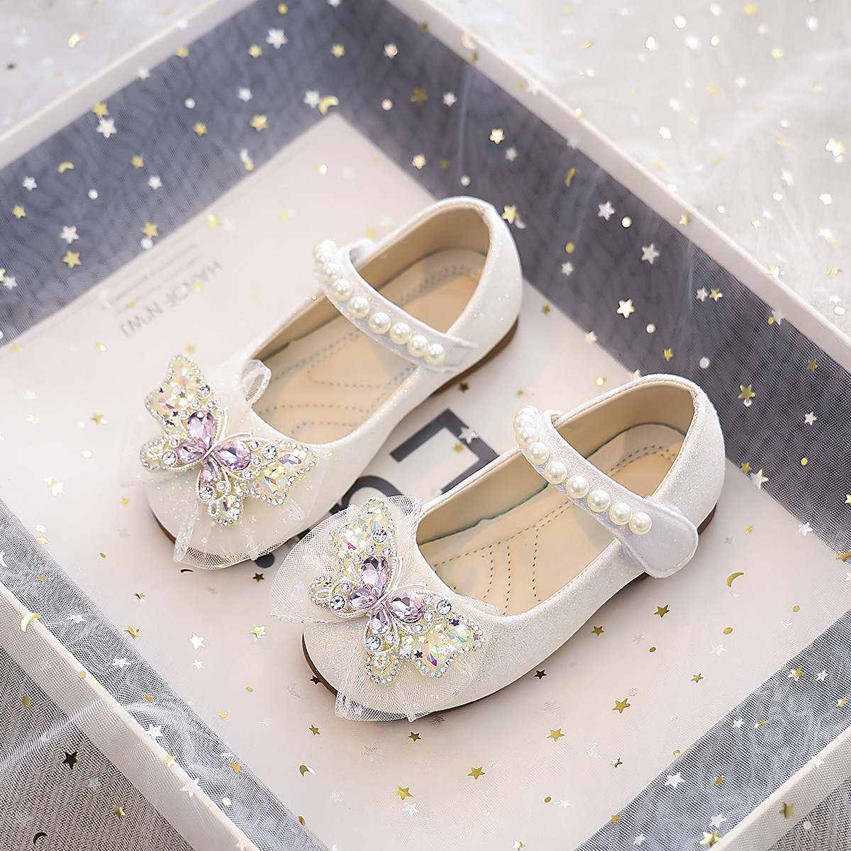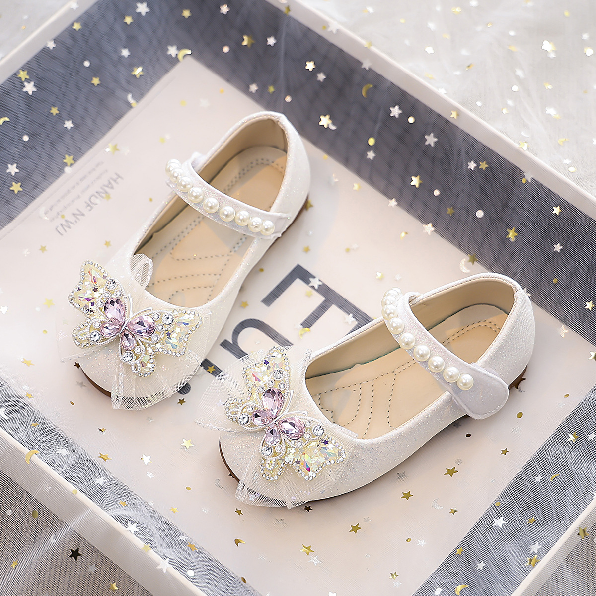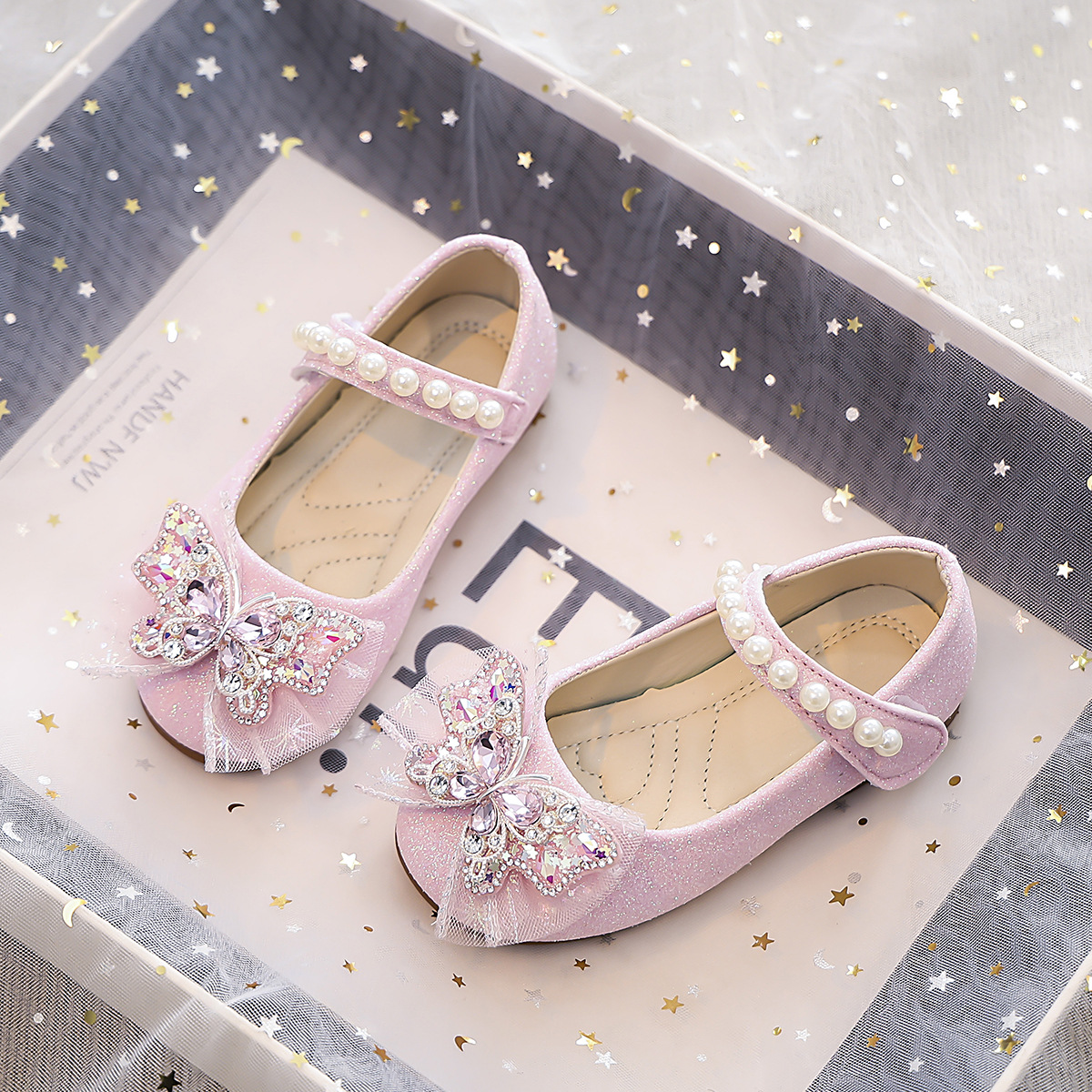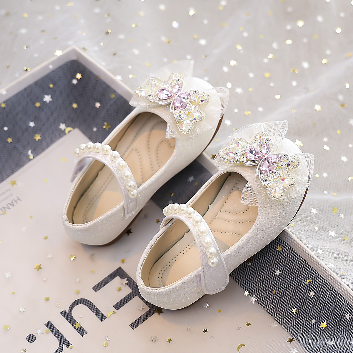 Детские туфли для девочек, кожаные туфли-принцессы, весна-осень 2025, детские кристальные балетки для девочек 3-6 лет, трансграничный стиль