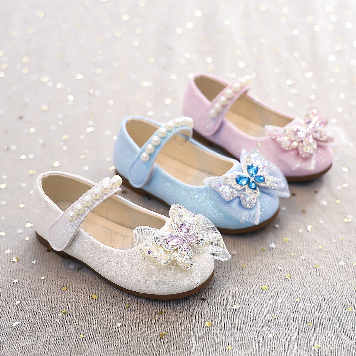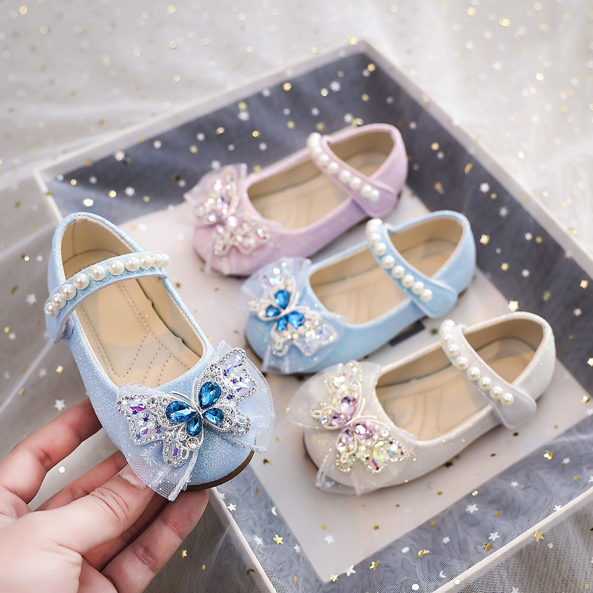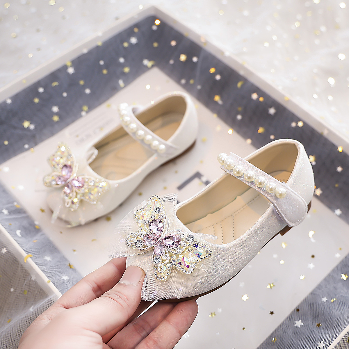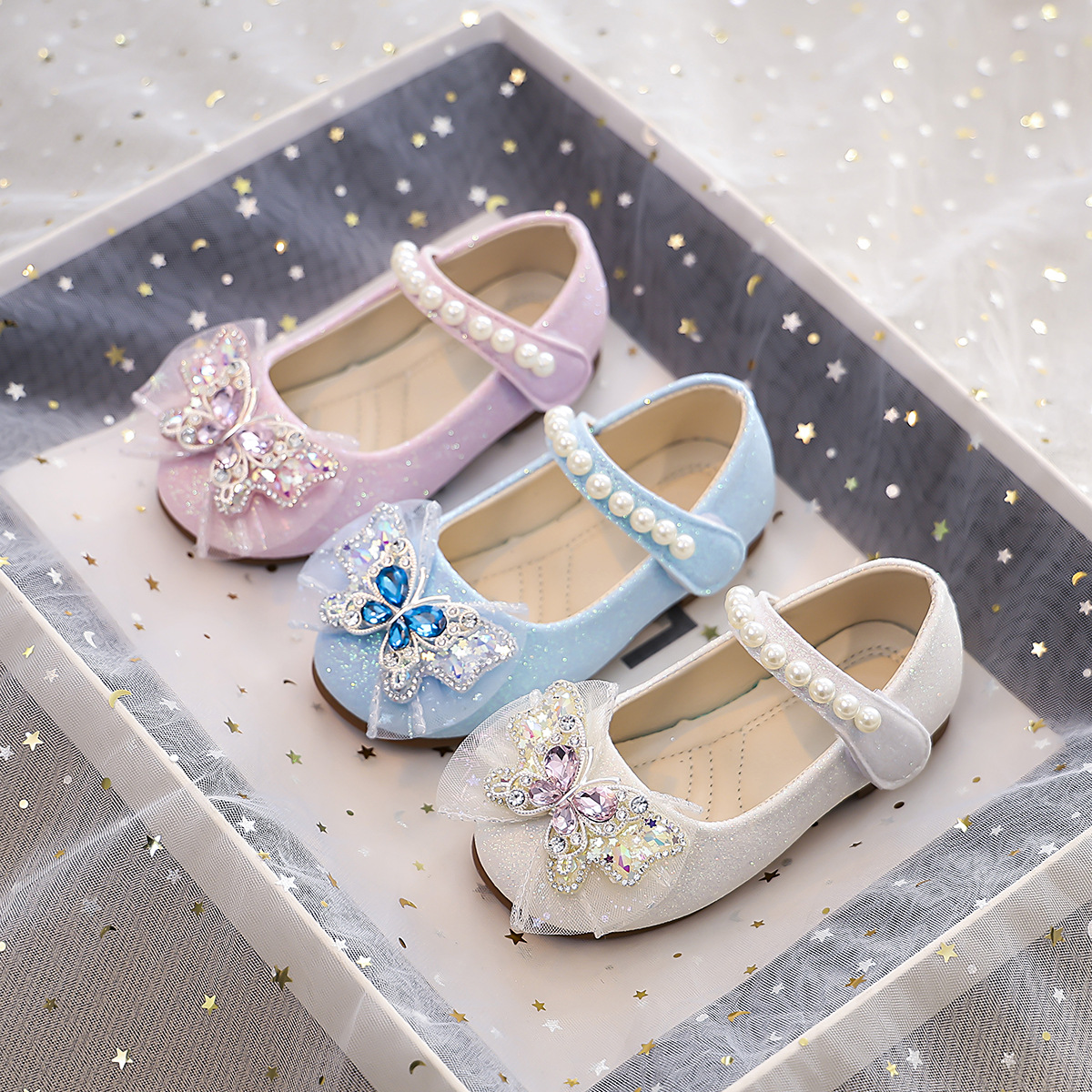 Детские туфли для девочек, кожаные туфли-принцессы, весна-осень 2025, детские кристальные балетки для девочек 3-6 лет, трансграничный стиль