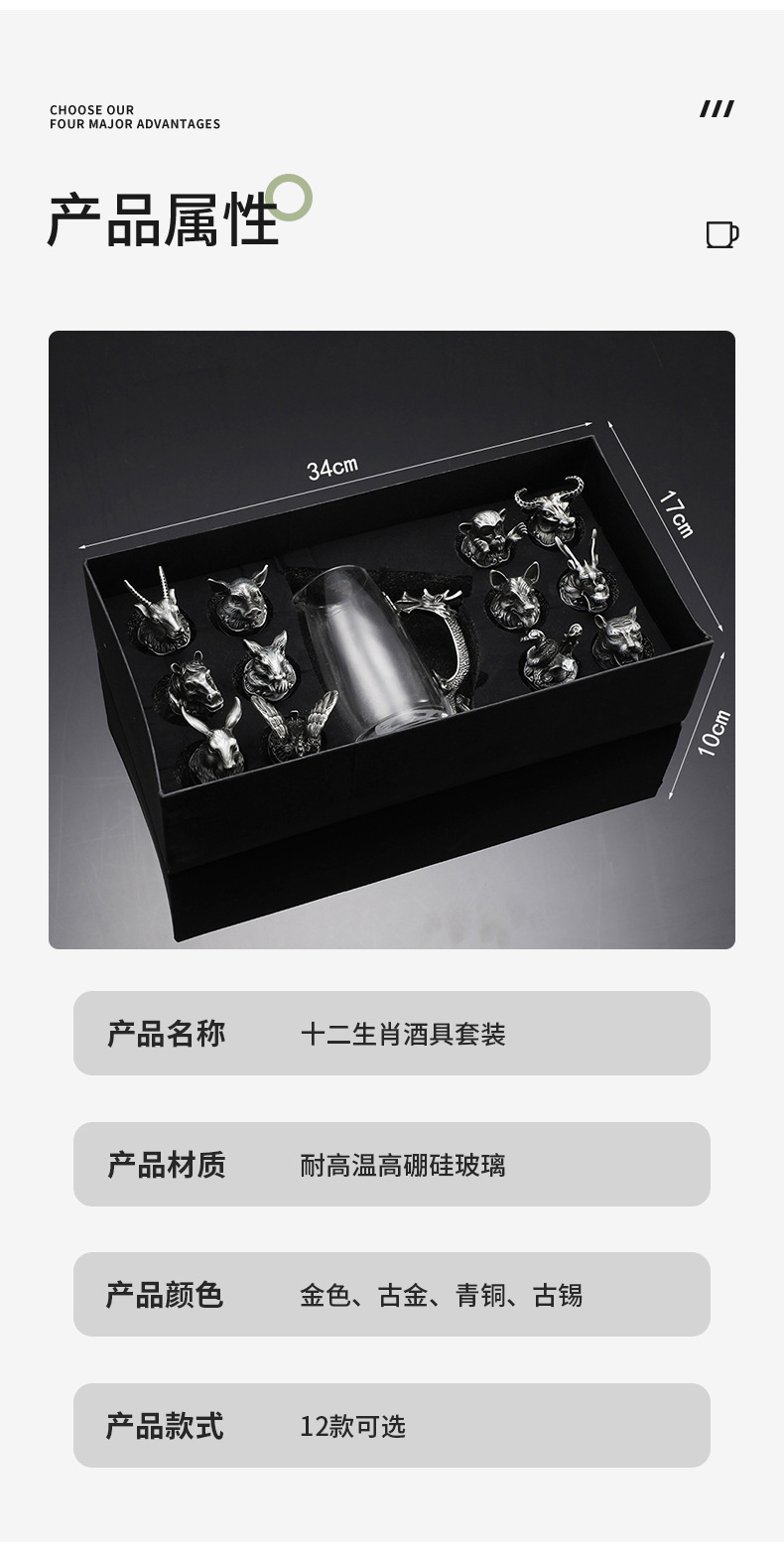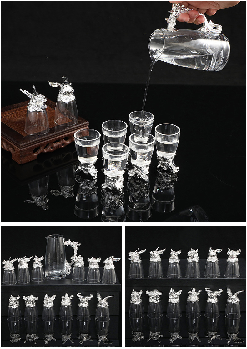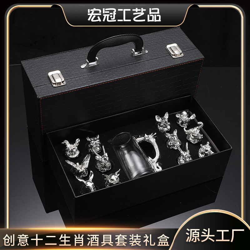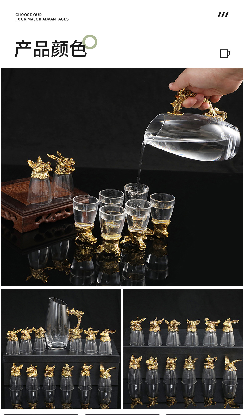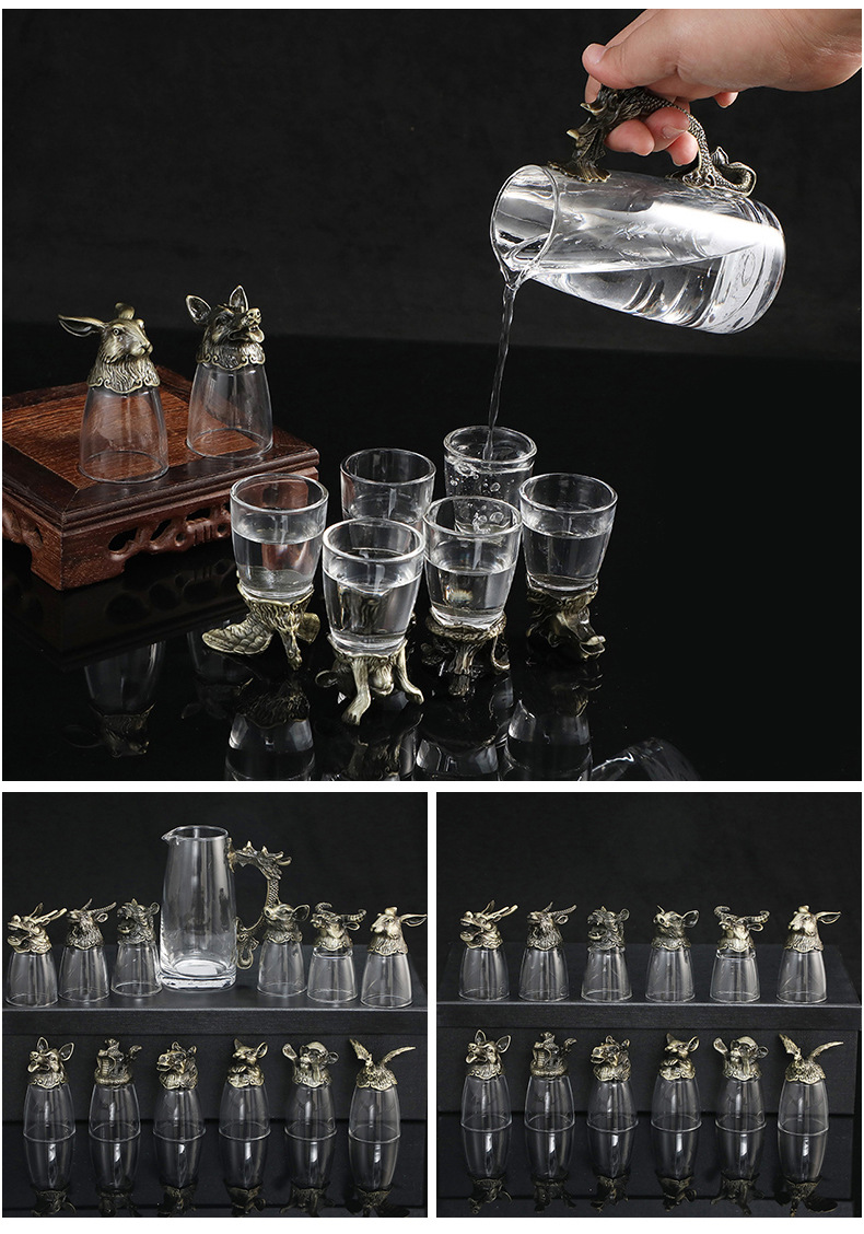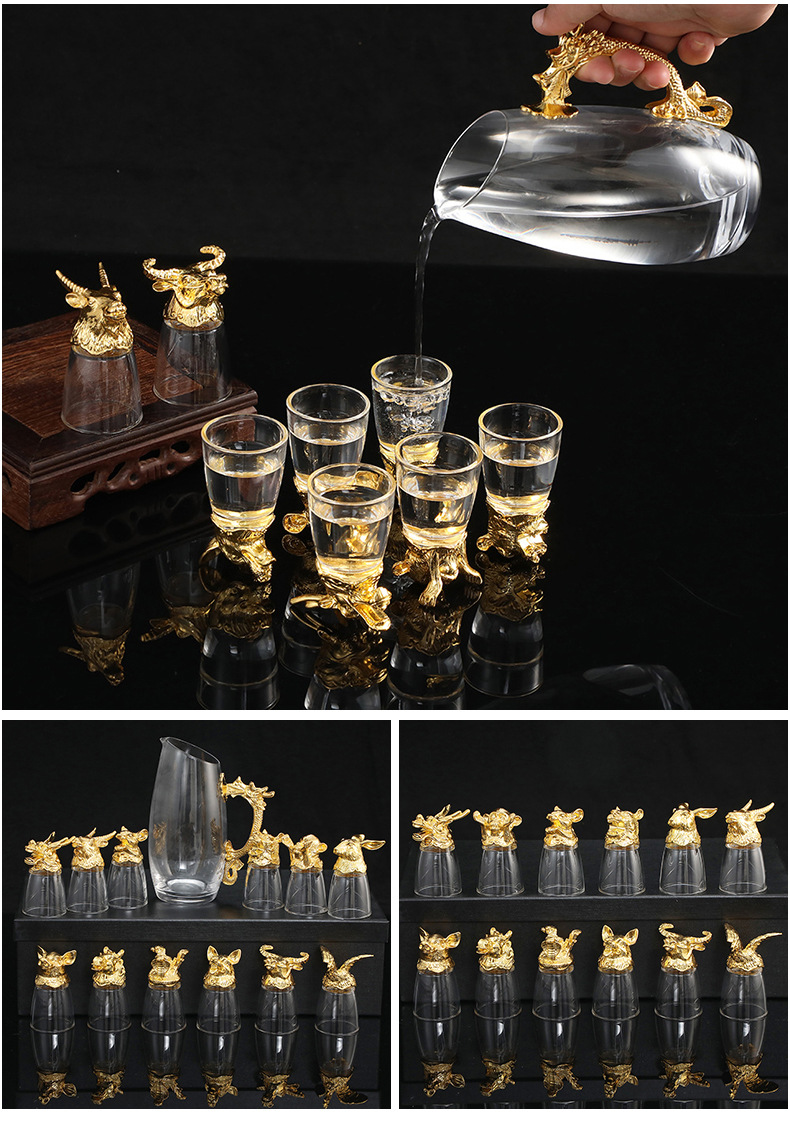 Ретро модный графин, бытовой дозатор ликера, креативный двенадцать зодиакальных стаканов, бокал для вина, бронзовый винный набор, подарочная коробка