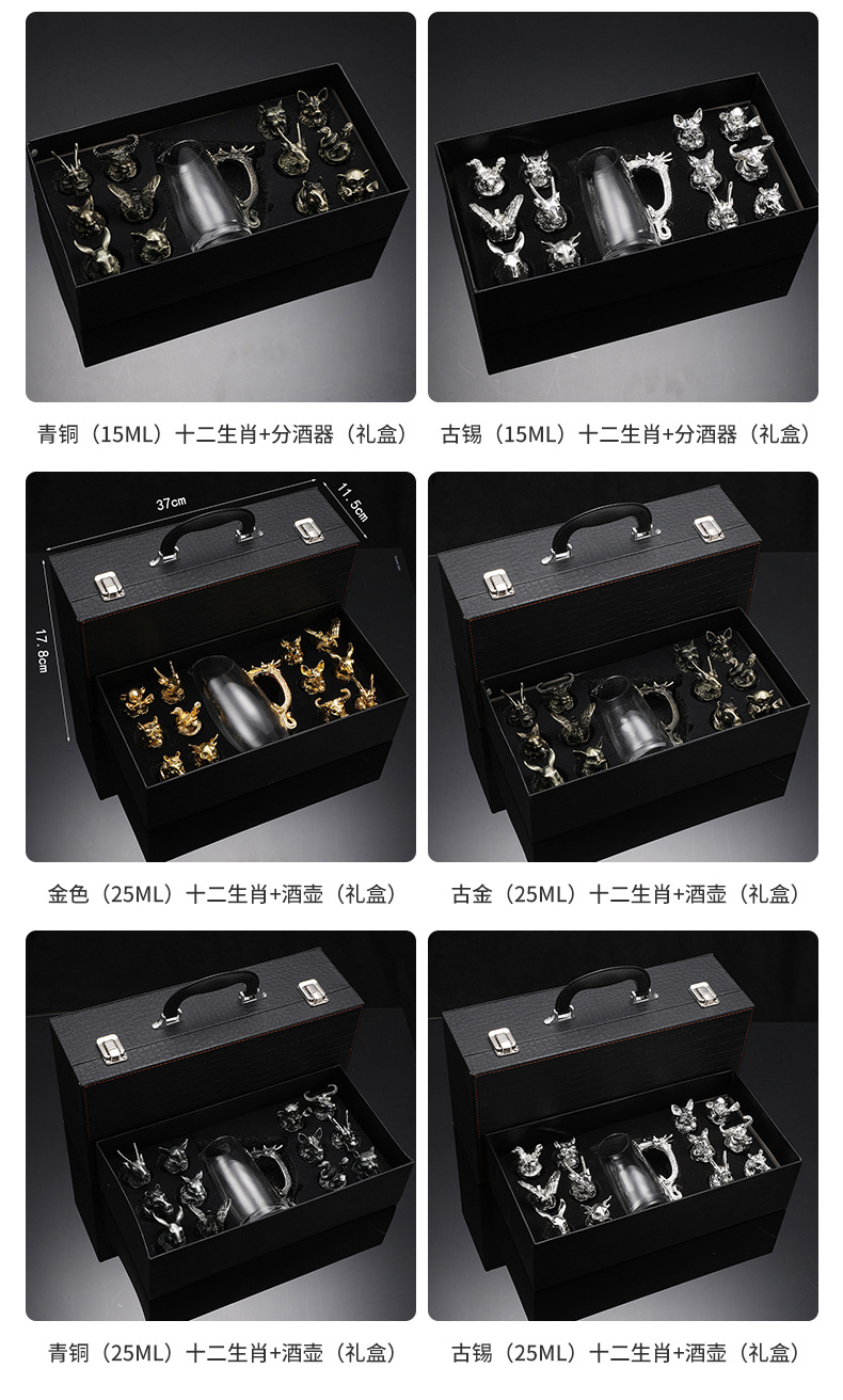 Золото (15 мл) Зодиак (подарочная коробка); Древнее золото (15 мл) Двенадцать знаков зодиака (подарочная коробка); Бронза (15 мл) Знак Зодиака (подарочная коробка); Древняя банка (15мл) двенадцать знаков зодиака (подарочная коробка); Золото (15 мл) Зодиак + Разделитель для вина (подарочная коробка); Древнее золото (15мл) двенадцать знаков зодиака + диспенсер для вина (подарочная коробка); Бронза (15 мл) Китайский Зодиак + Разделитель для вина (подарочная коробка); Старинная банка (15мл) двенадцать знаков зодиака + перегородка для вина (подарочная коробка); Золото (25 мл) Зодиак + Фляга для вина (подарочная коробка); Древнее золото (25мл) двенадцать знаков зодиака + фляга для вина (подарочная коробка); Бронза (25 мл) Зодиак + Винный горшок (подарочная коробка); Древняя банка (25мл) двенадцать знаков зодиака + фляга для вина (подарочная коробка)