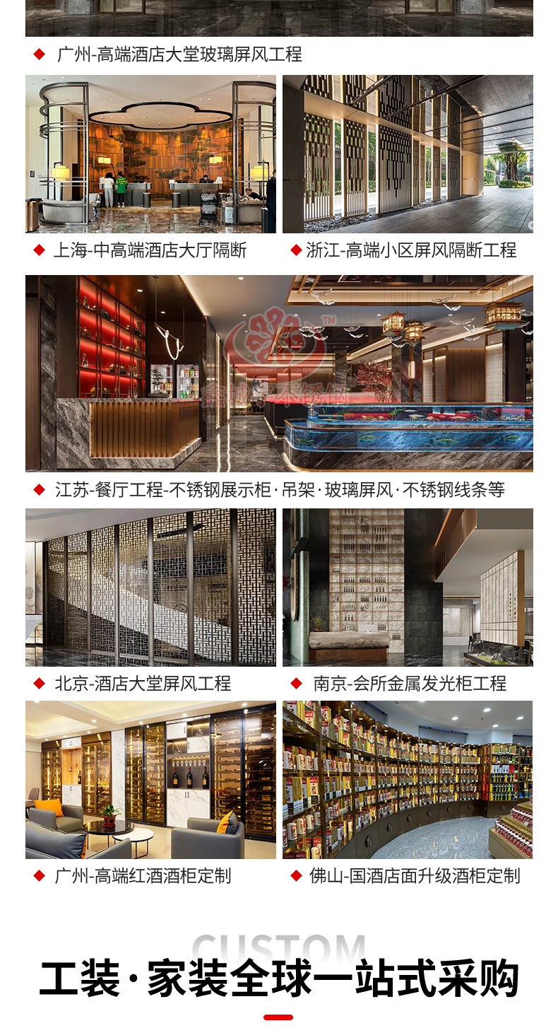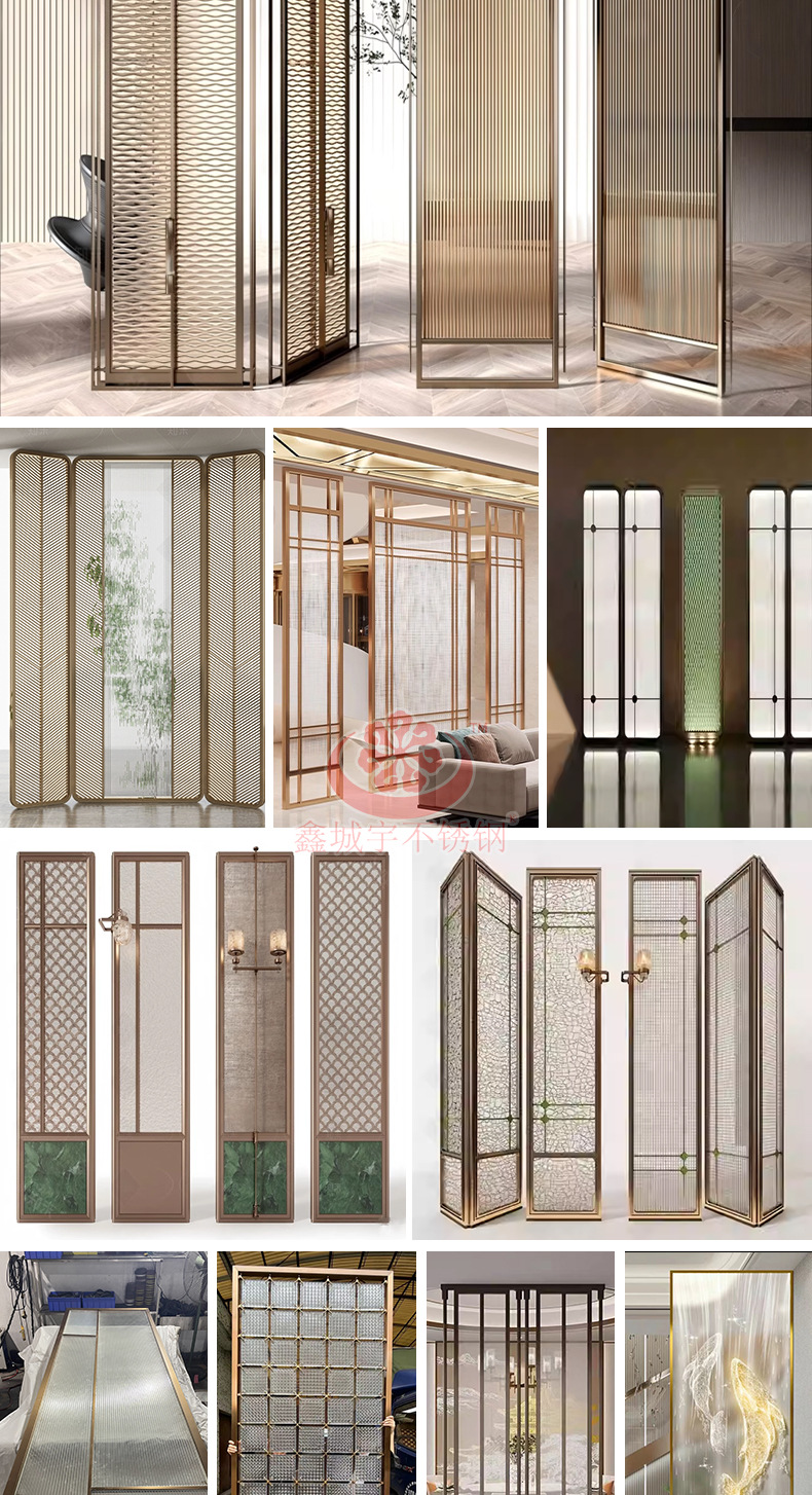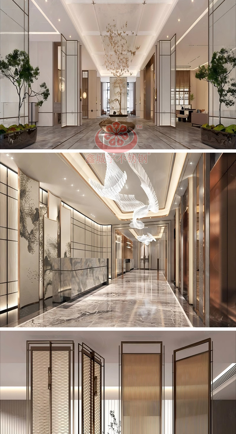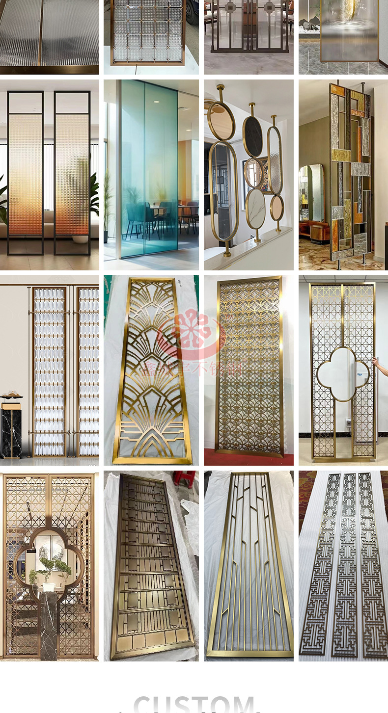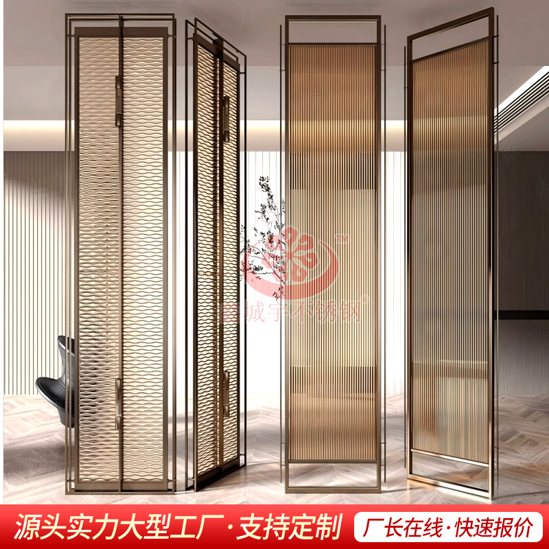Складная перегородка из нержавеющей стали для зонирования пространства в фойе отеля, фон для проектов, фабричный интерьер, стиль «легкий люкс»
